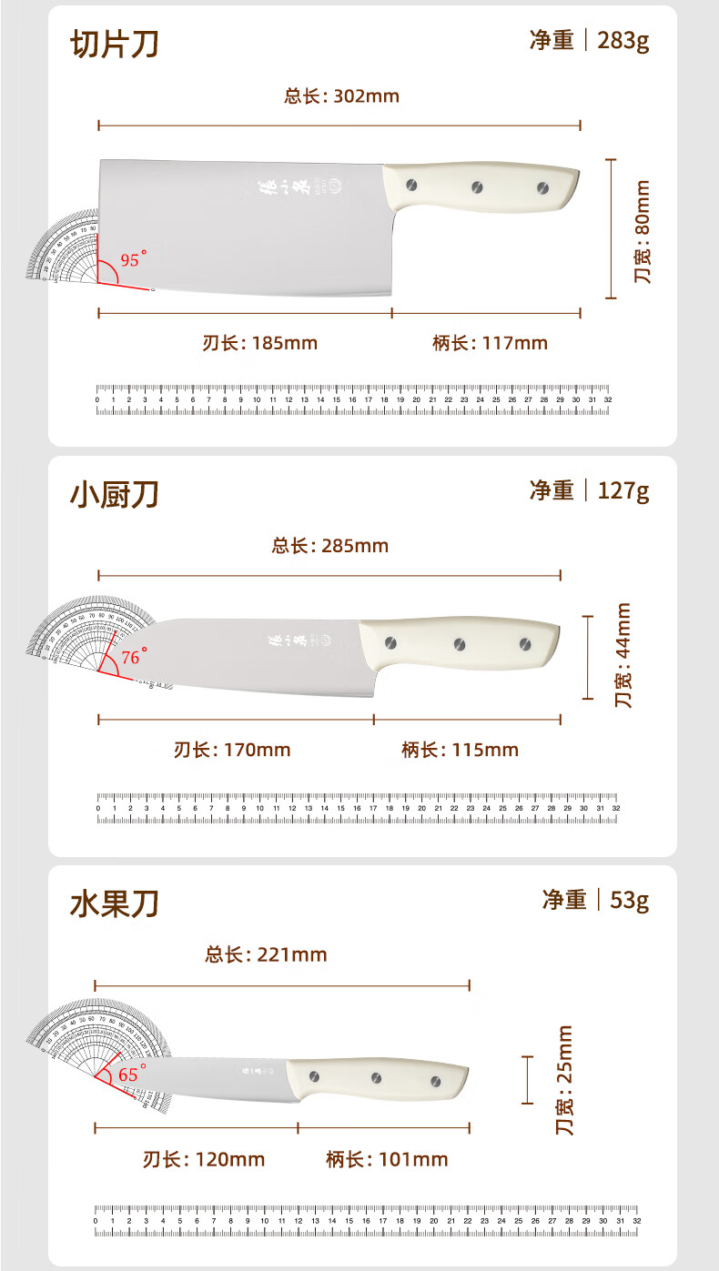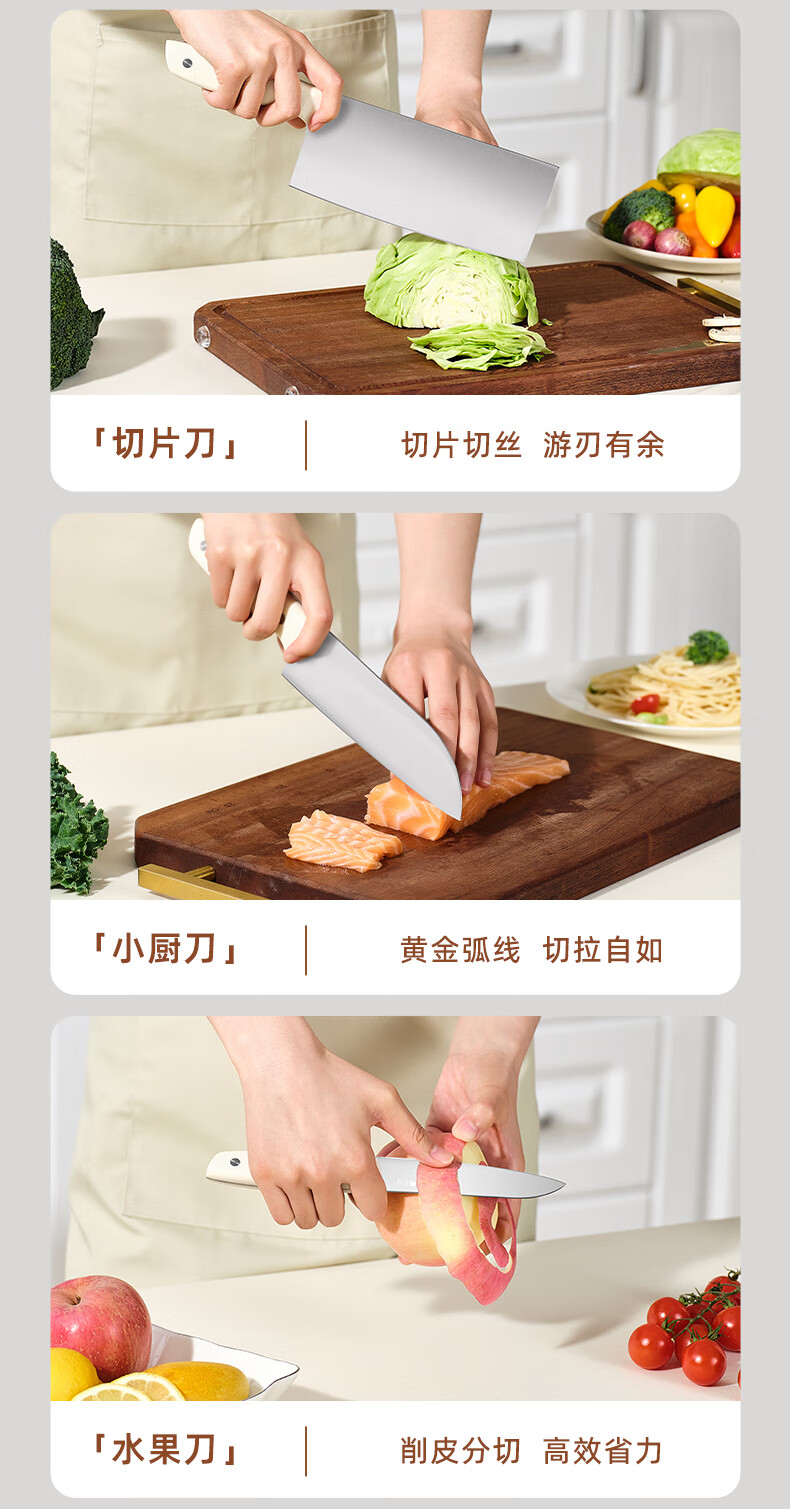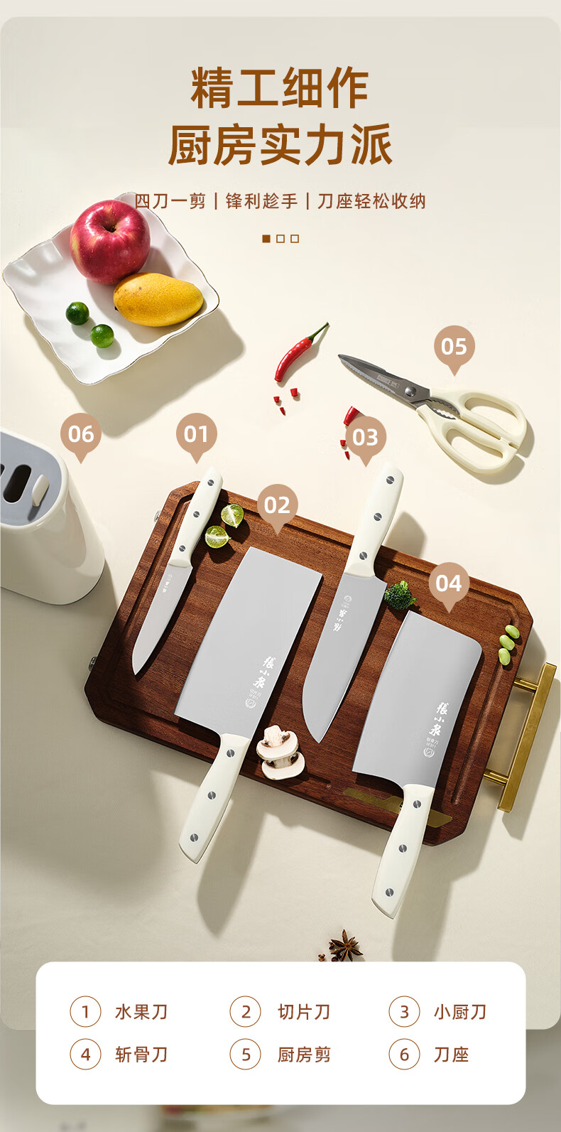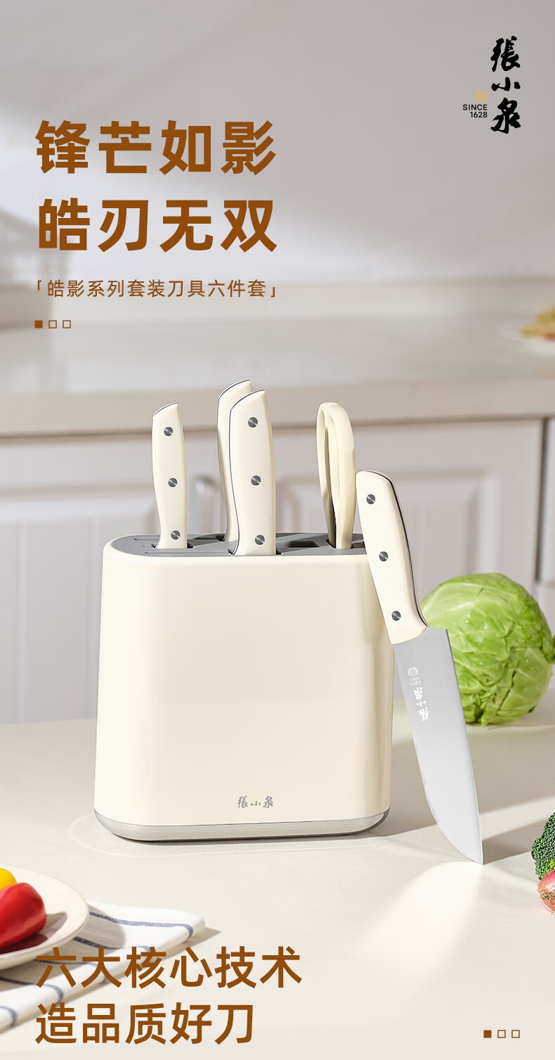 张小泉皓影系列六件套菜刀切片刀水果刀斩骨刀剪刀刀具全套 D300261