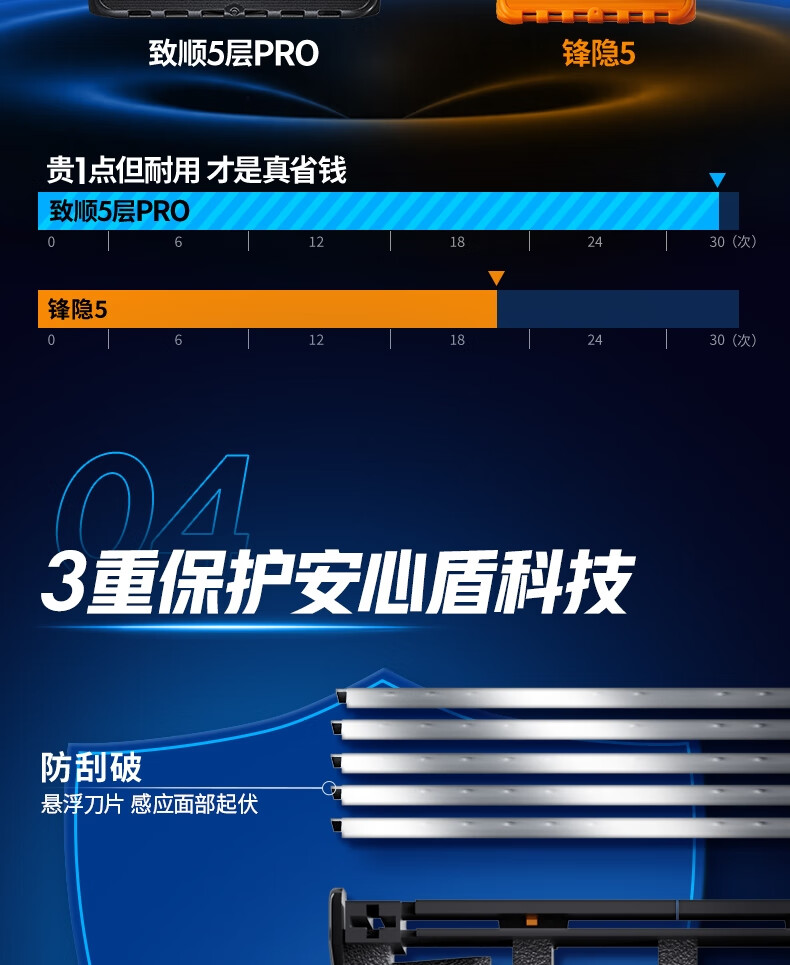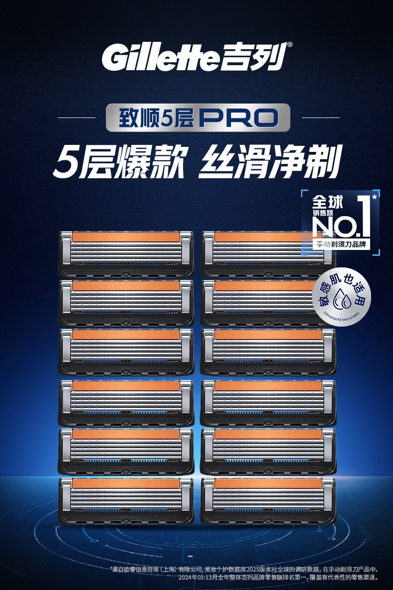 吉列锋隐5致顺 剃刮胡须刀手动 剃须刀片替换装12刀头 5层刀片 男士 京东自营旗舰 非吉利 年货