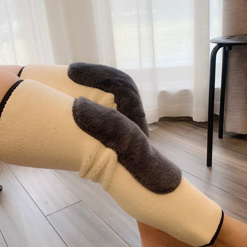 常为者羊羔绒秋冬季保暖护膝成人中老年男女防寒护膝盖关节加厚加绒长款 30厘米 XL适合90-130斤