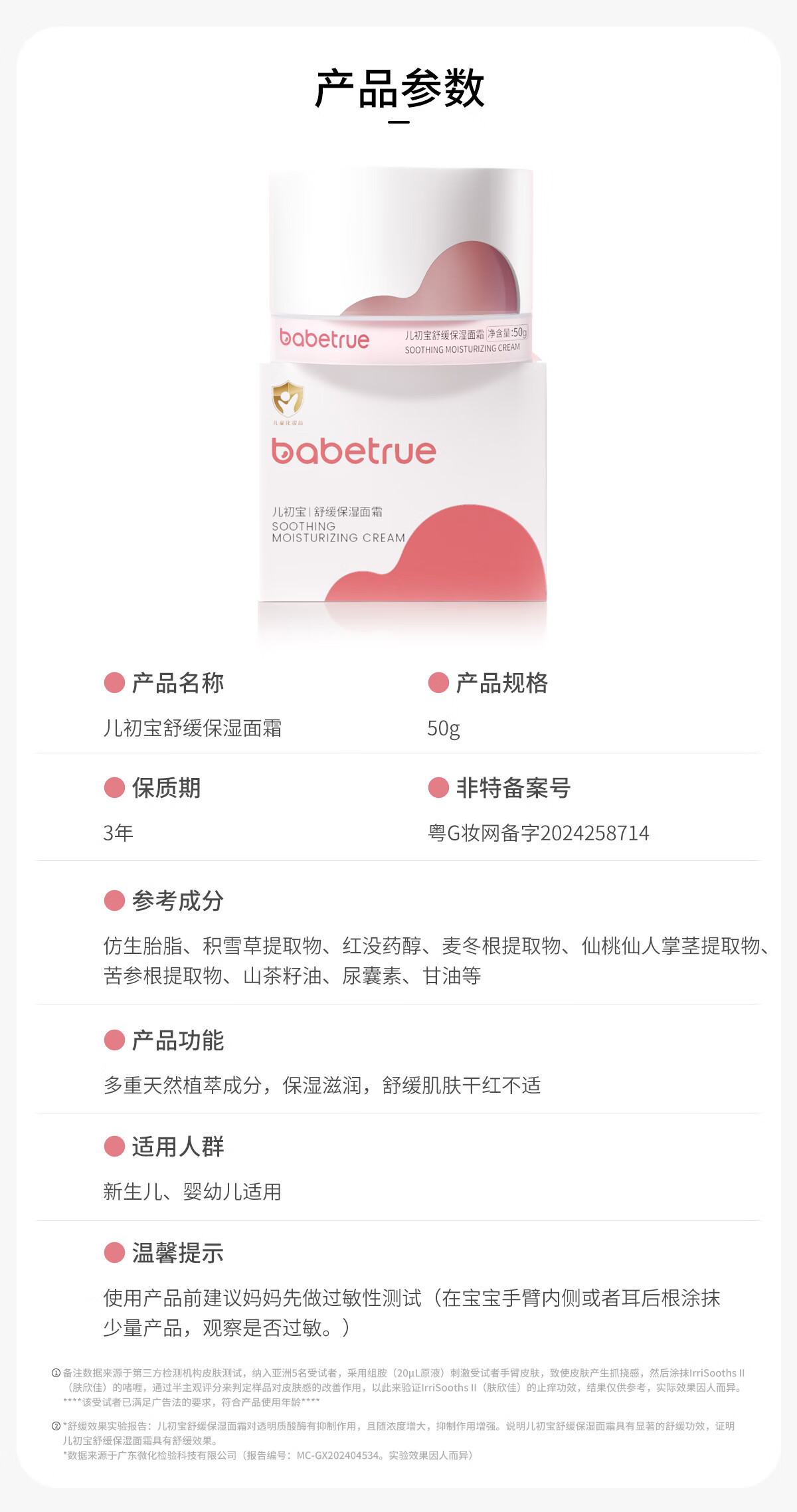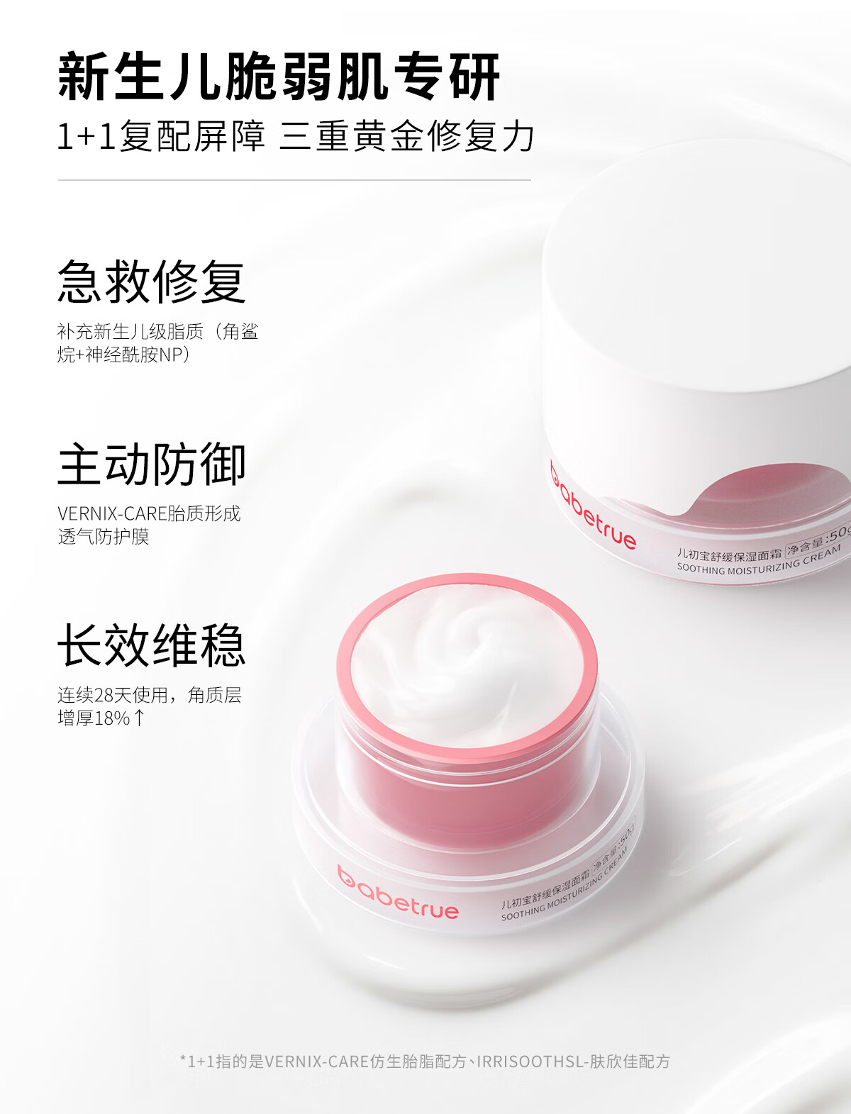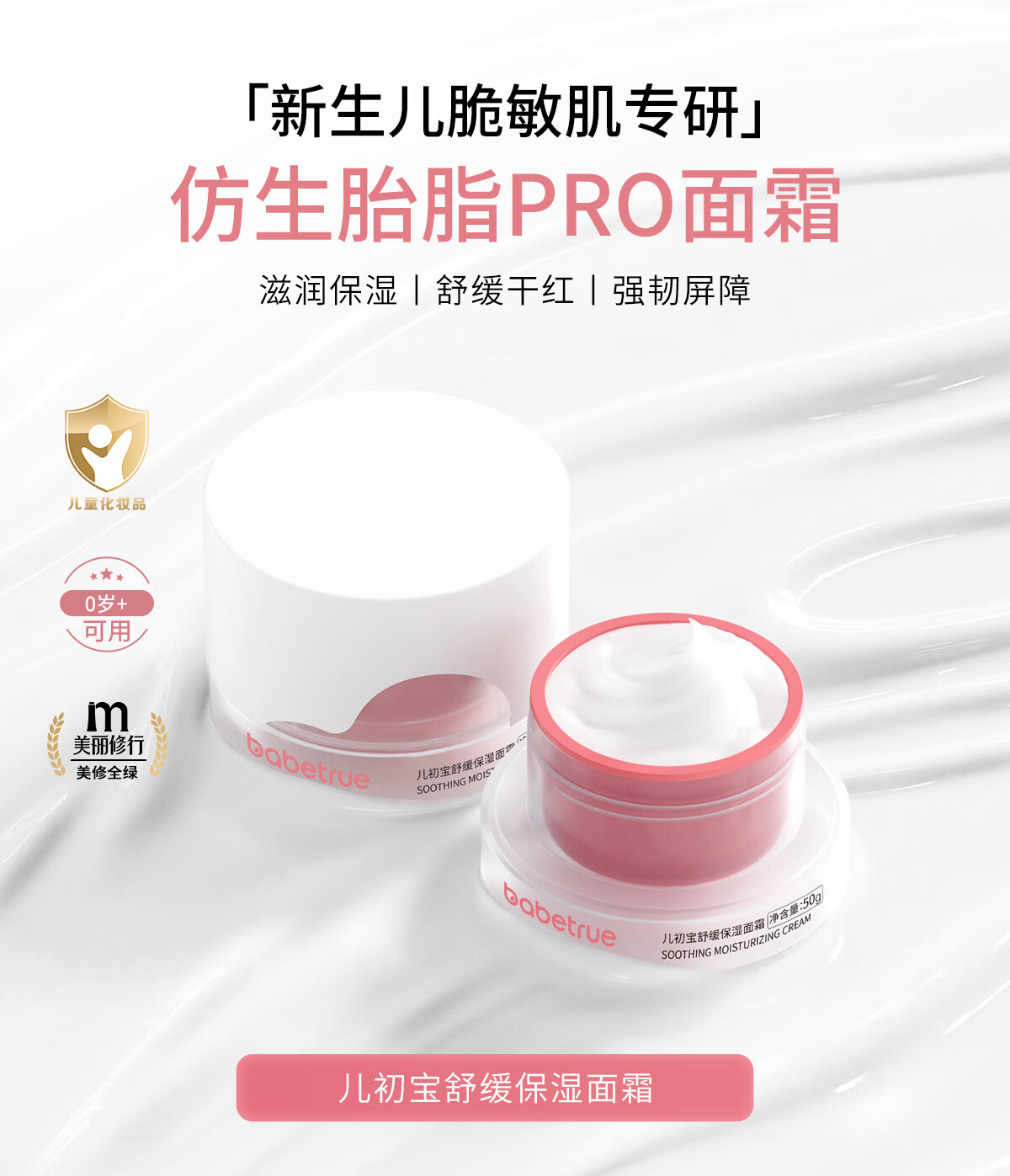 儿初宝(babetrue)婴儿舒缓保湿面霜新生宝宝滋润护肤儿童面霜婴幼儿专用润肤霜 50g