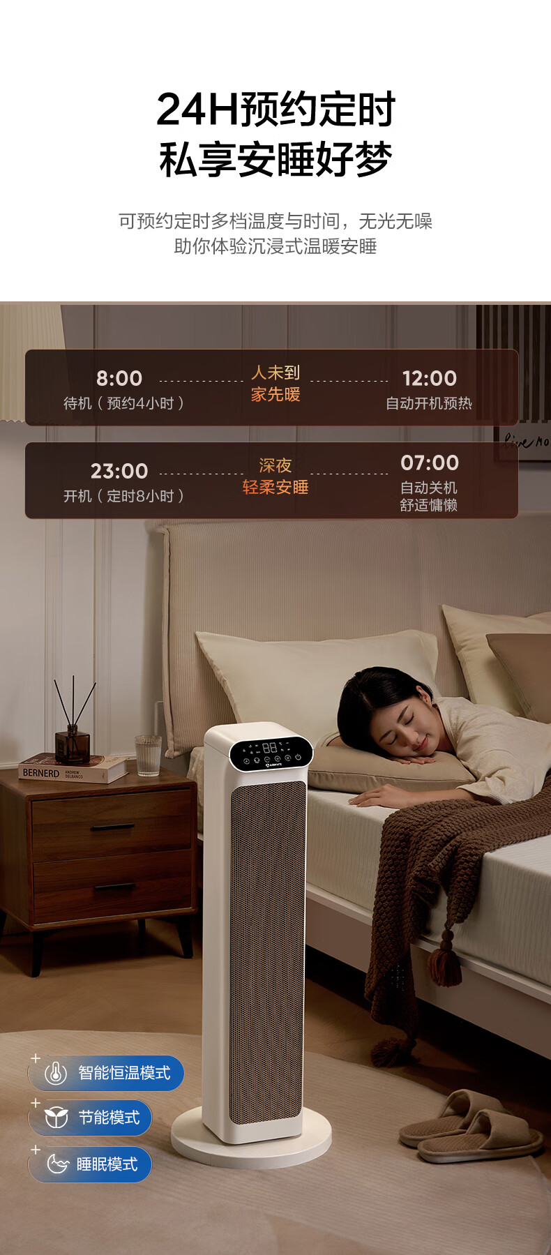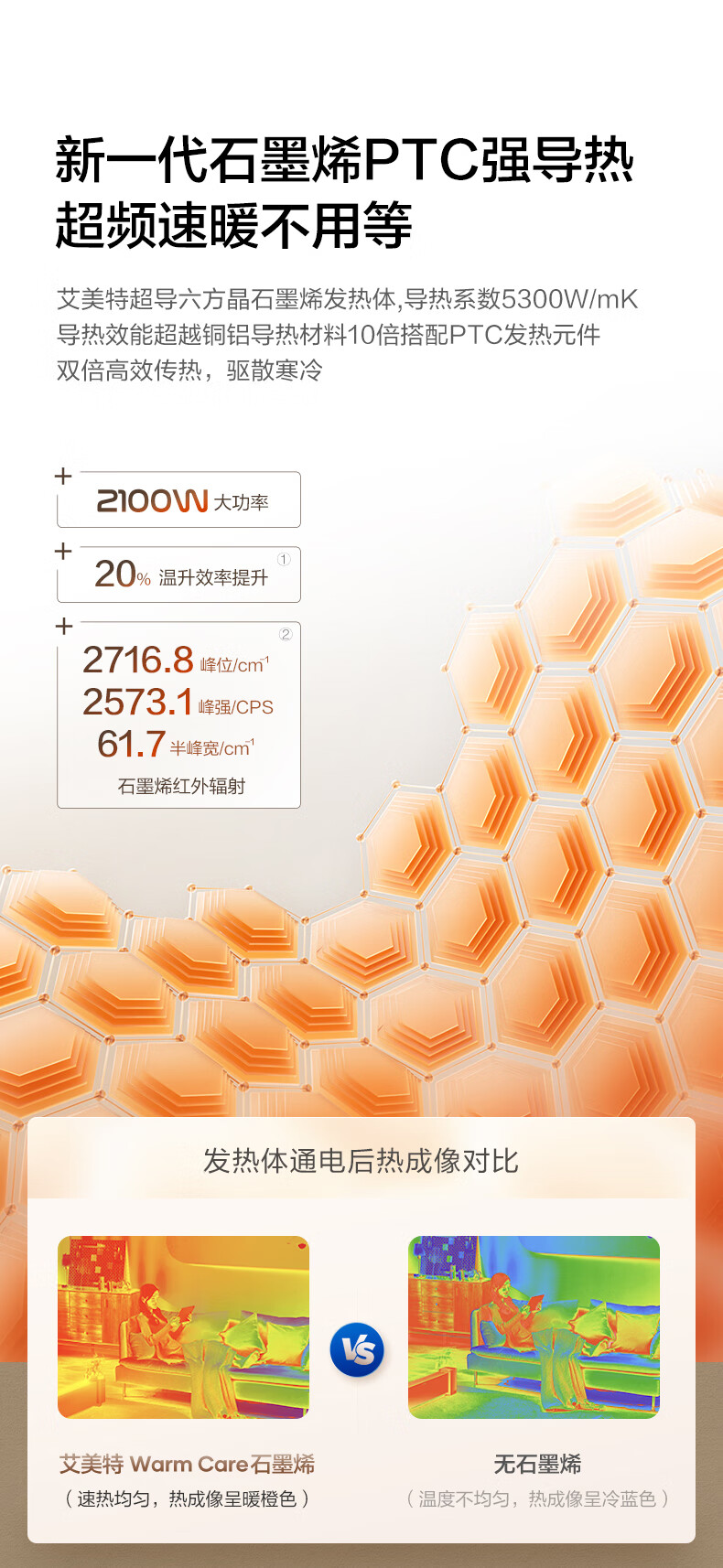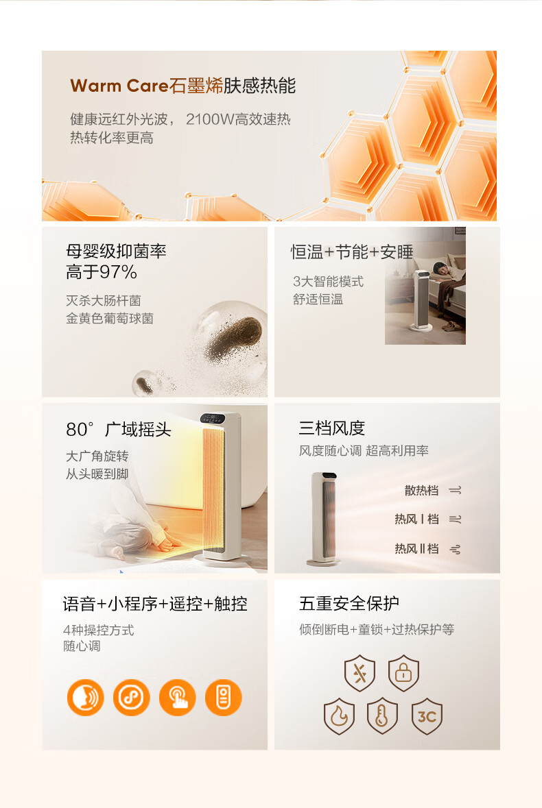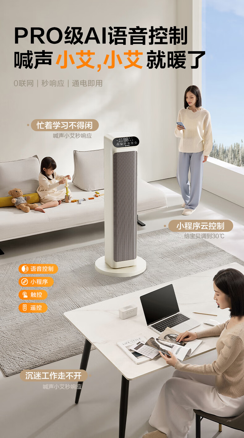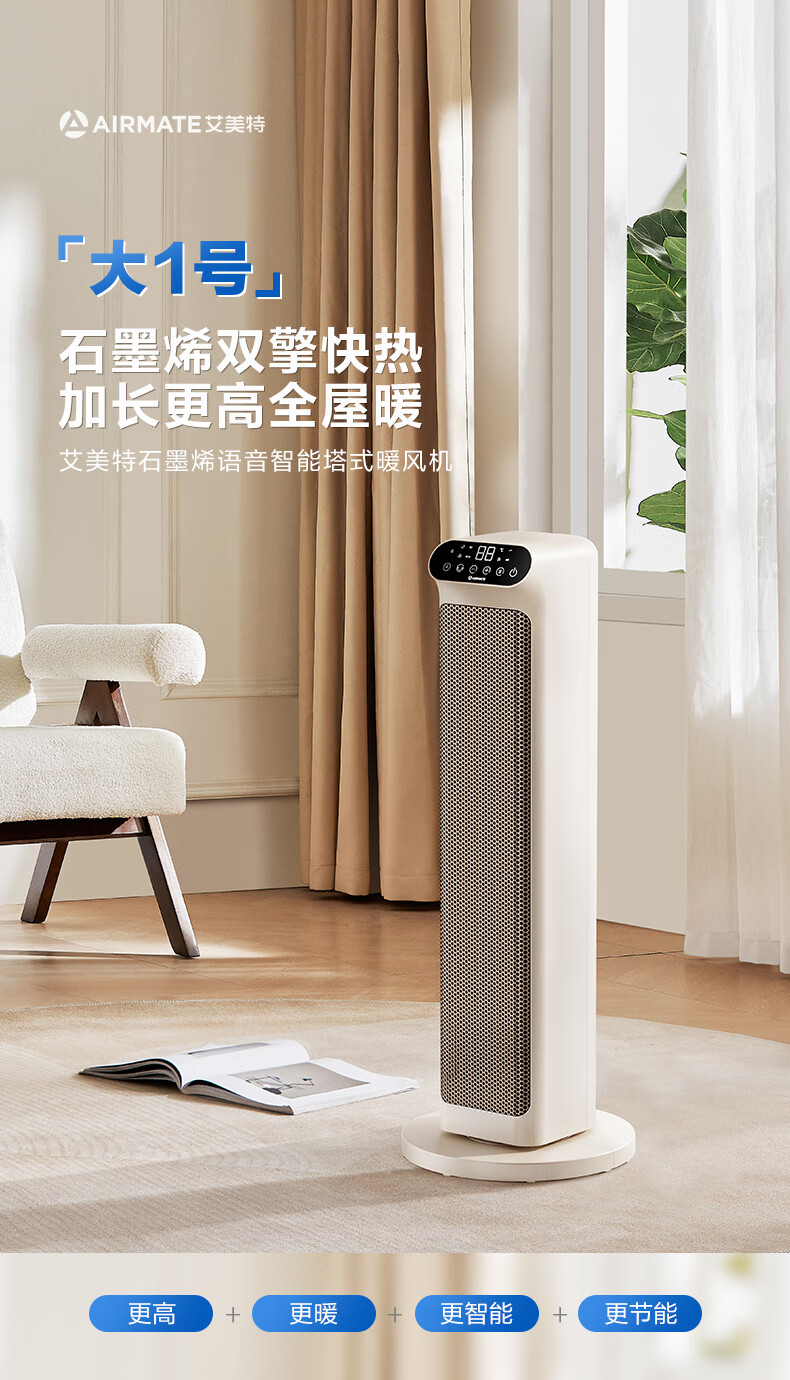 艾美特(AIRMATE)【石墨烯语音款】暖风机/电热取暖器/电暖器/电暖气片家用/加热器 直流轻音节能暖风机 HP21-SR73