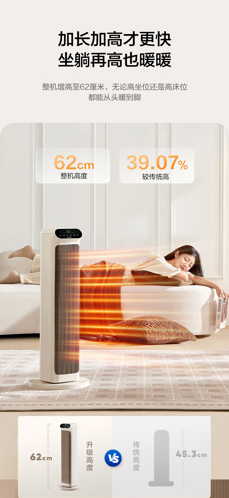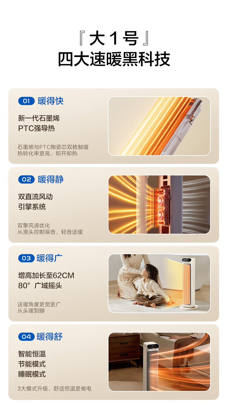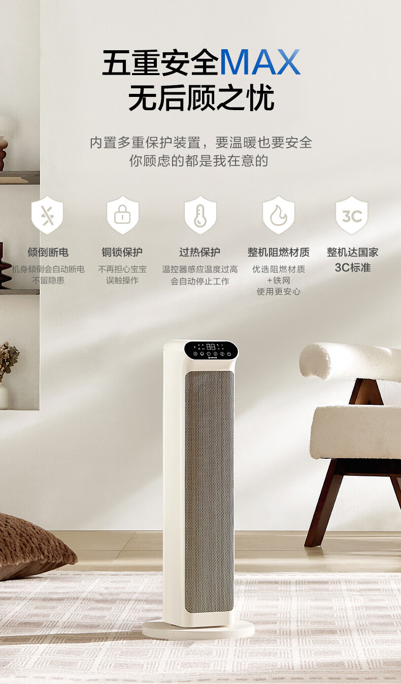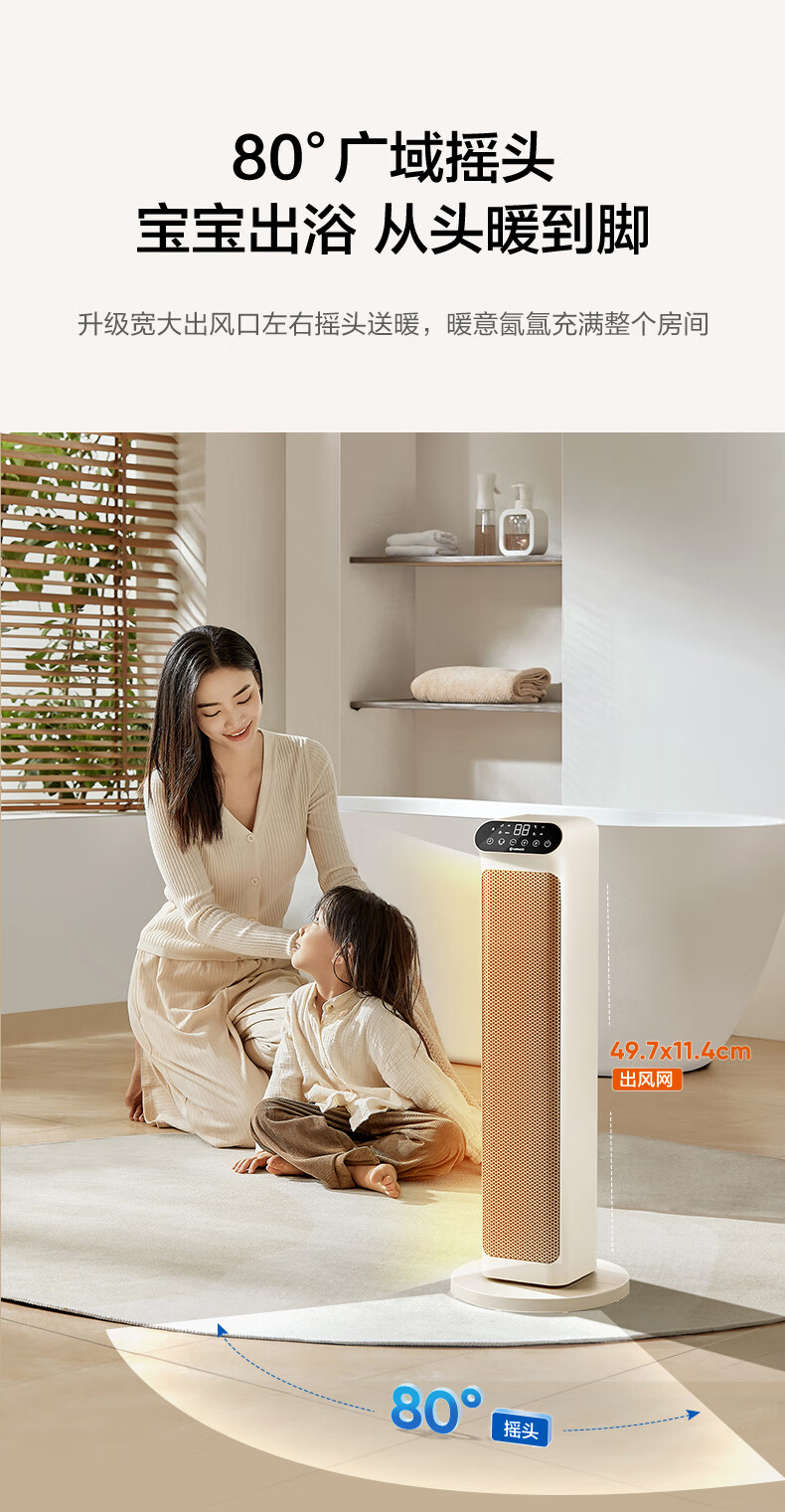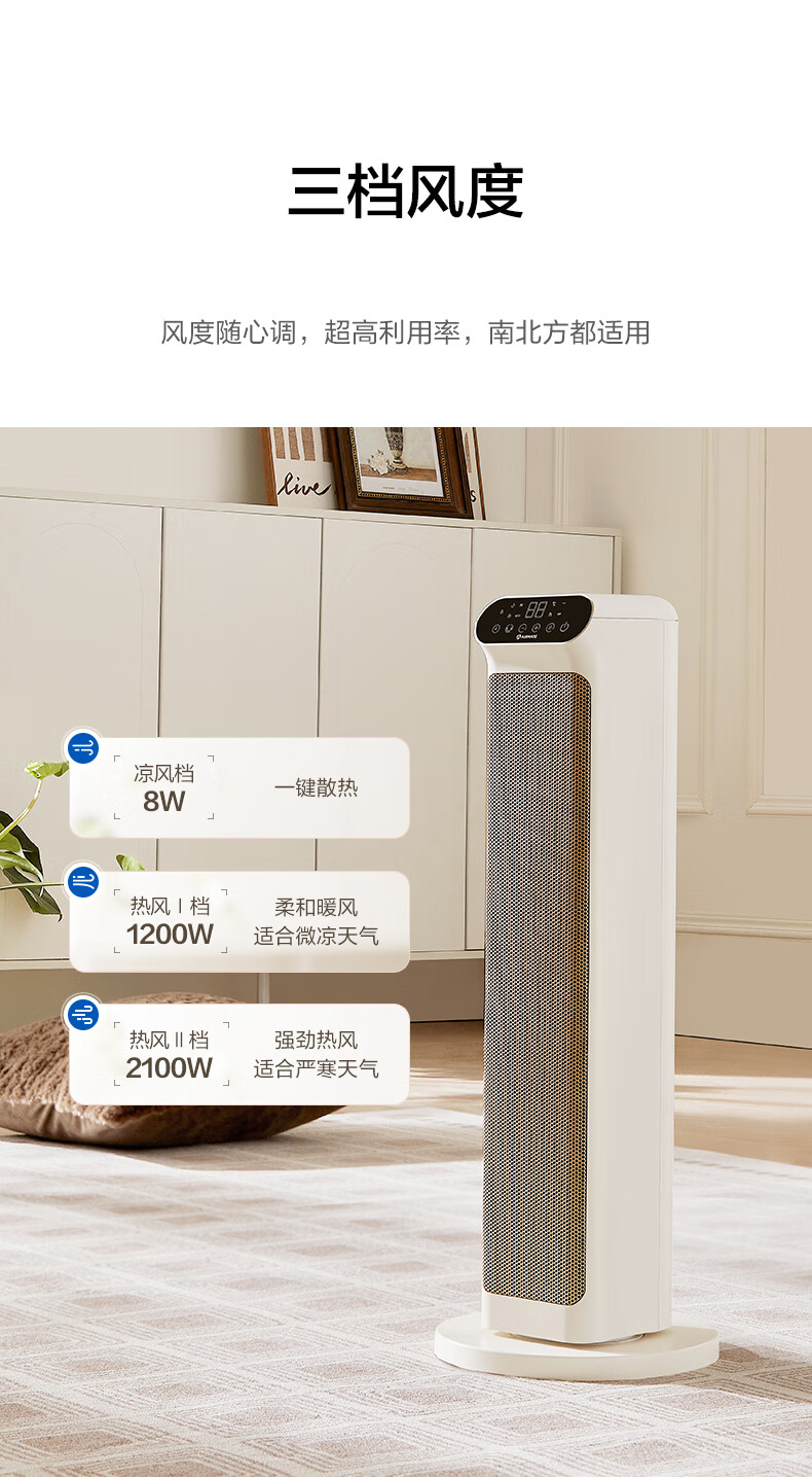艾美特(AIRMATE)【石墨烯语音款】暖风机/电热取暖器/电暖器/电暖气片家用/加热器 直流轻音节能暖风机 HP21-SR73