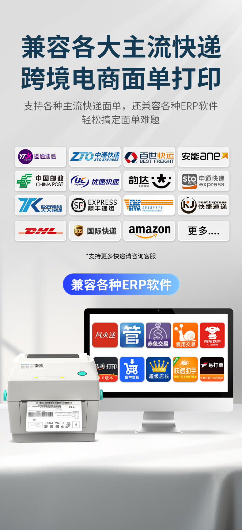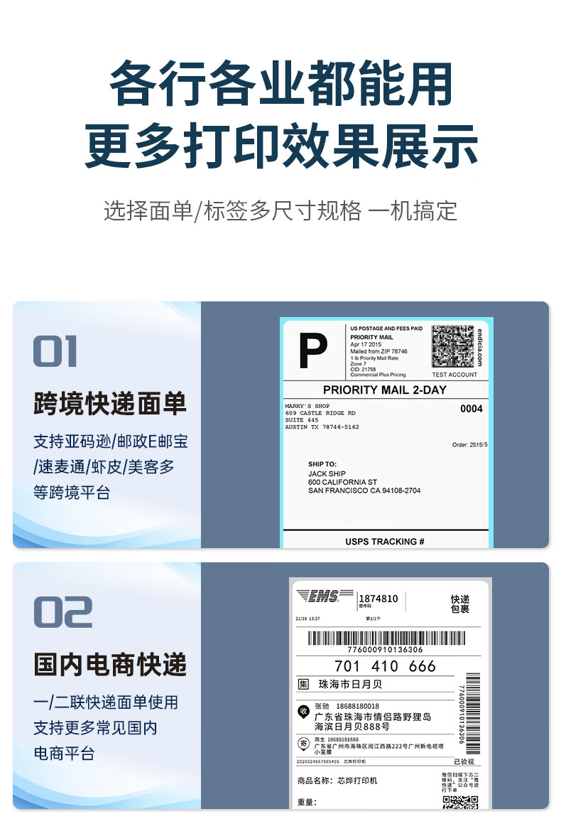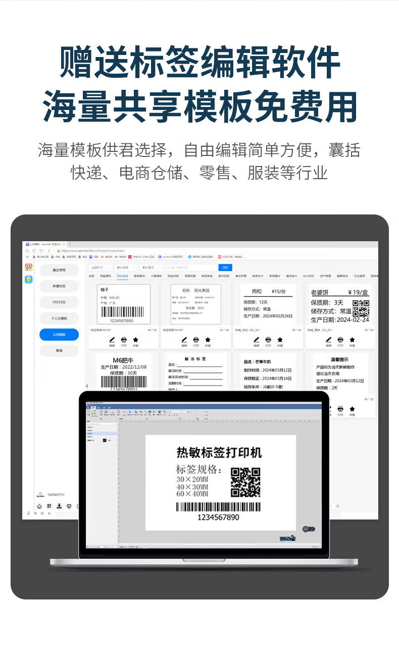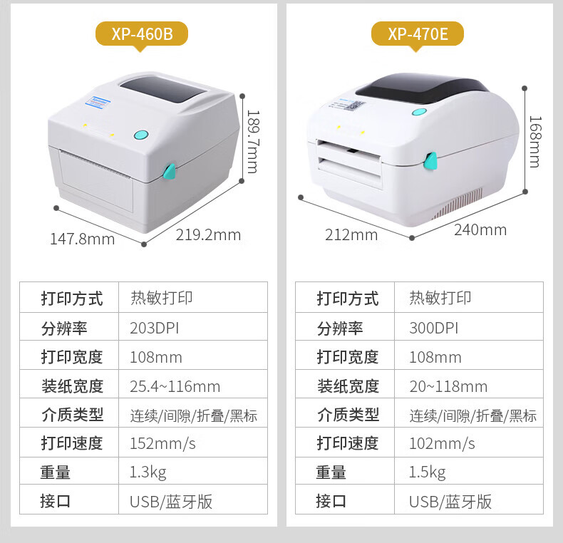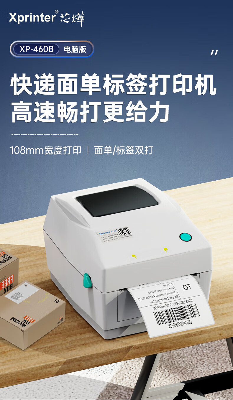 芯烨XP-460B热敏标签打印机108mm 快递单电子面单打印机电脑版 不干胶条码打印机 仓储物流服装二维码 460B【电脑版】一二联单宽度108mm可打跨境单
