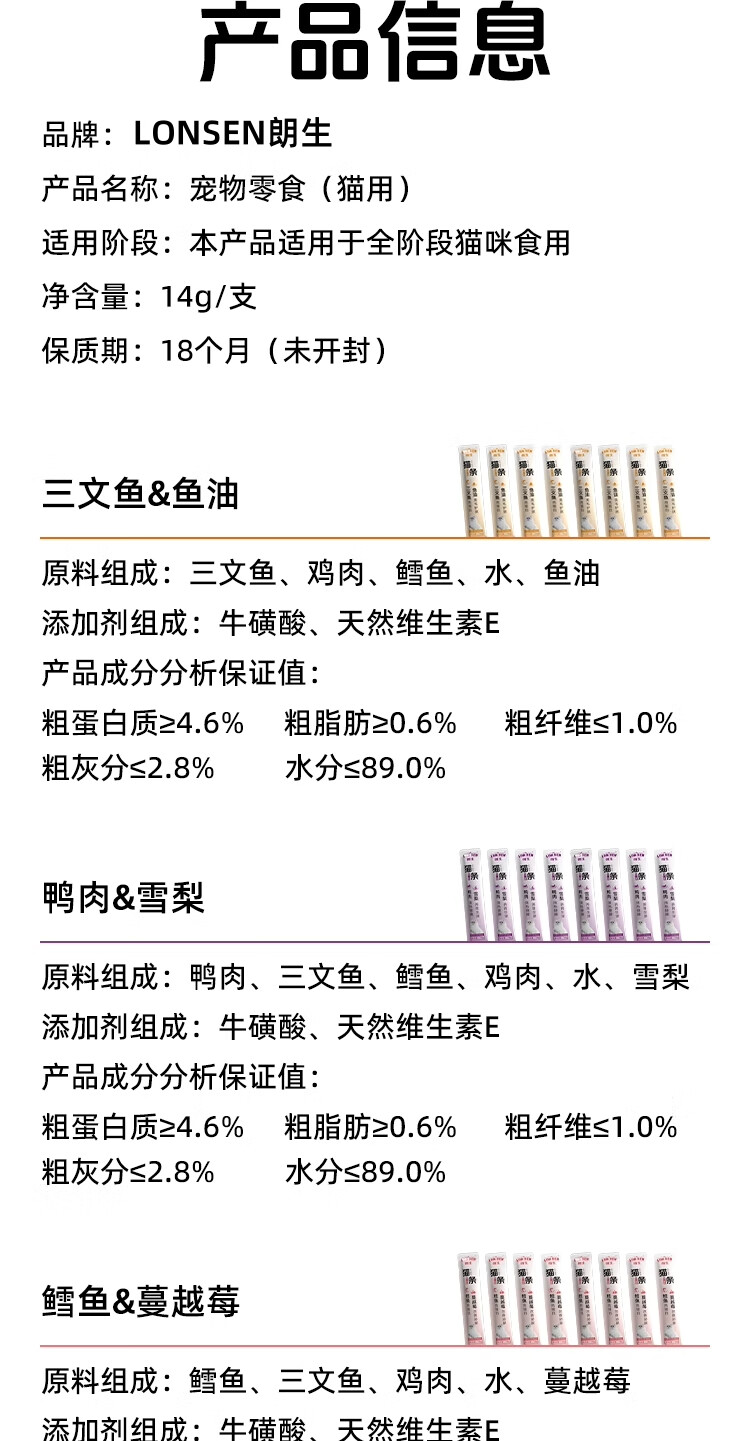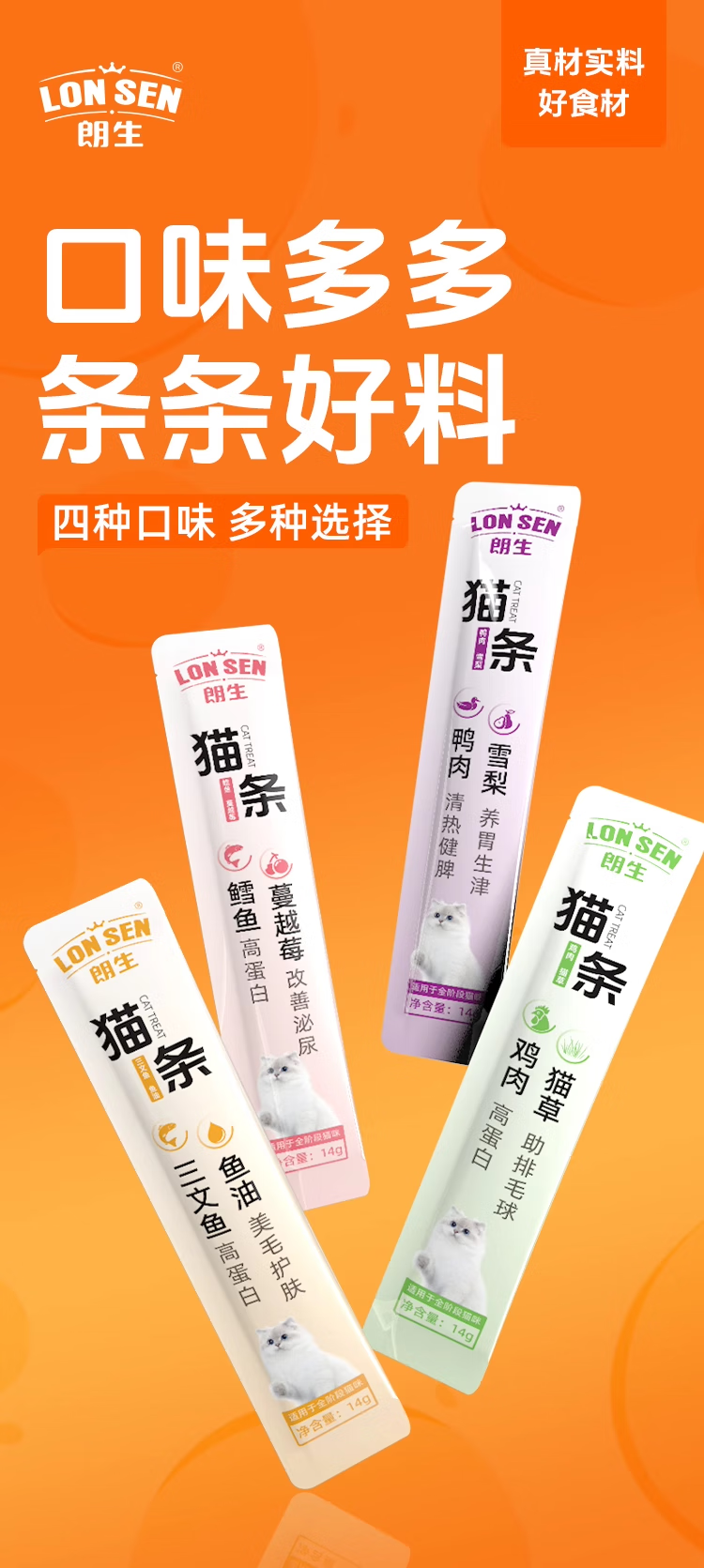 朗生猫零食全价主食猫条成猫幼猫鲜肉猫湿粮宠物食品混合口味 主食级营养/三文鱼鱼油 【多件优惠】20支(14g/支)