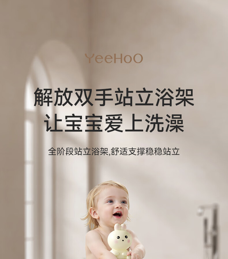 英氏(YEEHOO)宝宝洗澡站立架婴儿儿童小孩沐浴淋浴台可折叠便携洗头屁屁神器