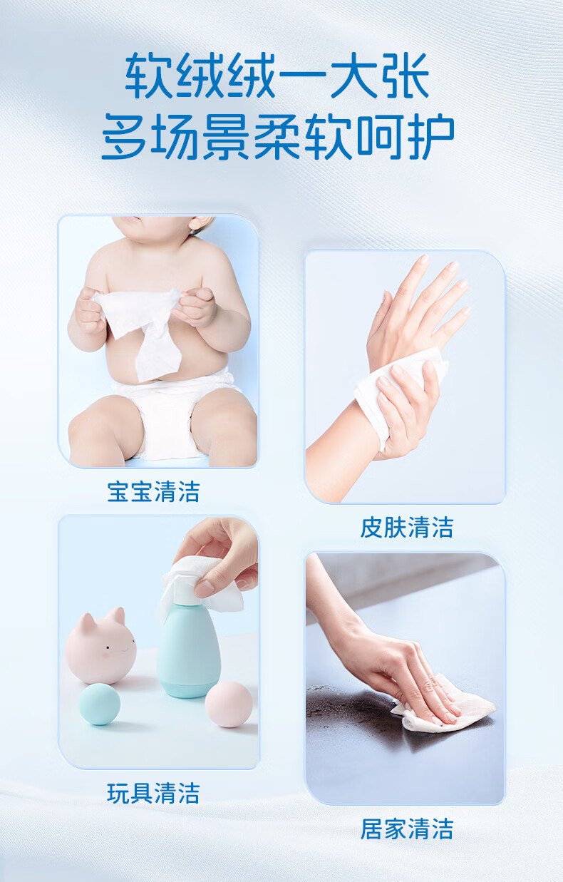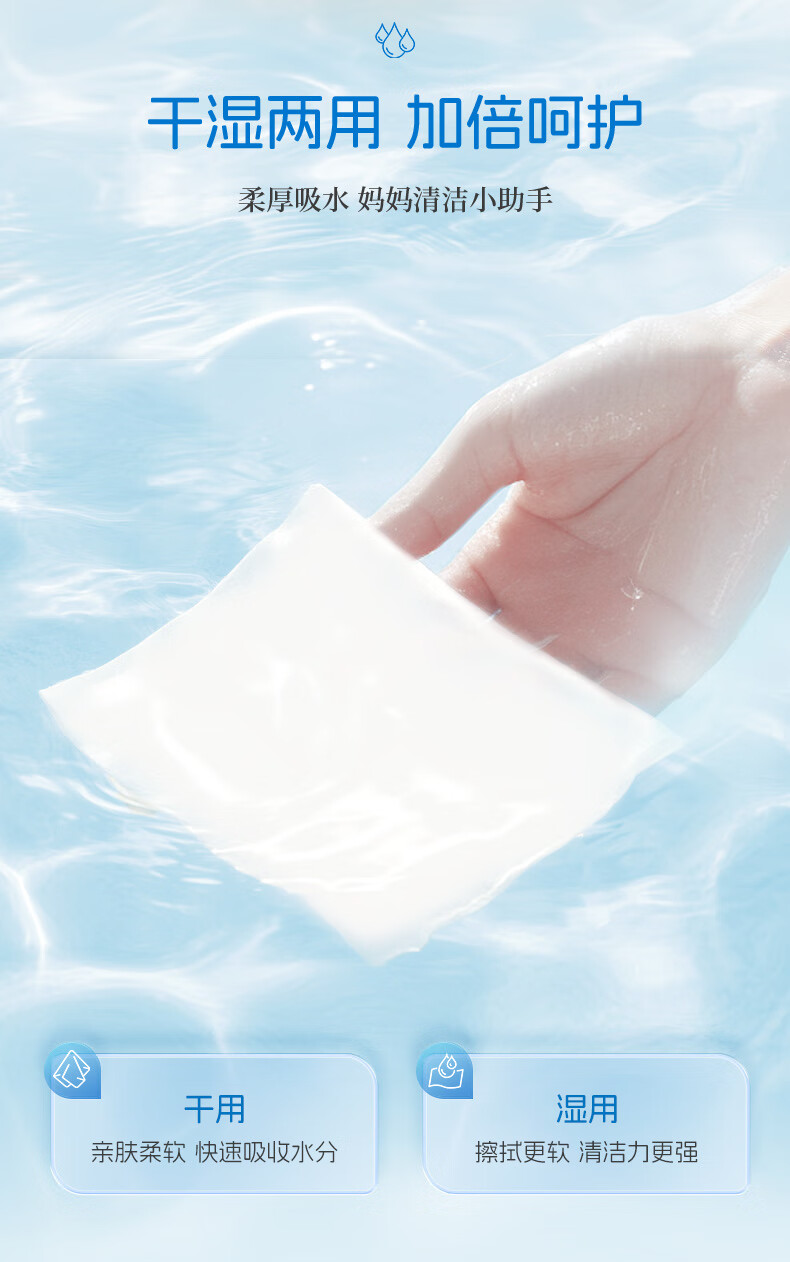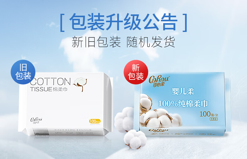 可心柔(COROU)婴儿棉柔巾100抽*6包100%全棉宝宝专用一次性洗脸巾干湿两用