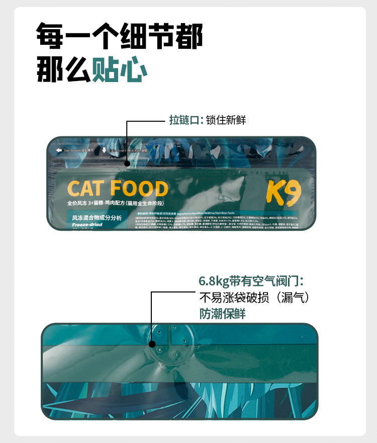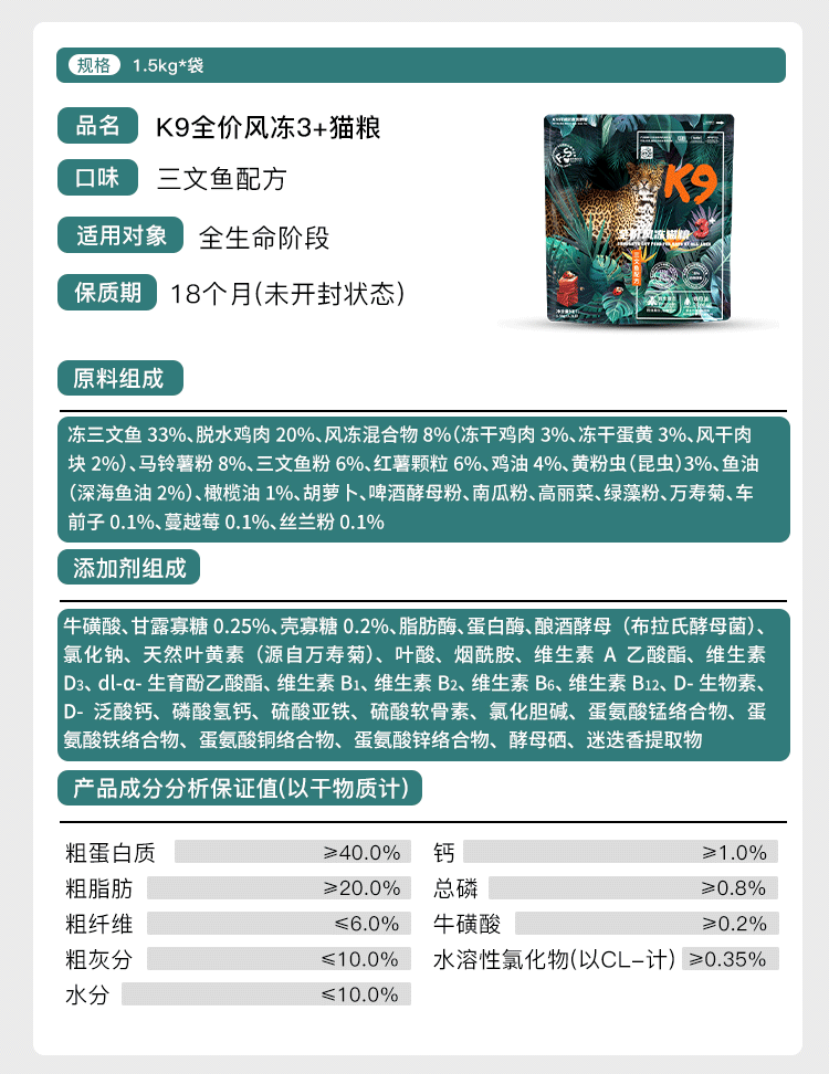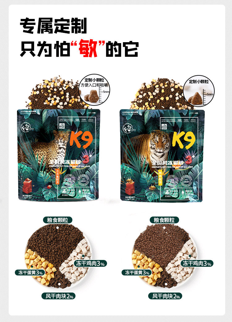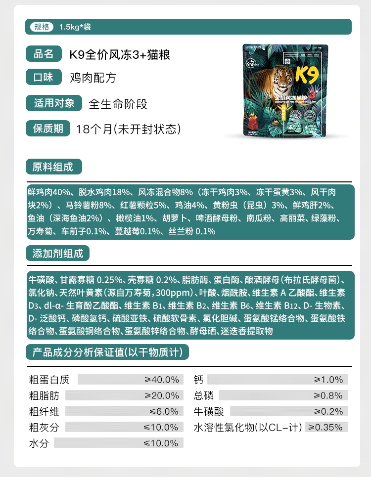 K9冻干三拼猫粮昆虫蛋白低敏无谷干粮成猫幼猫通用鸡肉味6.8kg