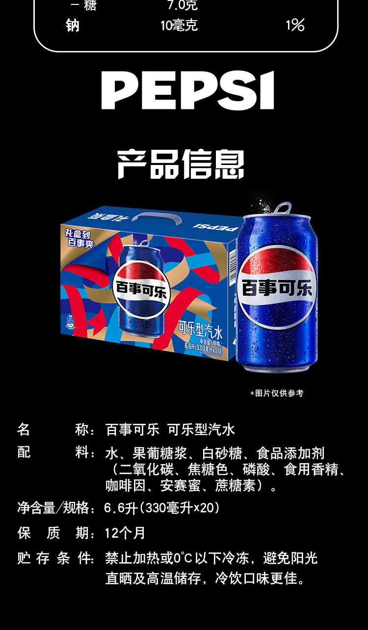 百事可乐Pepsi 碳酸饮料汽水330ml*20听胖罐 送礼礼盒 春节年货 企业团购