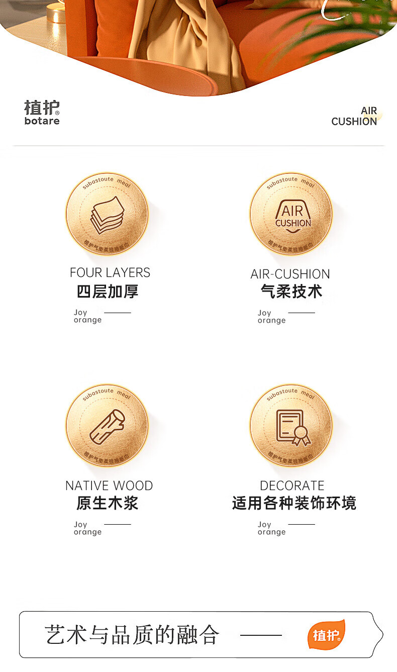 植护悦色橙面巾纸悬挂式4层320抽*8提餐巾纸厕纸擦手大尺寸整箱卫生纸