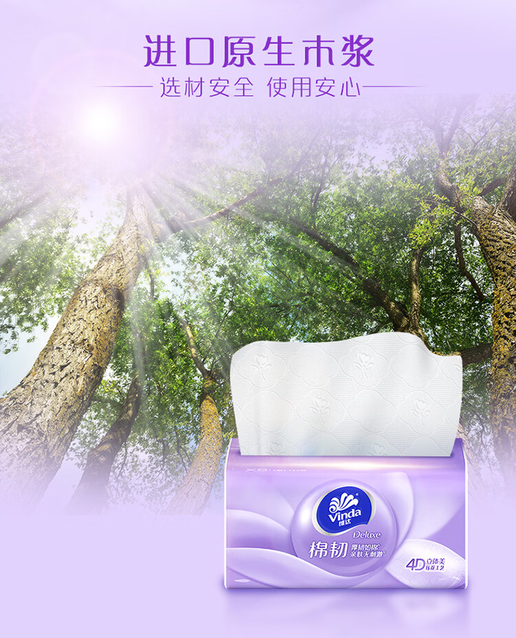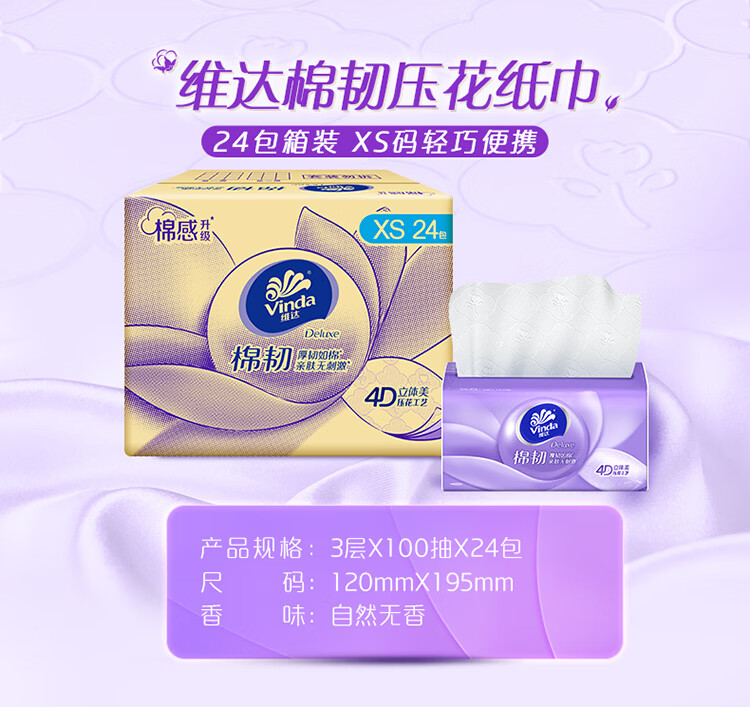 维达棉韧抽纸 囤货家用亲肤不刺激母婴可用 抽纸巾餐巾纸 3层 100抽*72包 【3箱】