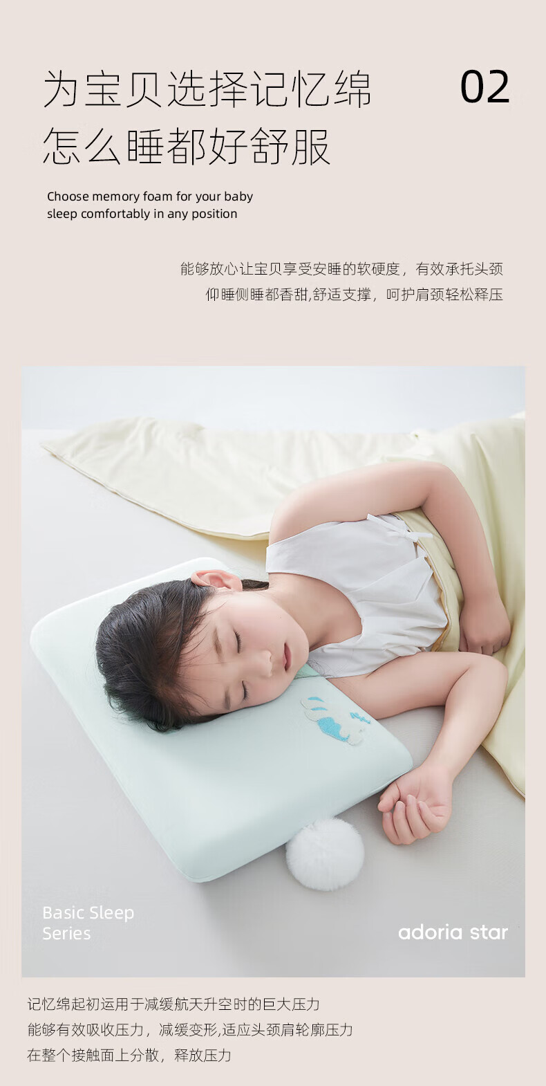 朵亚之星儿童枕头深睡记忆棉枕pro枕头枕芯3-6岁护颈椎深度睡眠专用6-12岁 深睡儿童枕-绮光粉 单只 【枕芯+枕头套+礼盒装】 中枕 7cm 适配6-12岁儿童