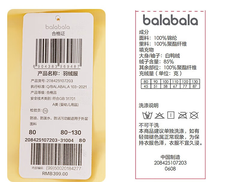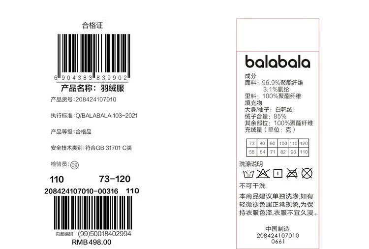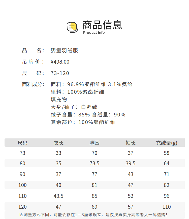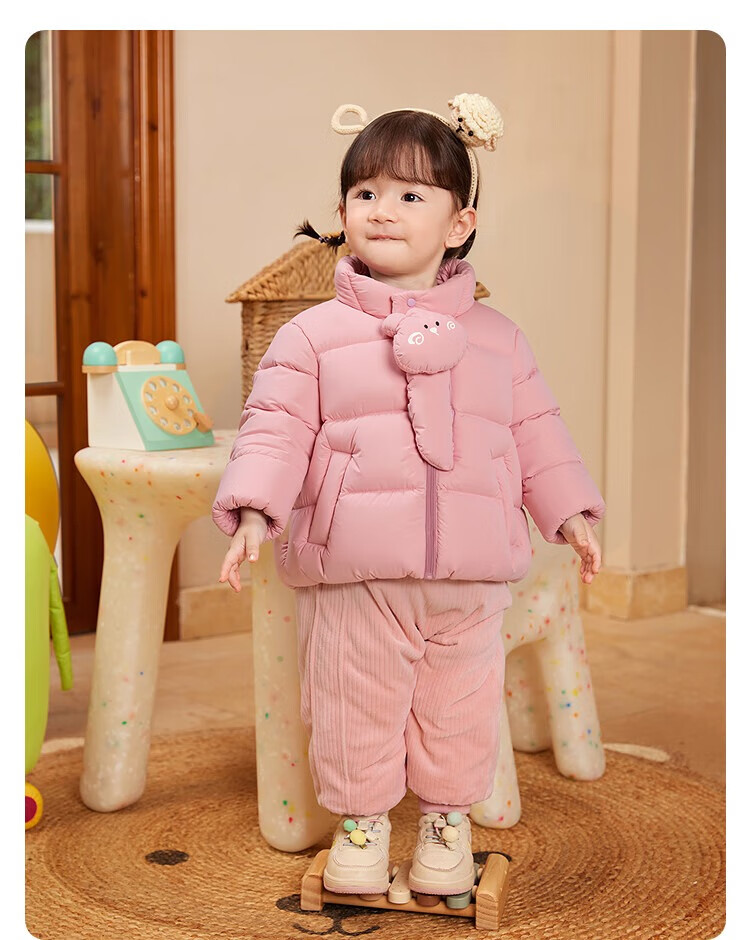 巴拉巴拉童装婴儿羽绒服女童宝宝冬季短款外套儿童保暖萌男童 白红色调00316 73 -充绒量58g