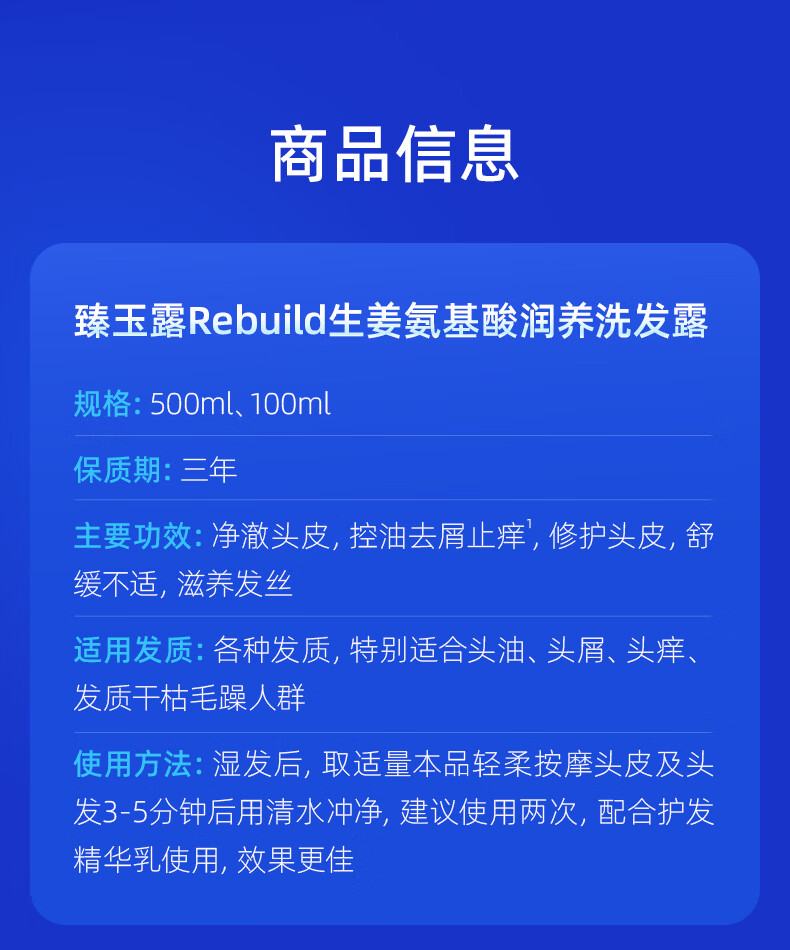 臻玉露Rebuild生姜氨基酸润养洗发露 控油蓬松去屑专用洗发水 100ml
