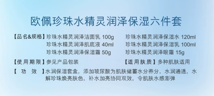 欧佩珍珠水精灵润泽保湿六件套补水护肤秋冬护肤品套盒 欧佩珍珠水精灵润泽保湿六件套