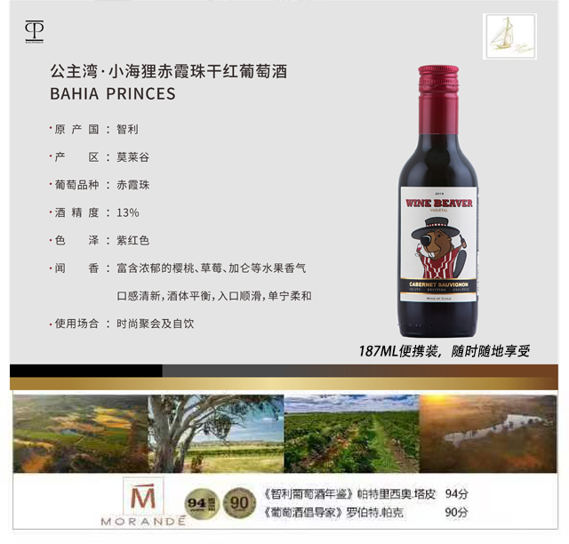 EVIDENCE公主湾系列红葡萄酒 智利原装进口红酒 小海狸 6支装