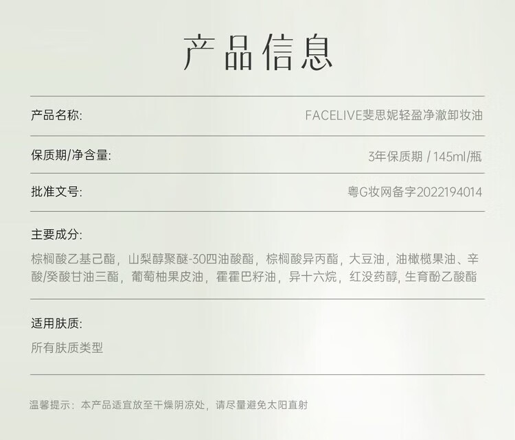 斐思妮轻盈净澈卸妆油敏感肌脸部深层清洁眼唇卸妆乳膏卸妆水 1瓶