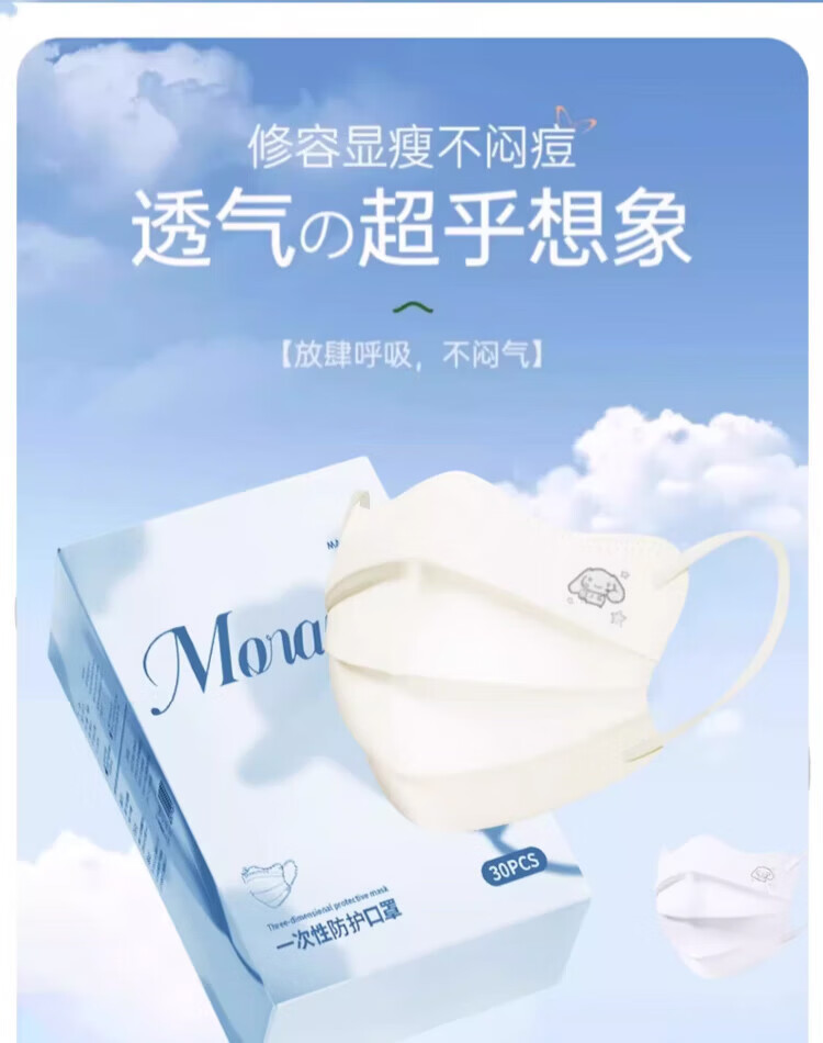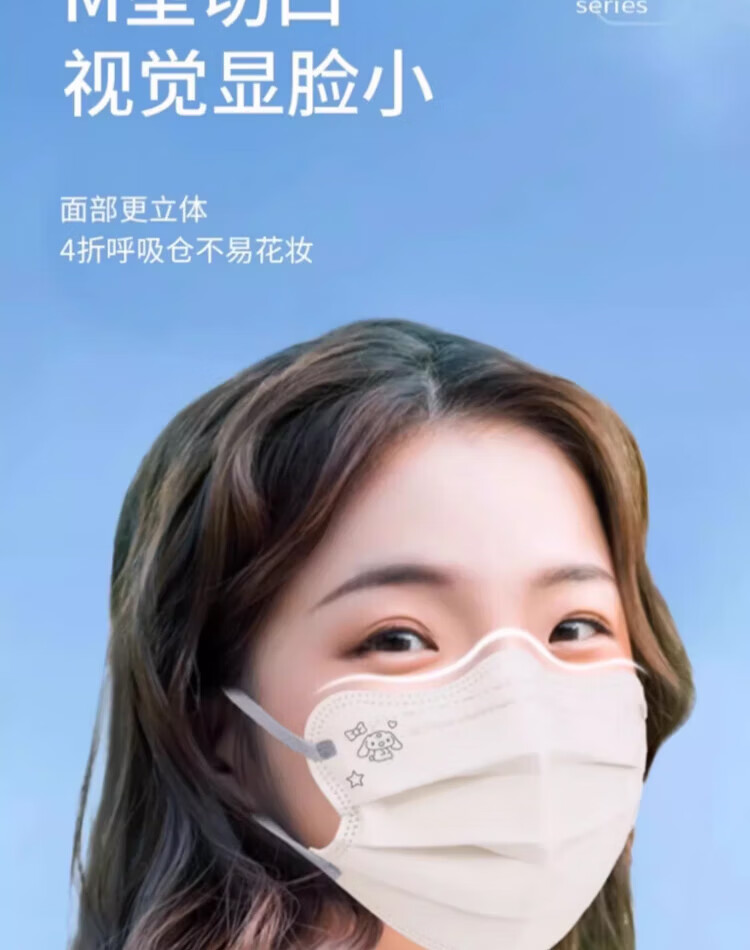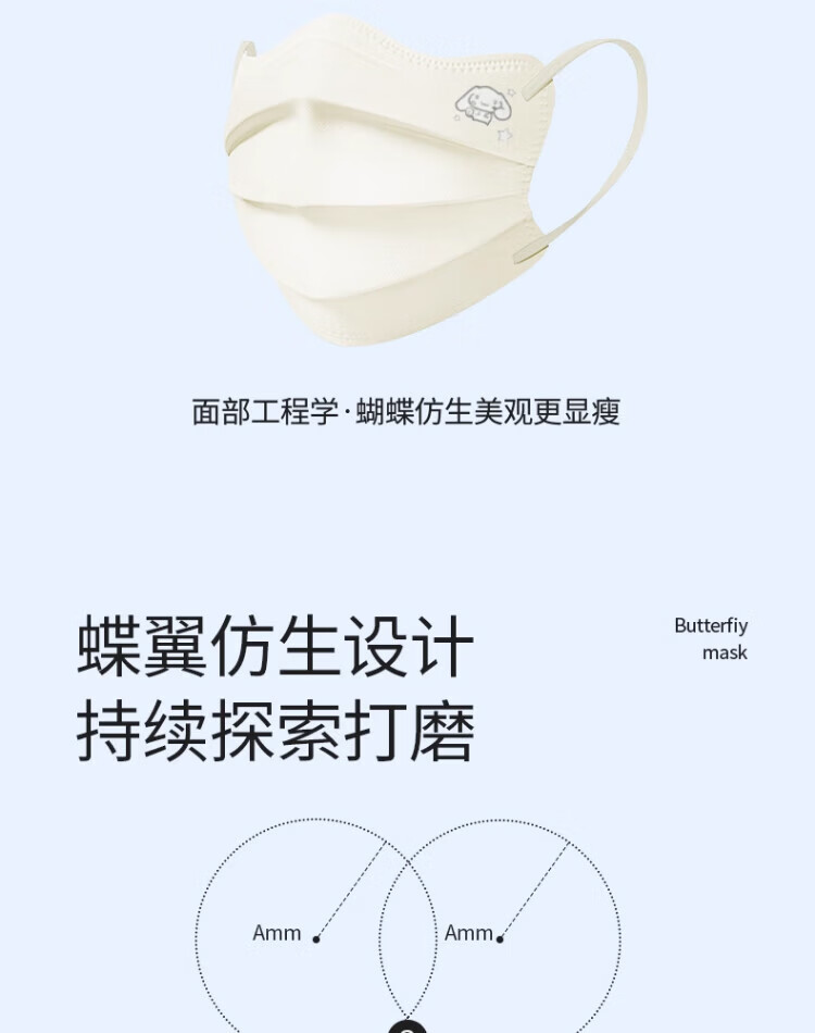 万宝绿曲面蝶形口罩卡通高颜值新款学生情侣新年一次性成人口罩独立包装 蝶形素颜显白【奶白混搭】60只-独立装 M码(适用75-125斤)成人/学生推荐