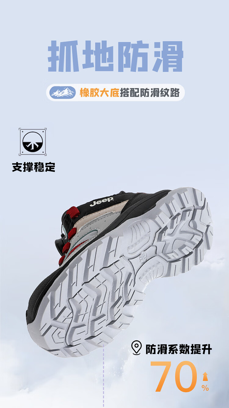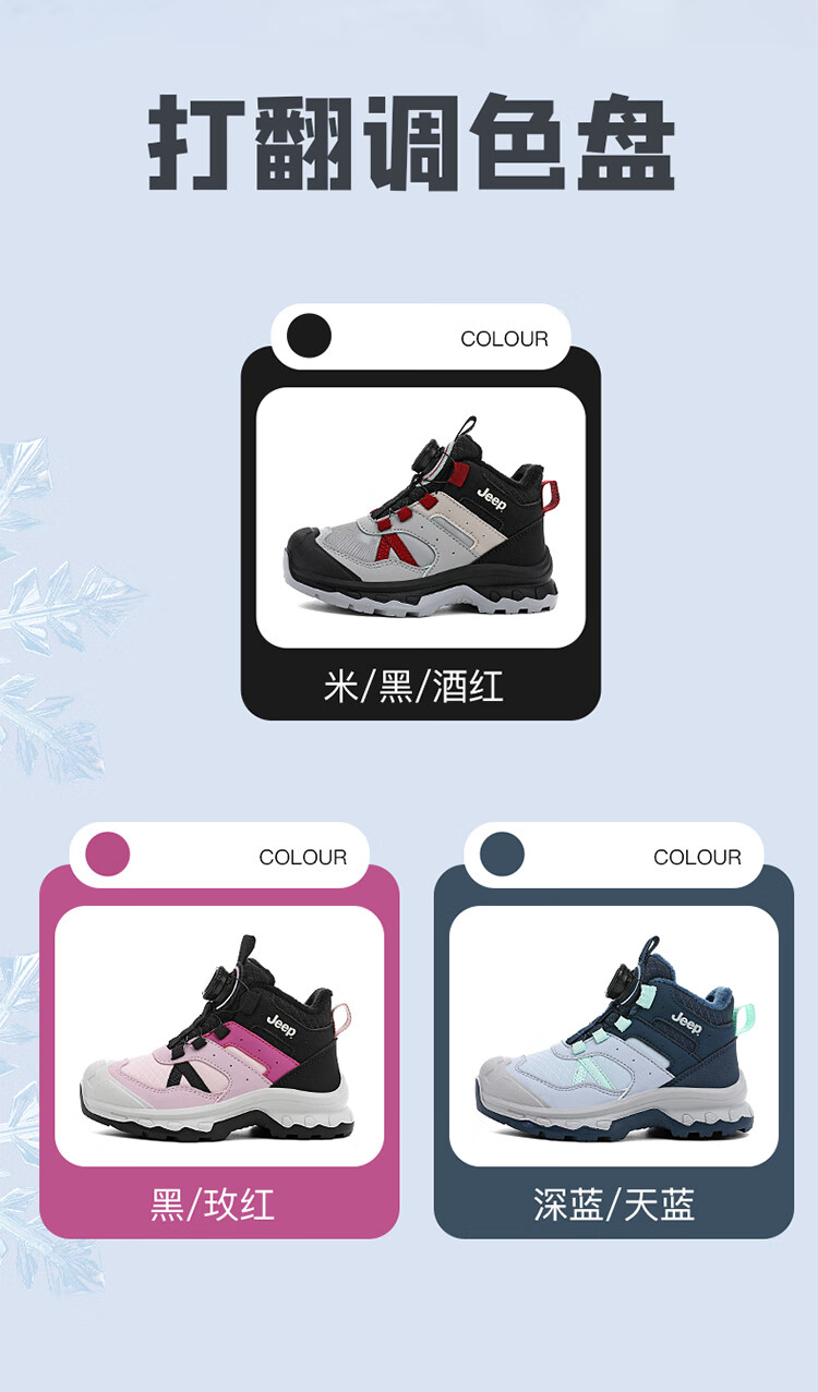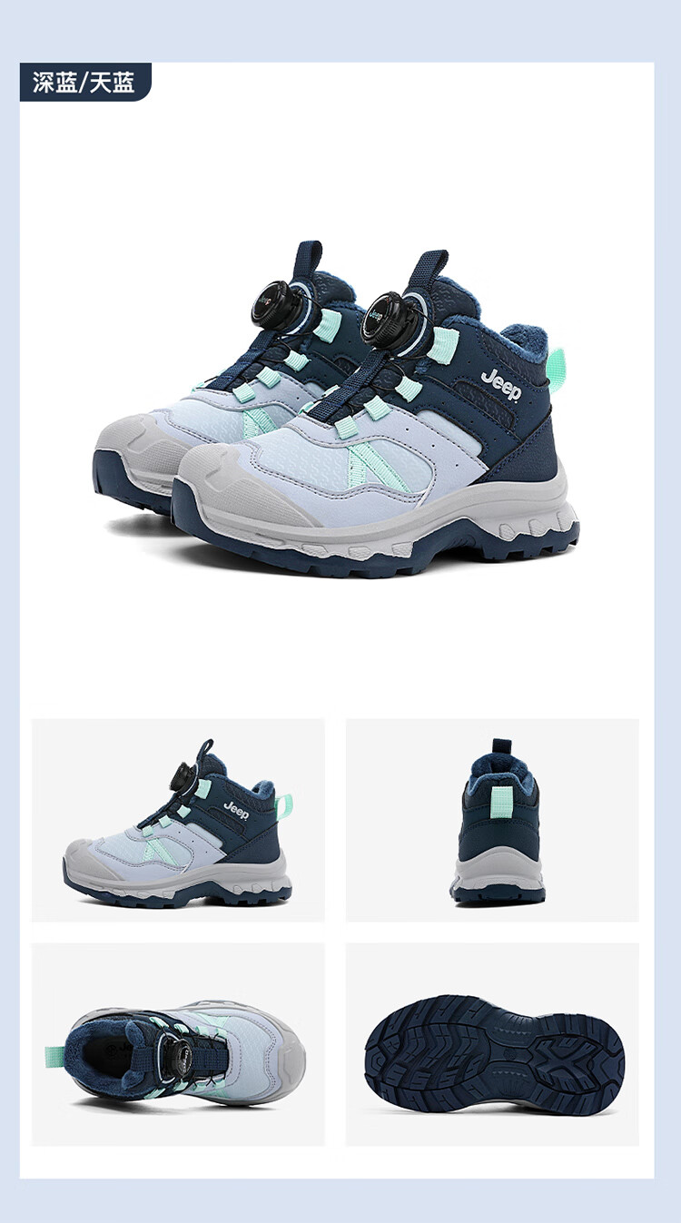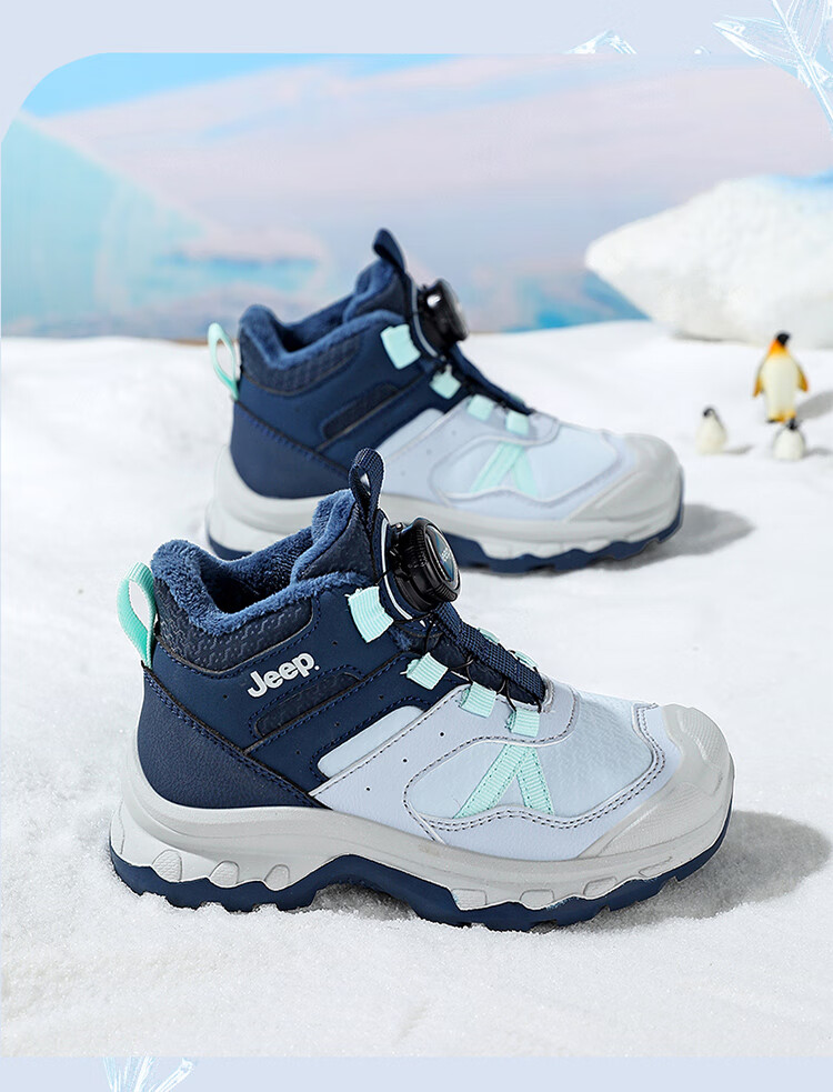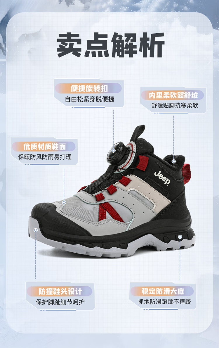 JEEP儿童加绒运动鞋男童女童登山鞋2025秋冬新款跑步鞋 米/黑/酒红 35