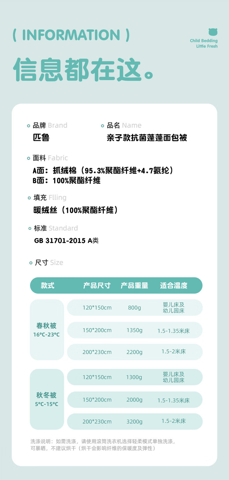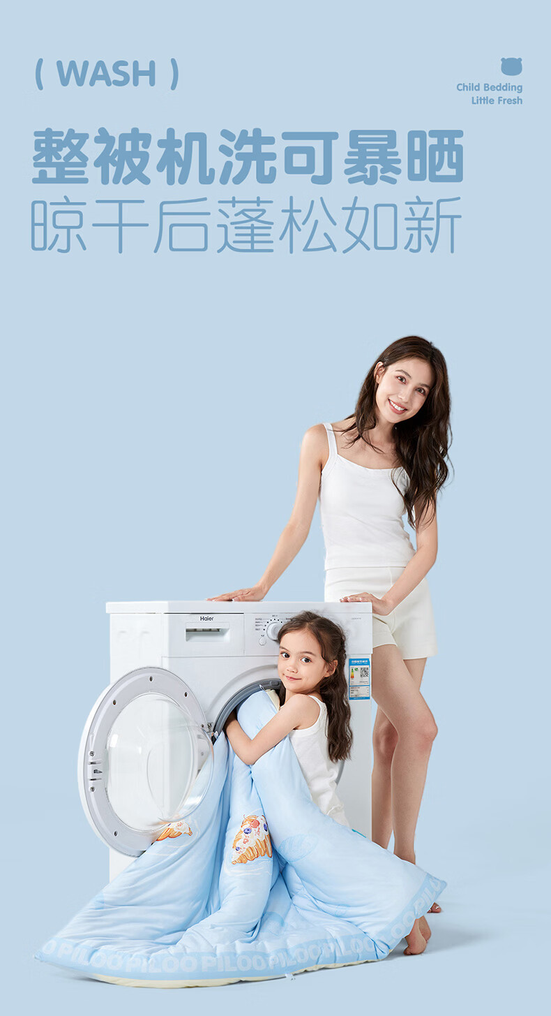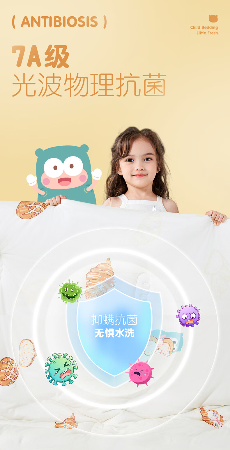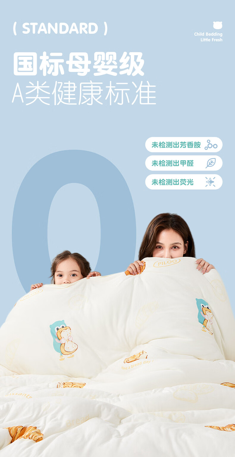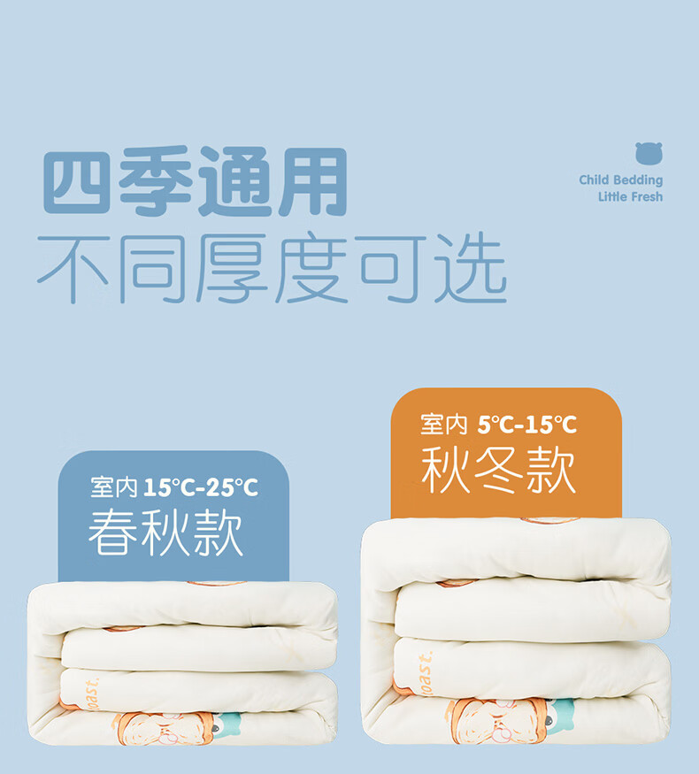 匹鲁儿童被子被芯A类可机洗春秋被冬季抗菌婴儿幼儿园午睡透气学生被 招牌海盐卷-冬被 120*150CM