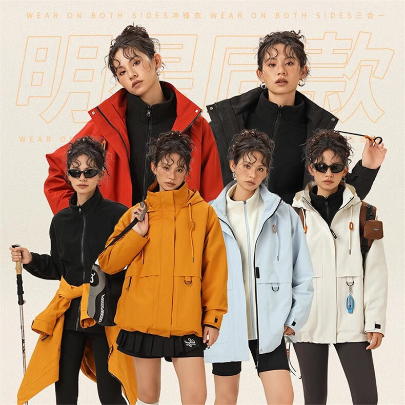 INTO TOP户外三合一冲锋衣男秋冬季新款外套男女情侣款三防运动登山服 CYMY963518向日葵【三合一】 M