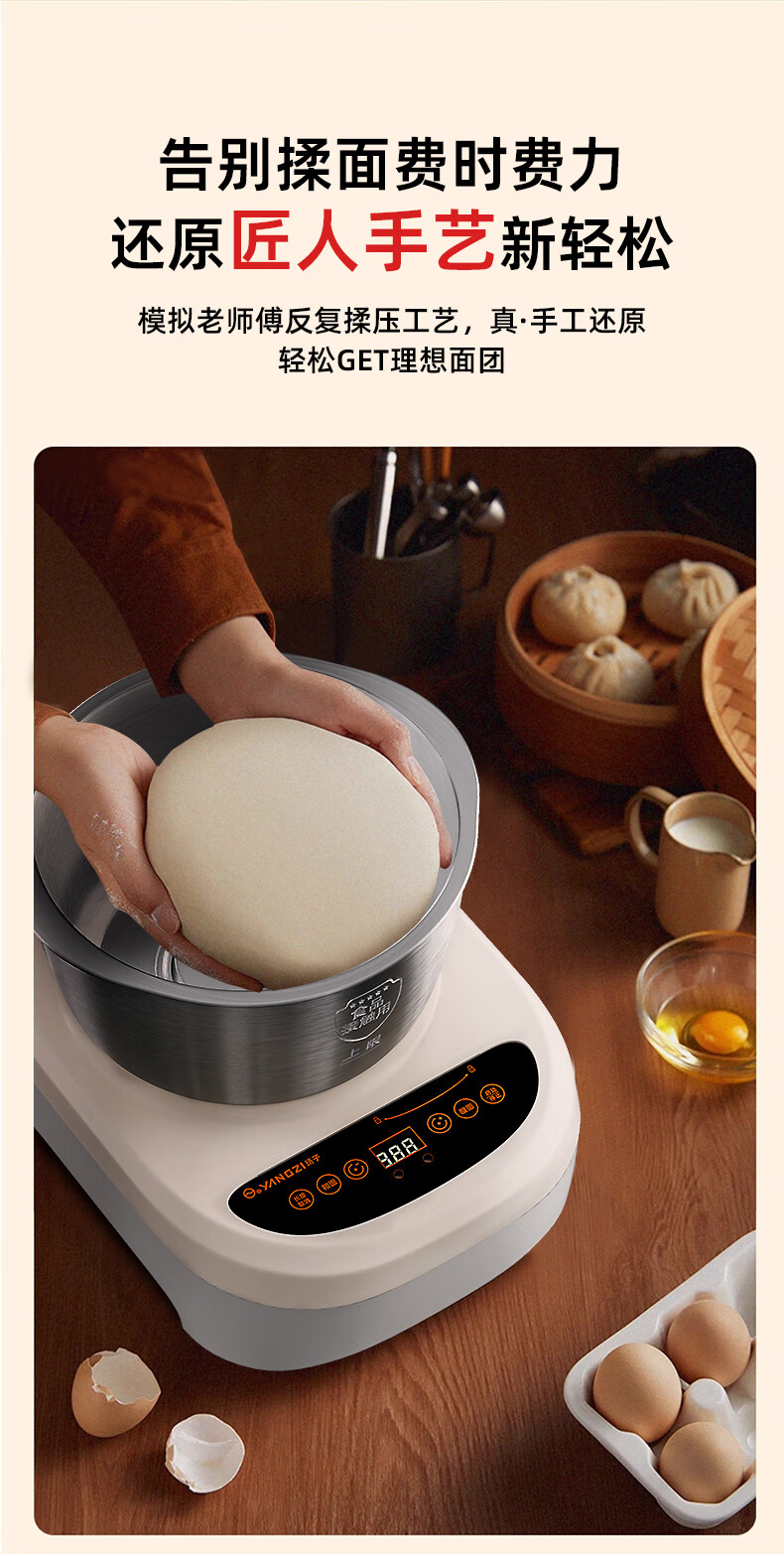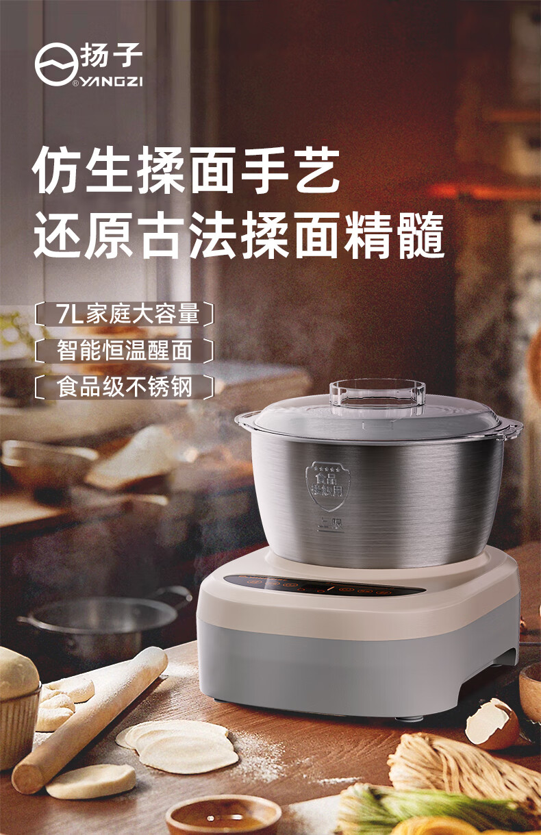 扬子和面机家用揉面机厨师机全自动搅面机多功能智能醒面发面机面包面粉搅拌机大容量活面机7升H-002