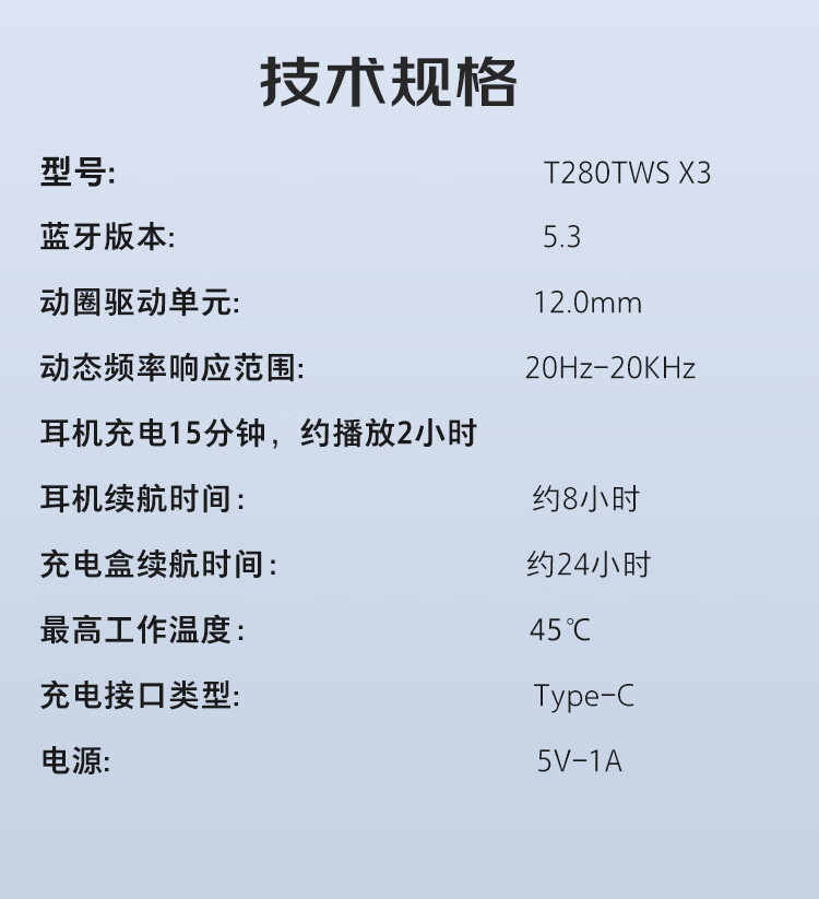 JBL T280TWS X3真无线蓝牙耳机 半入耳式音乐通话降噪游戏耳麦 防水防汗 国家补贴 苹果安卓通用 白色