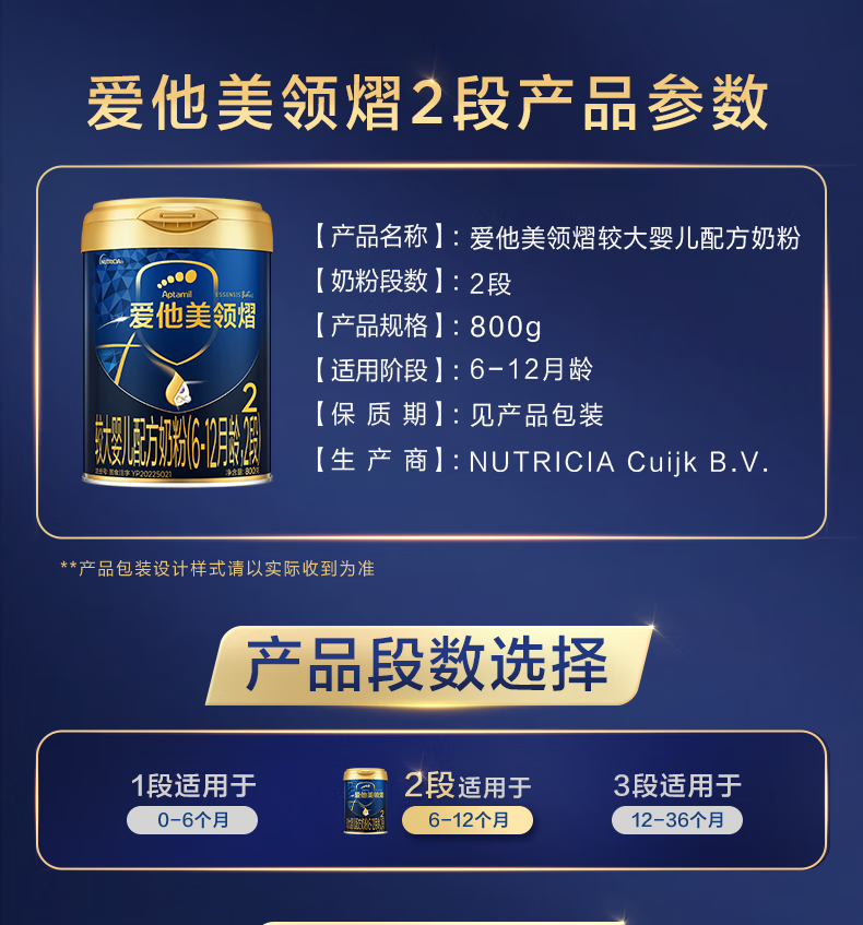 爱他美领熠新国标2段800克原装进口婴幼儿奶粉 领熠2段800g*3罐 ((咨询优惠)
