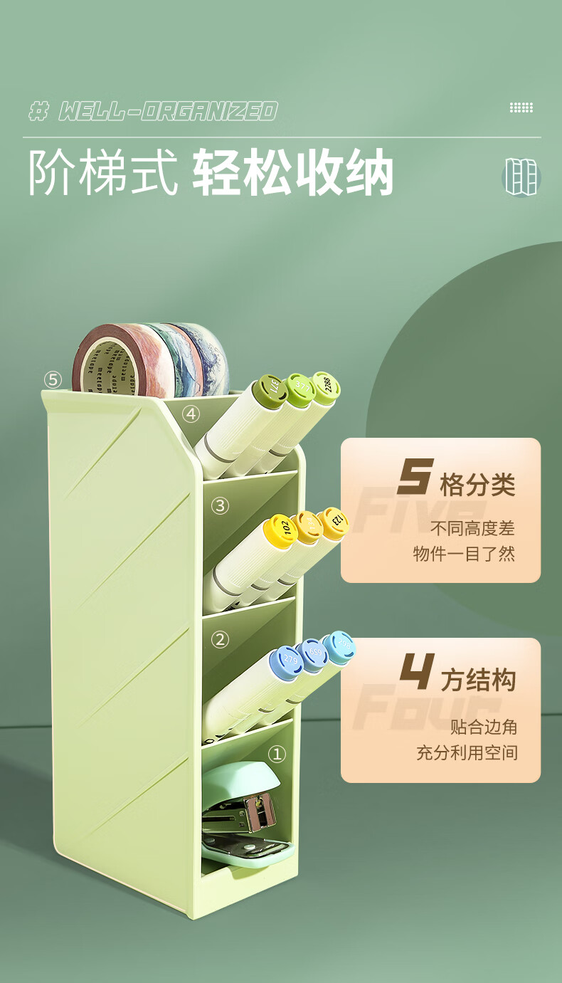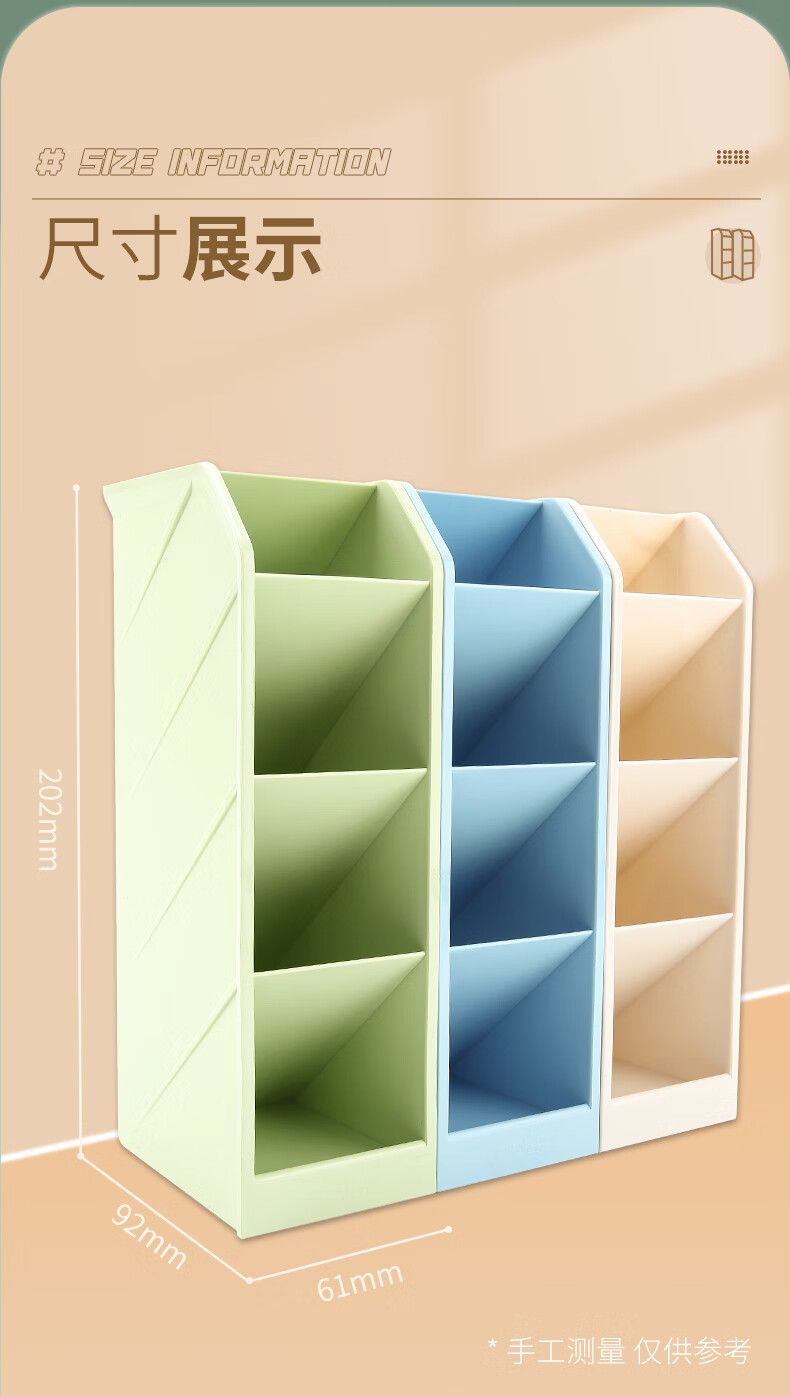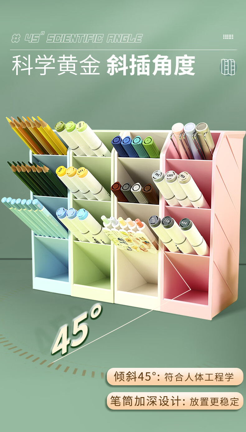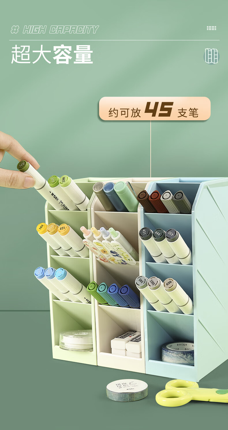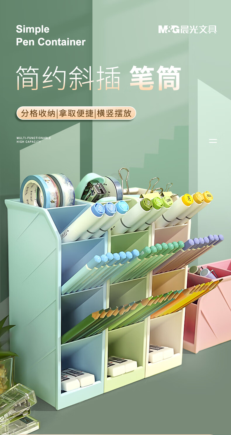 晨光(M&G)文具 笔筒 创意收纳盒大容量加厚多层斜插式笔架彩色分类分格 三个装(米白+粉+绿)