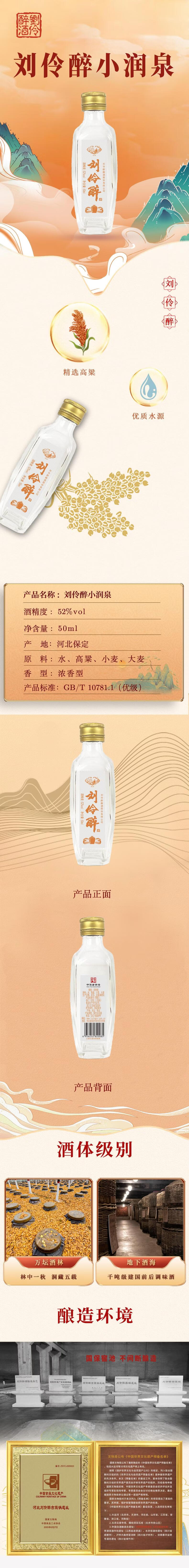 刘伶醉 小润泉 浓香型白酒 52度 50ml 单瓶装 品鉴小酒
