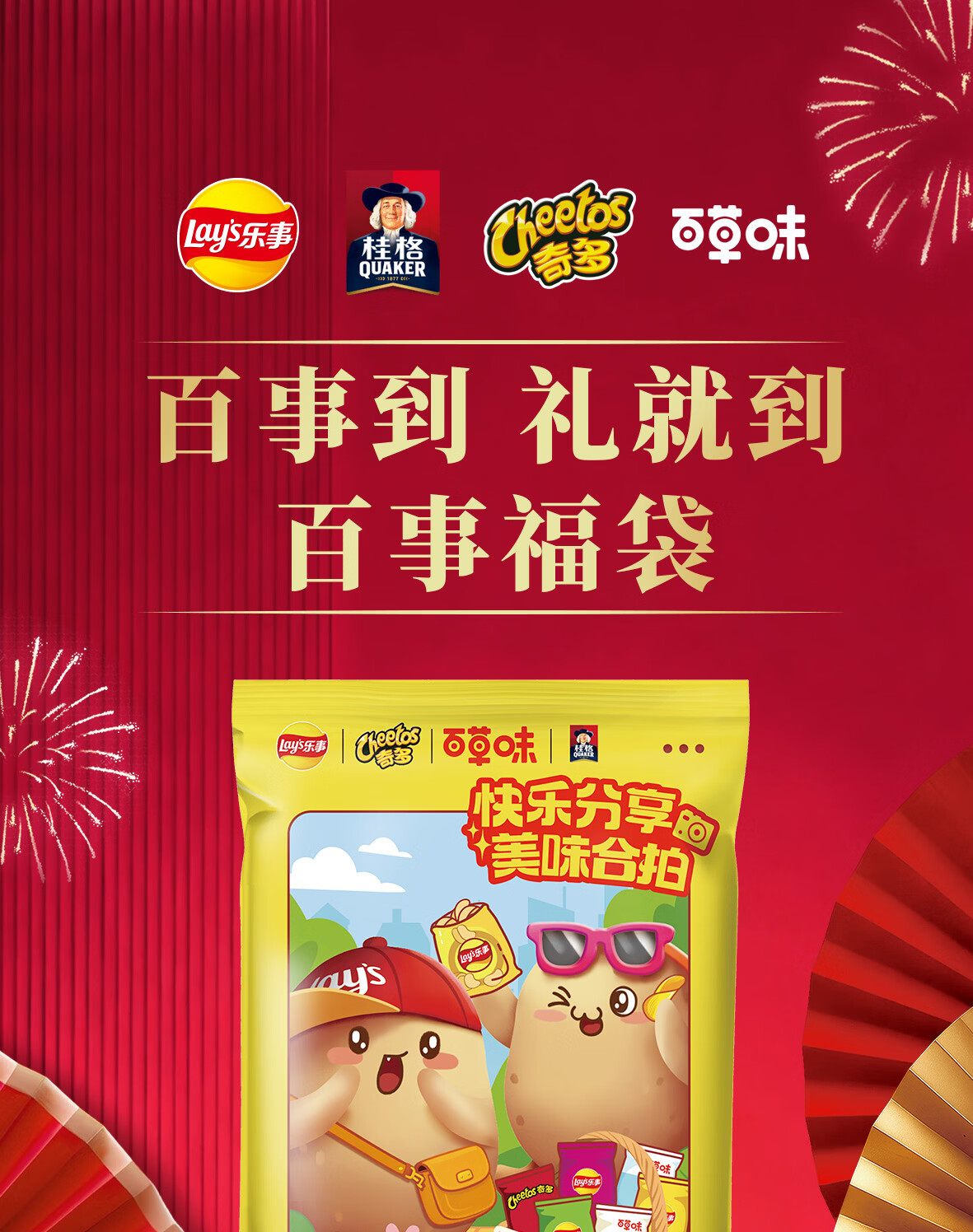 乐事年货休闲食品解馋小吃零食大礼包410g薯片百草味桂格团购送礼礼盒