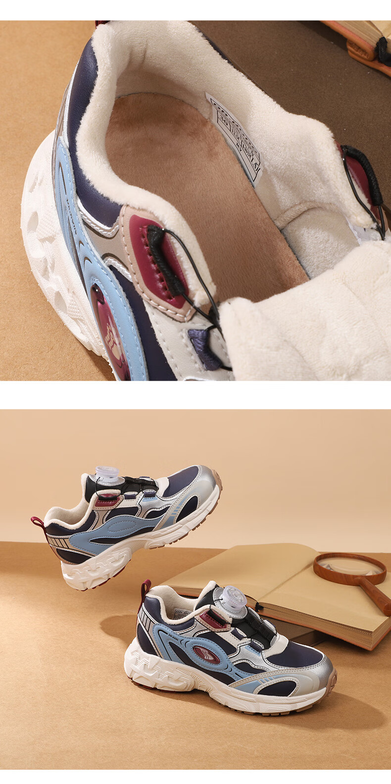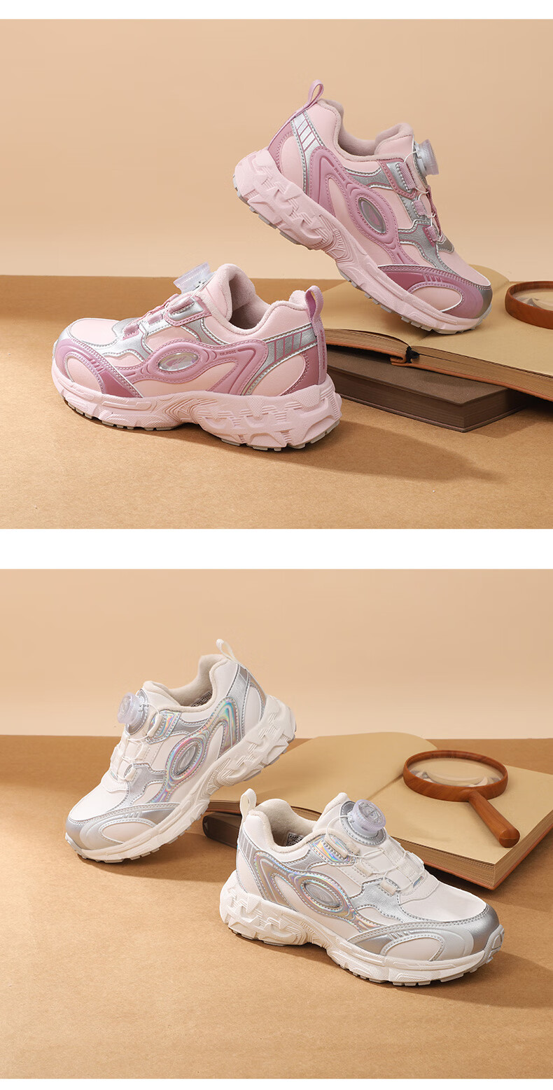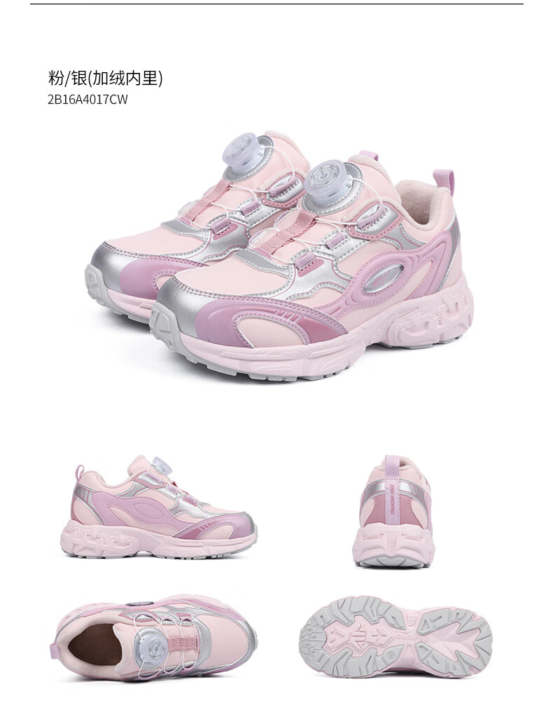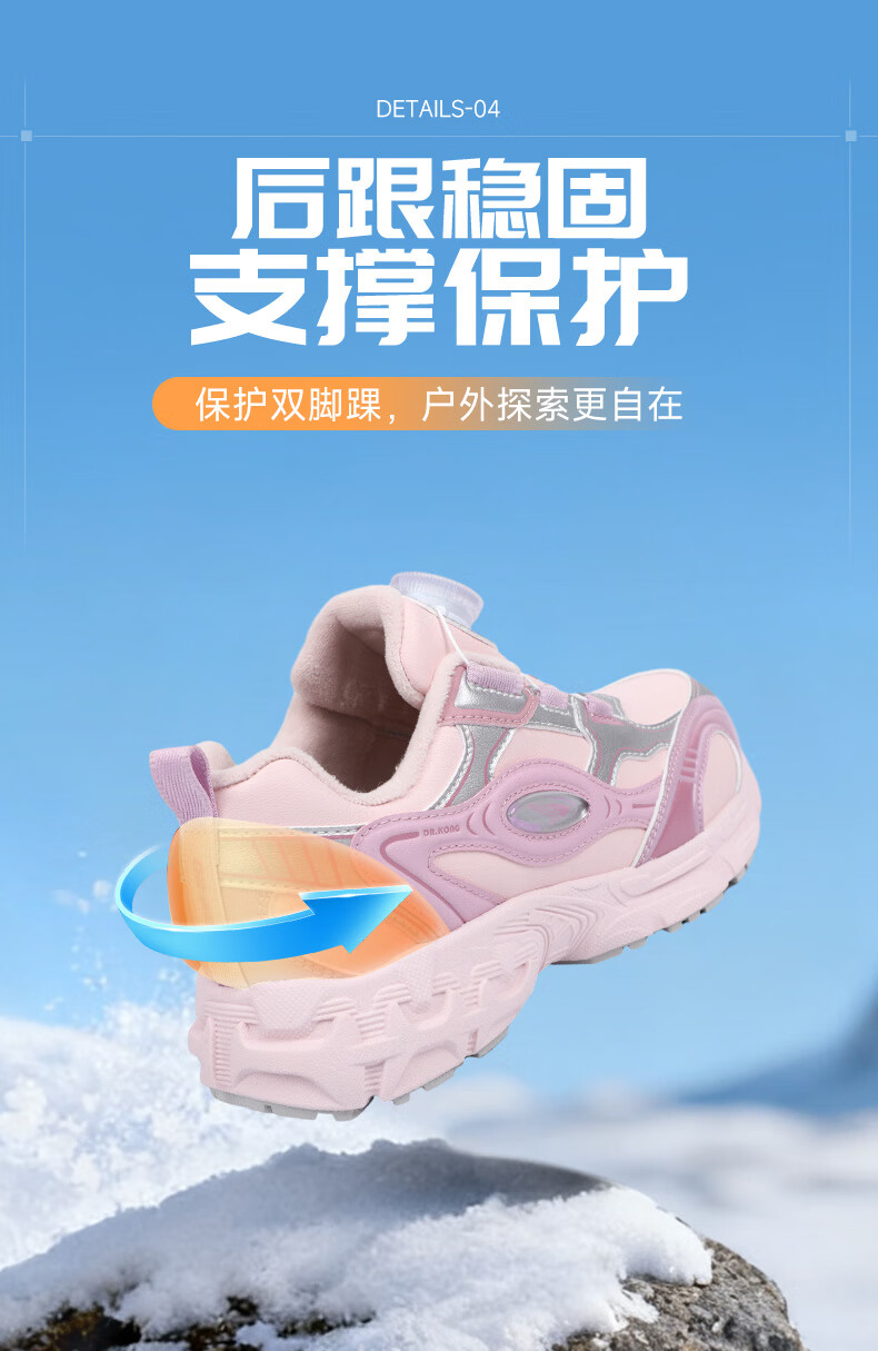 江博士(DR·KONG)冬季男女童加绒保暖儿童学步鞋 防滑耐磨免系旋钮扣儿童运动鞋 粉/银 (加绒内里) 29 脚长约17.5-18.1