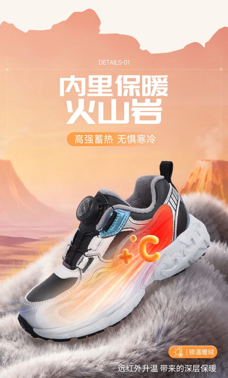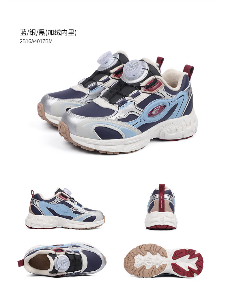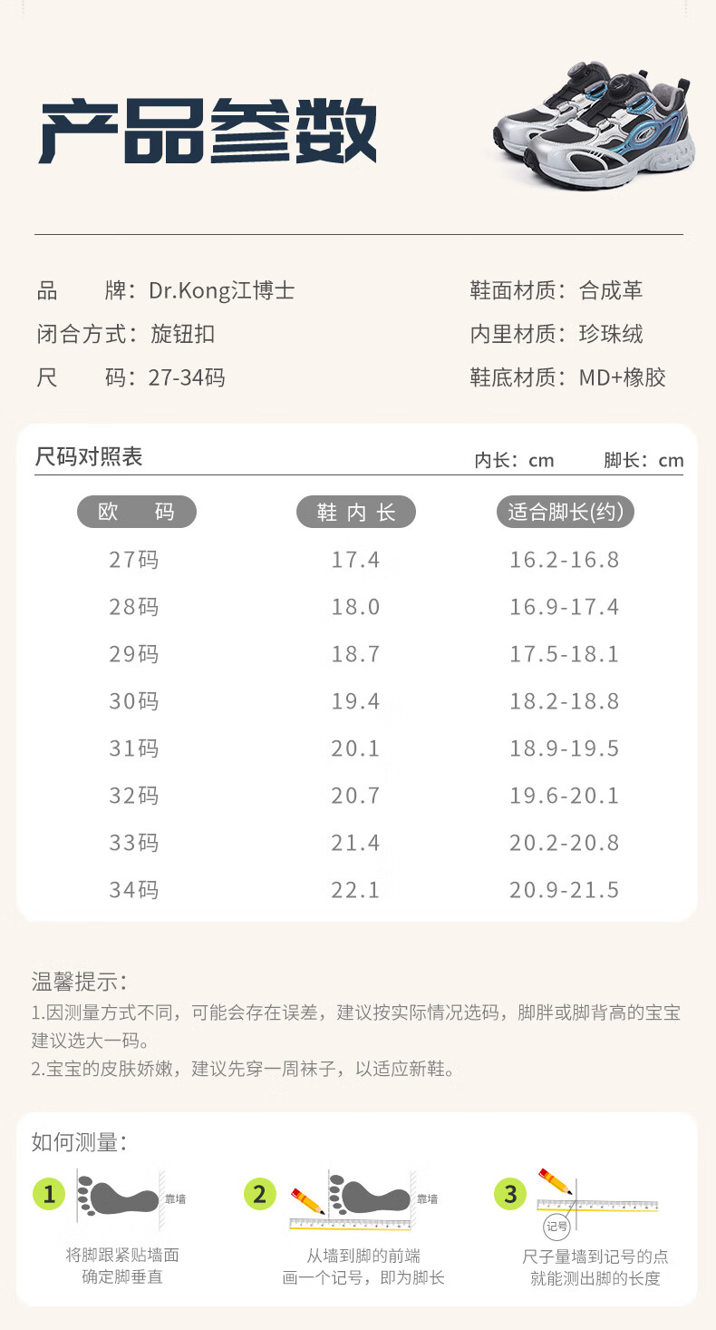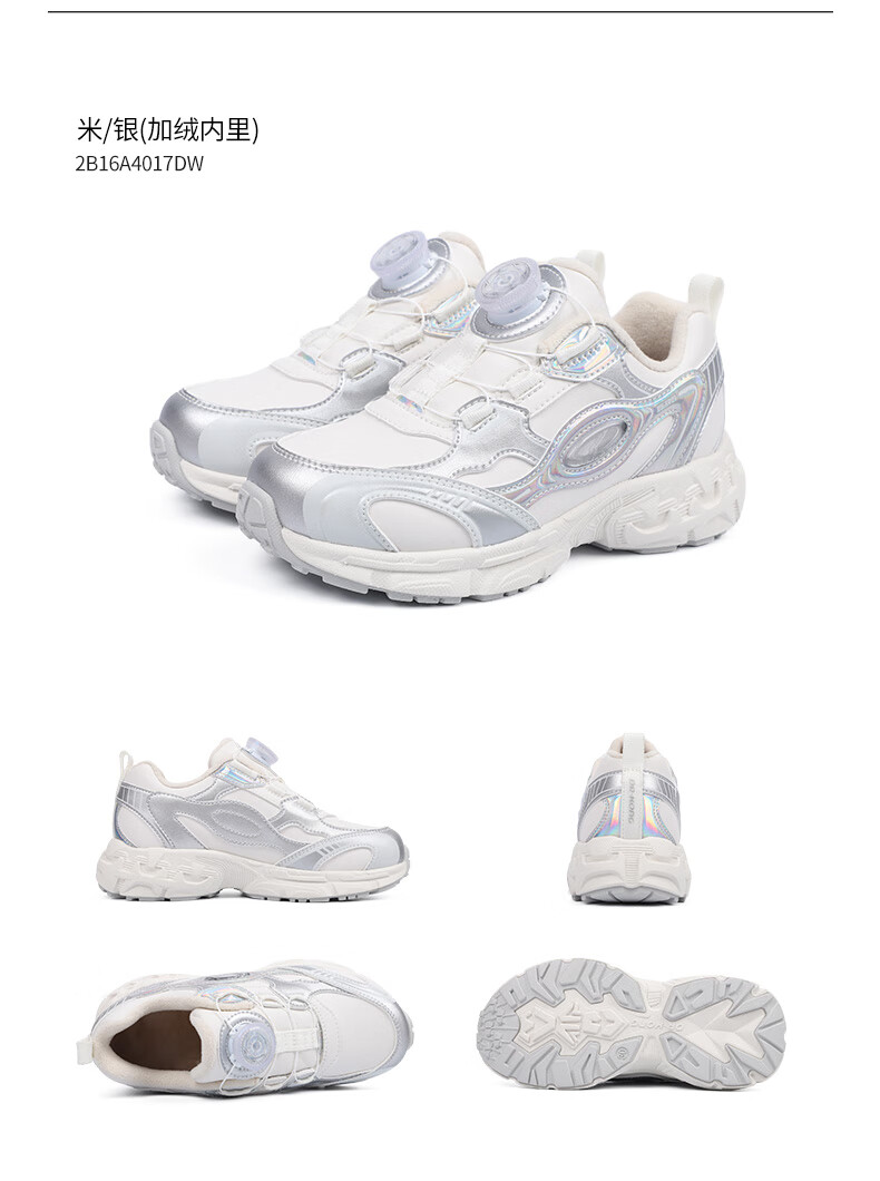 江博士(DR·KONG)冬季男女童加绒保暖儿童学步鞋 防滑耐磨免系旋钮扣儿童运动鞋 粉/银 (加绒内里) 29 脚长约17.5-18.1