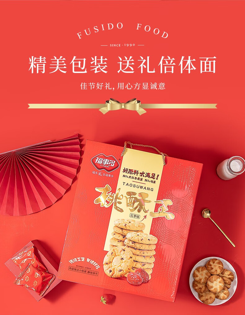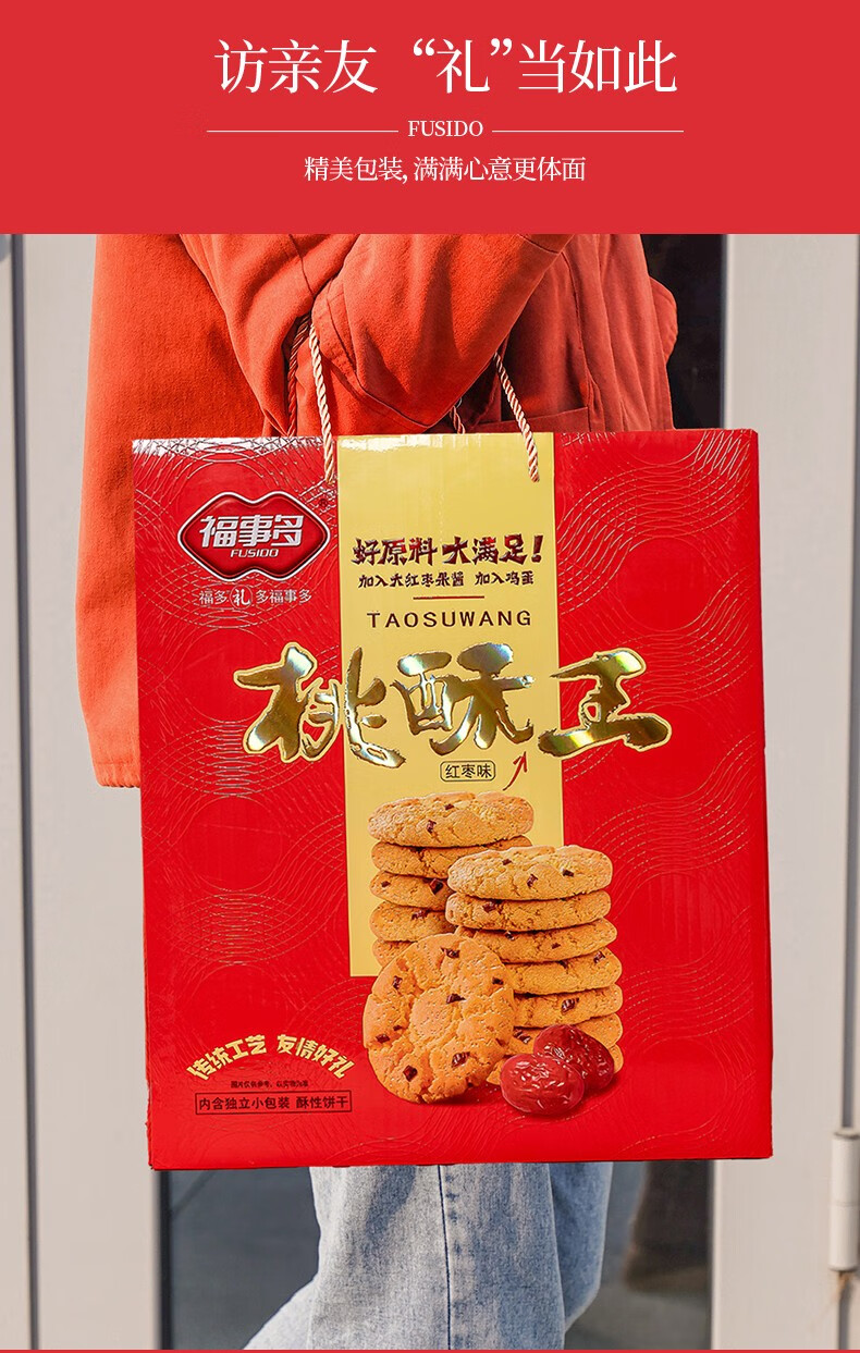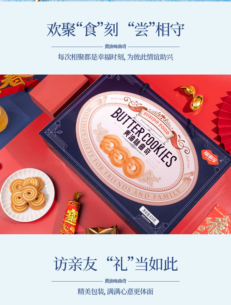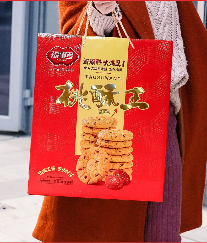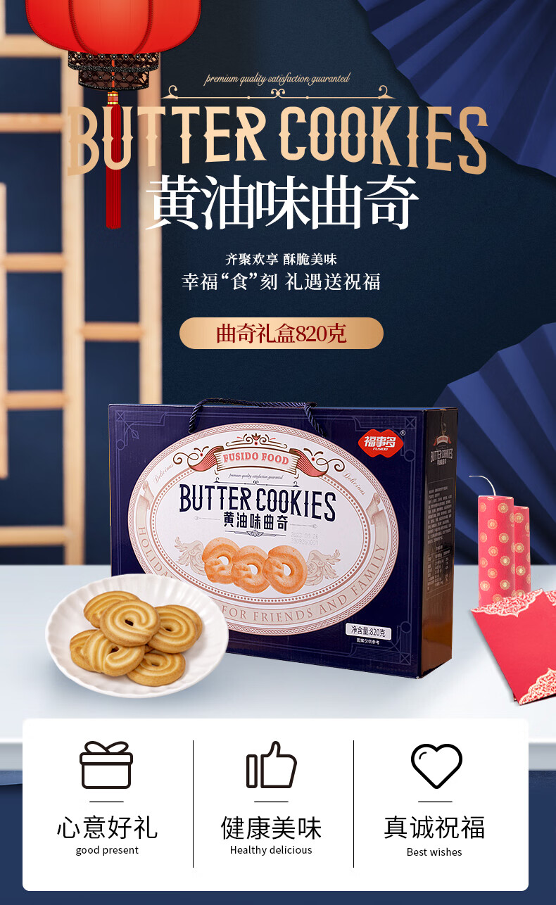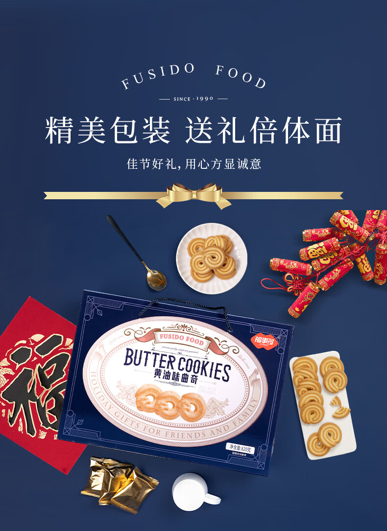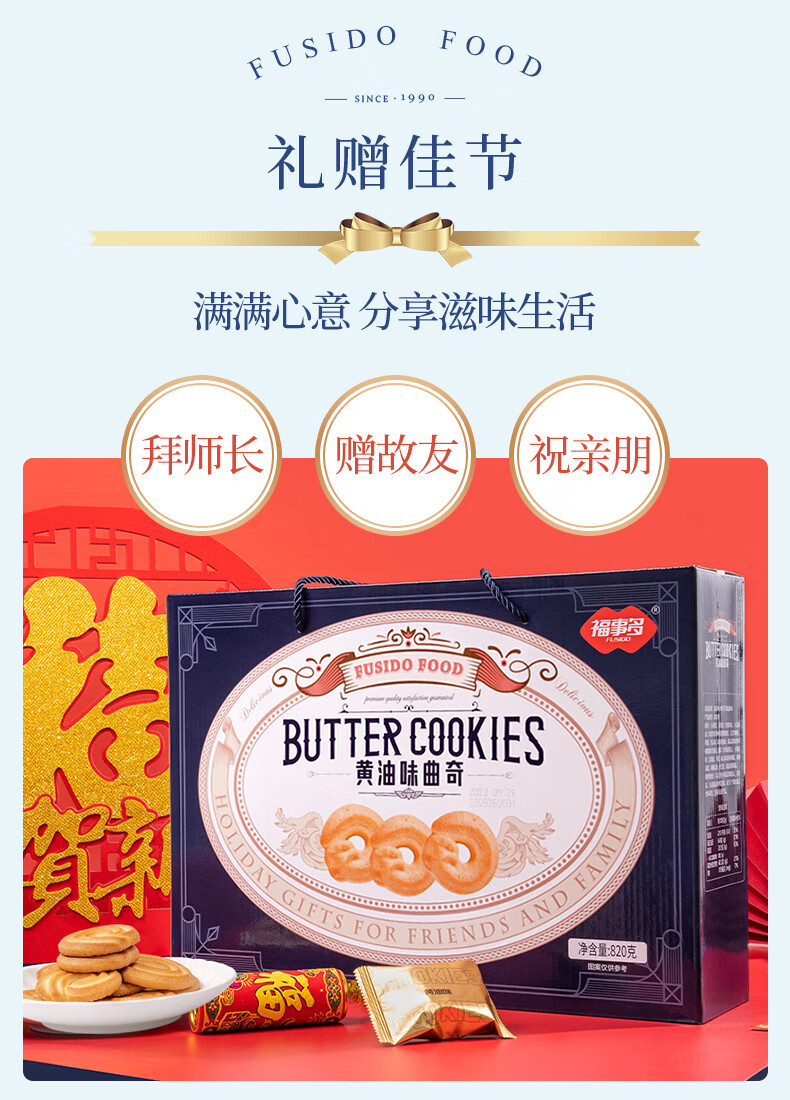福事多休闲零食曲奇饼干营养代餐春节送礼年货礼品送长辈礼盒装 曲奇饼干礼盒(红色)820g*1箱