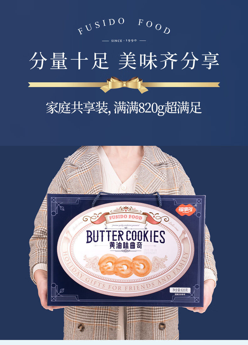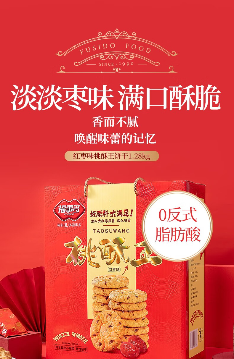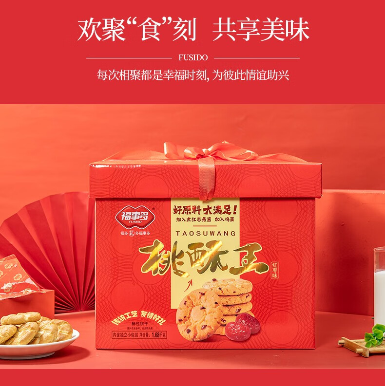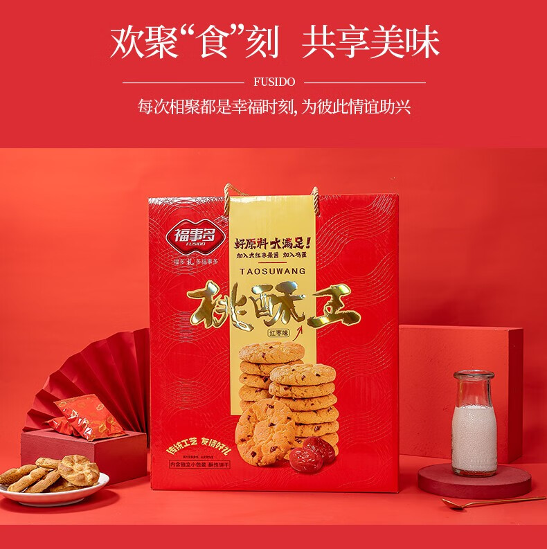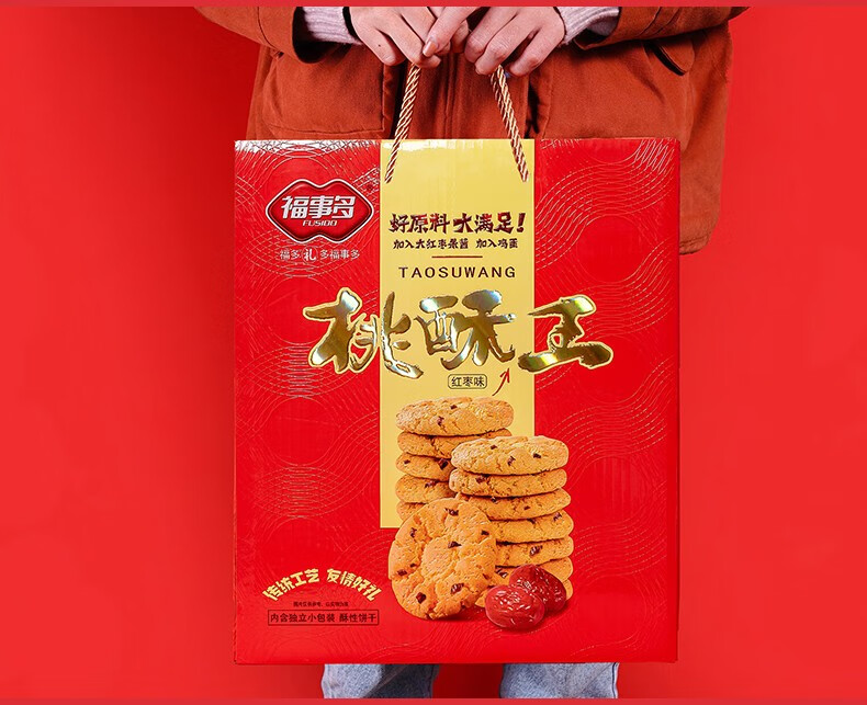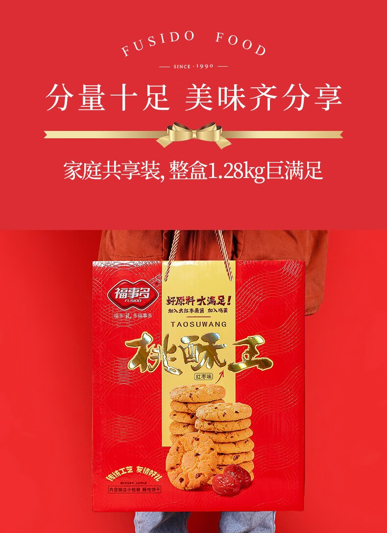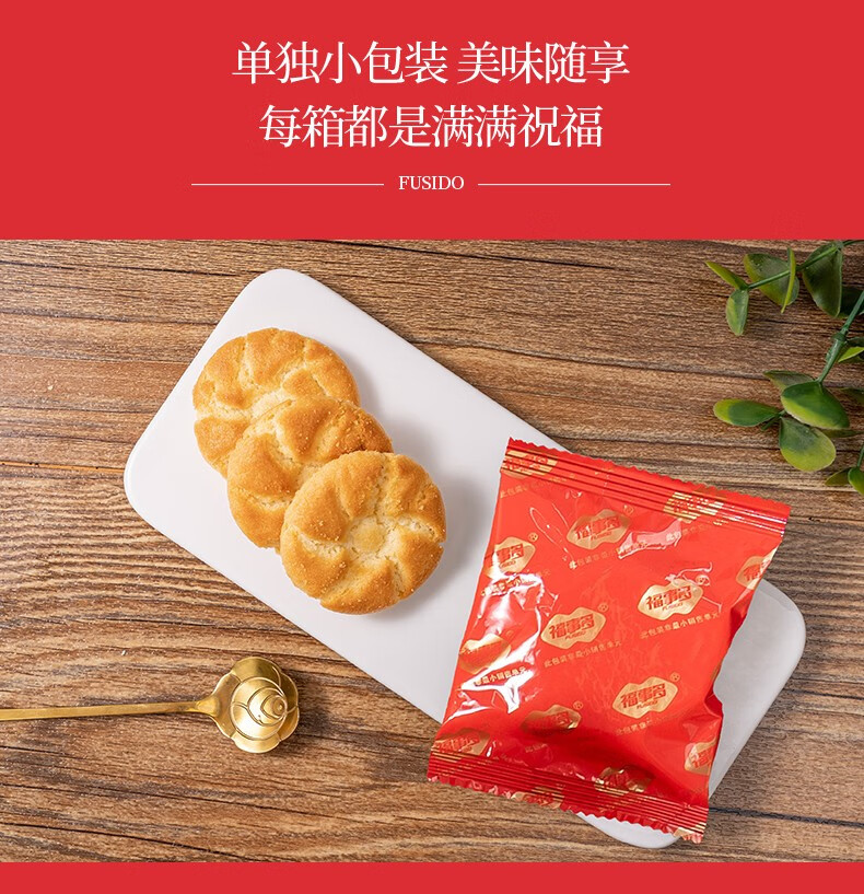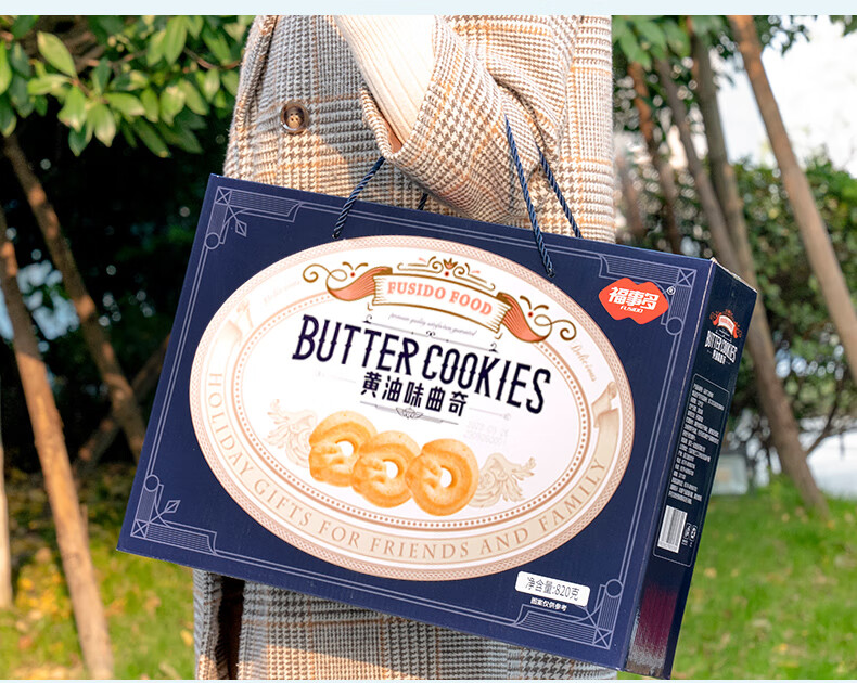 福事多休闲零食曲奇饼干营养代餐春节送礼年货礼品送长辈礼盒装 曲奇饼干礼盒(红色)820g*1箱