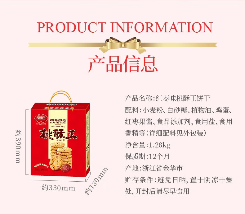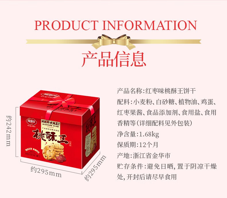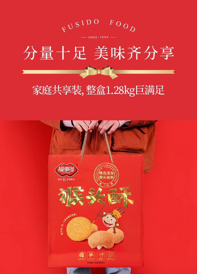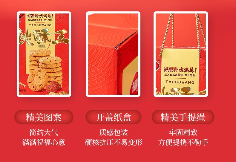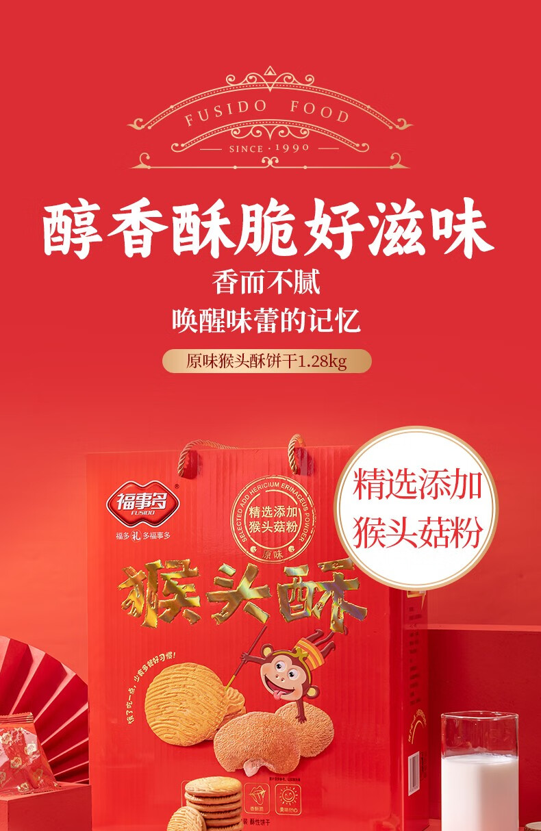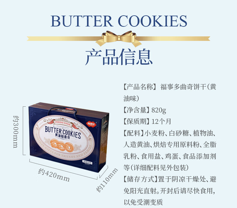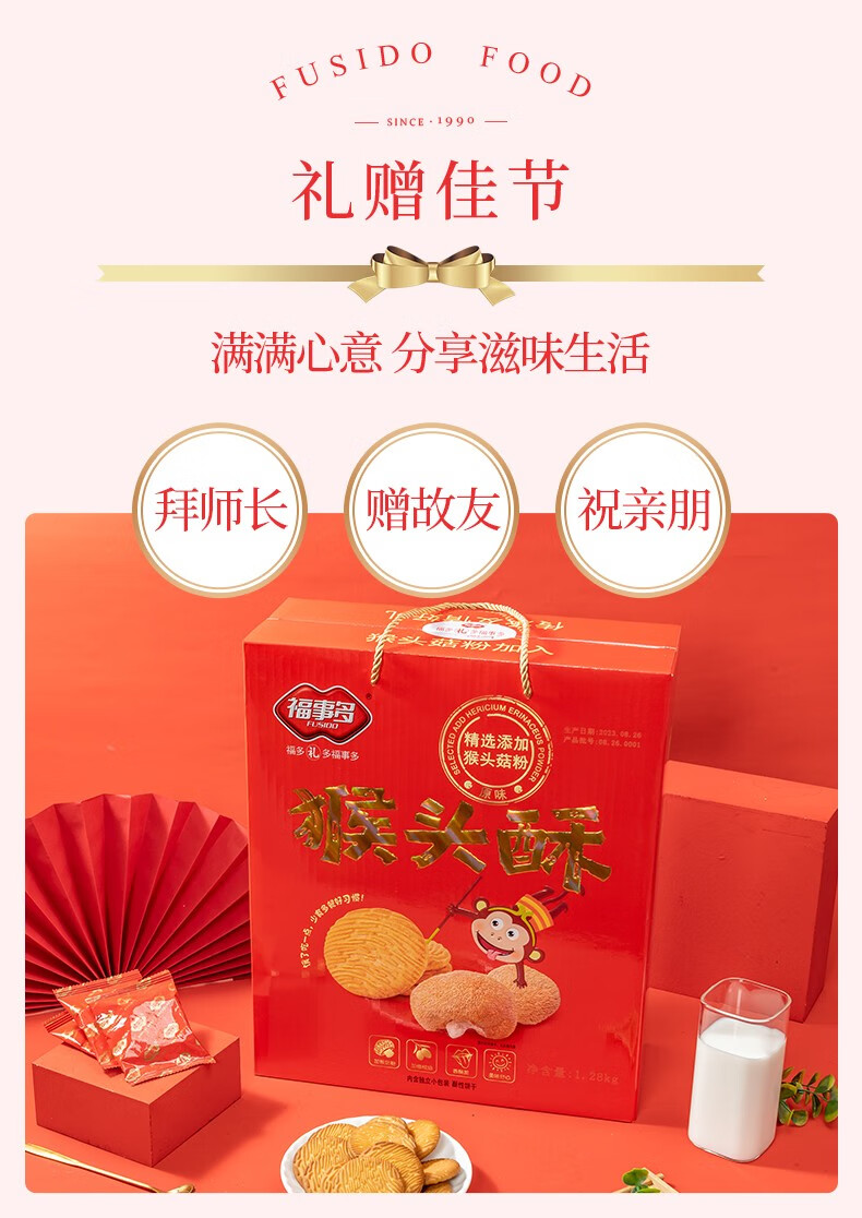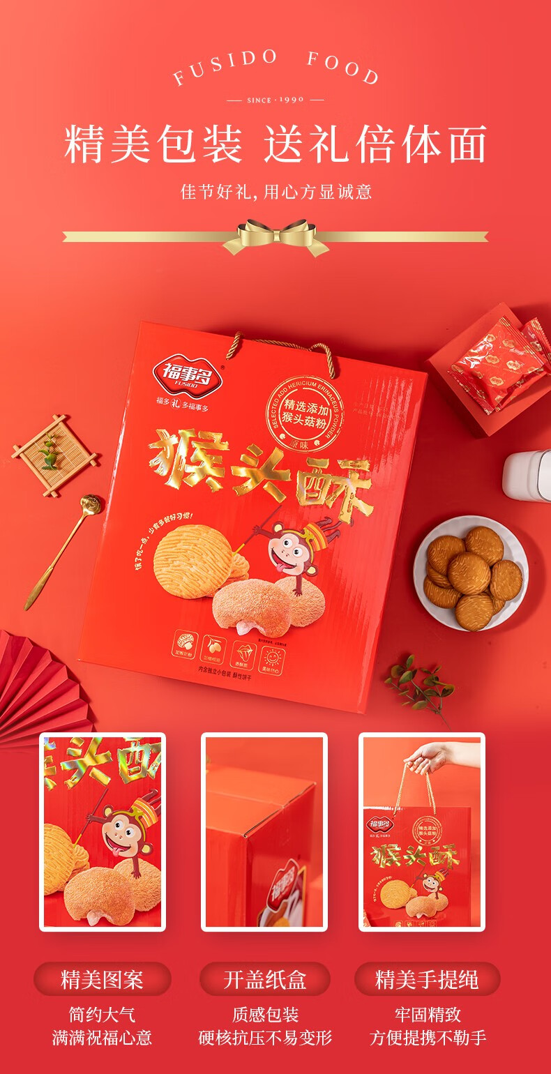 福事多休闲零食曲奇饼干营养代餐春节送礼年货礼品送长辈礼盒装 曲奇饼干礼盒(红色)820g*1箱