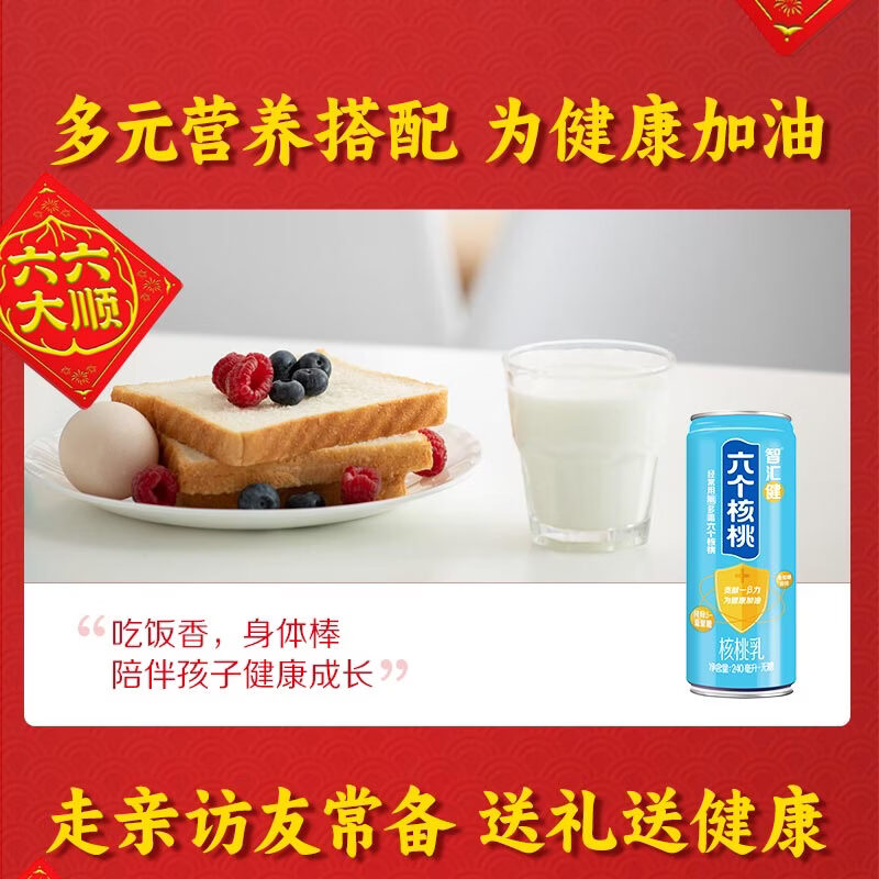六个核桃智汇健无糖核桃乳240ml*12罐*2箱植物蛋白饮料【年货好礼】