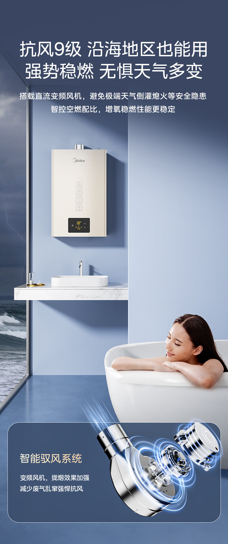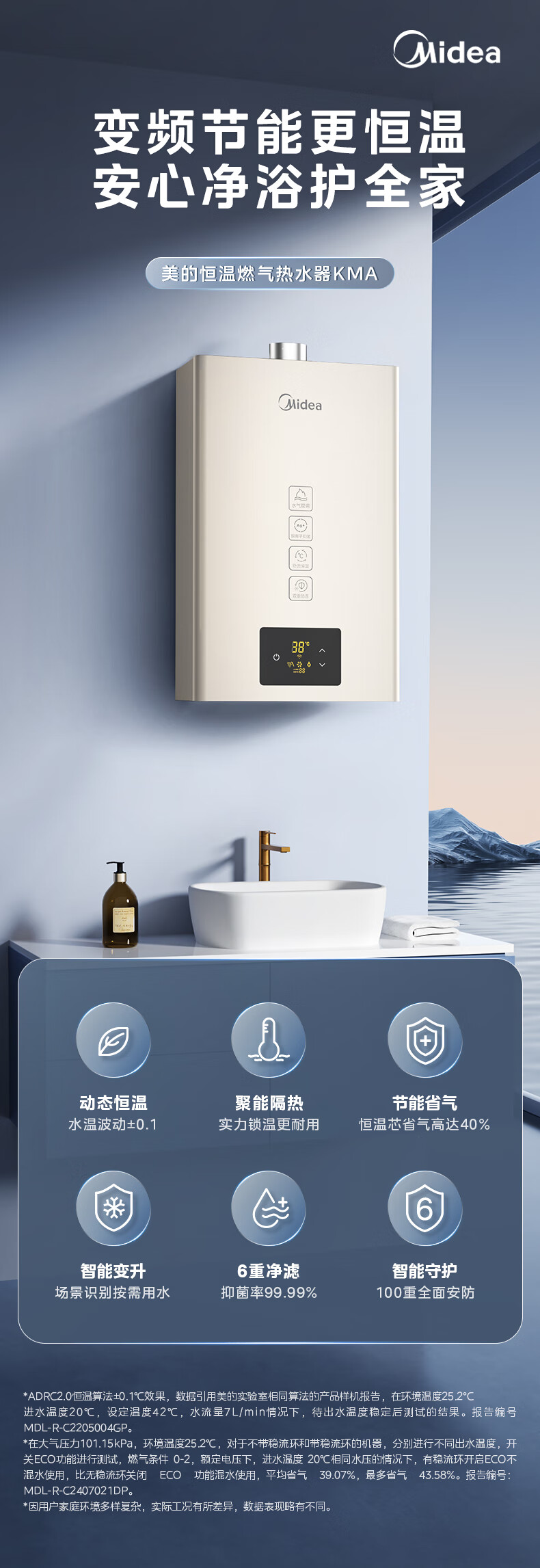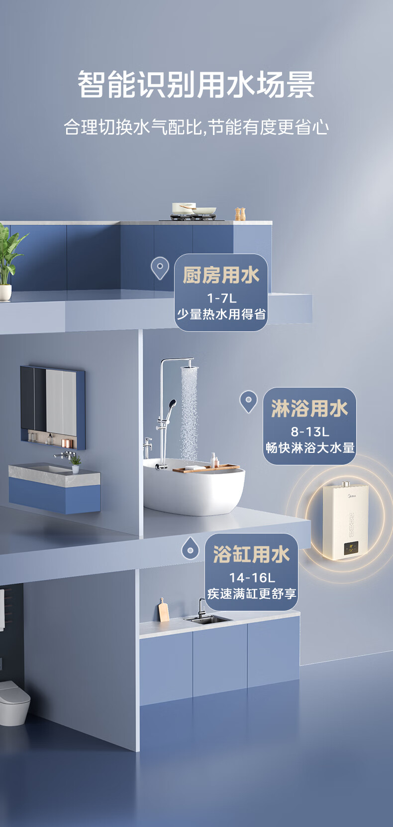 美的(Midea)KMA 14升燃气热水器 天然气 一厨一卫首选 水气双调 低水压启动 上门安装 门店同款JSQ27-14KMA