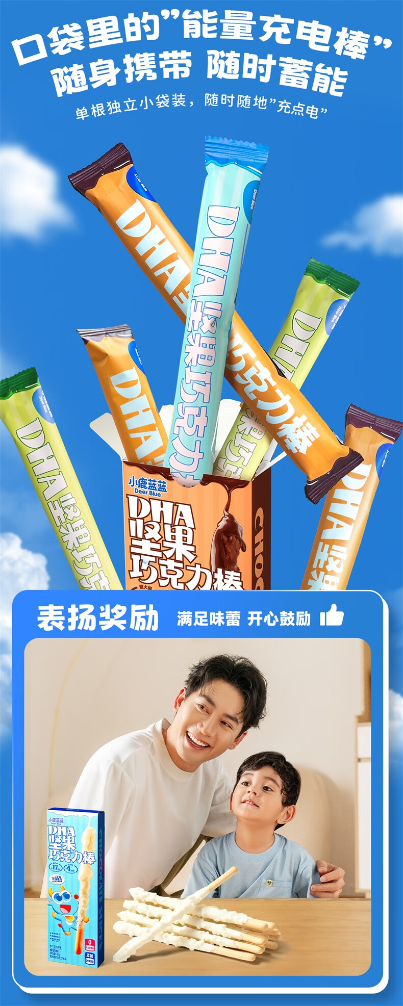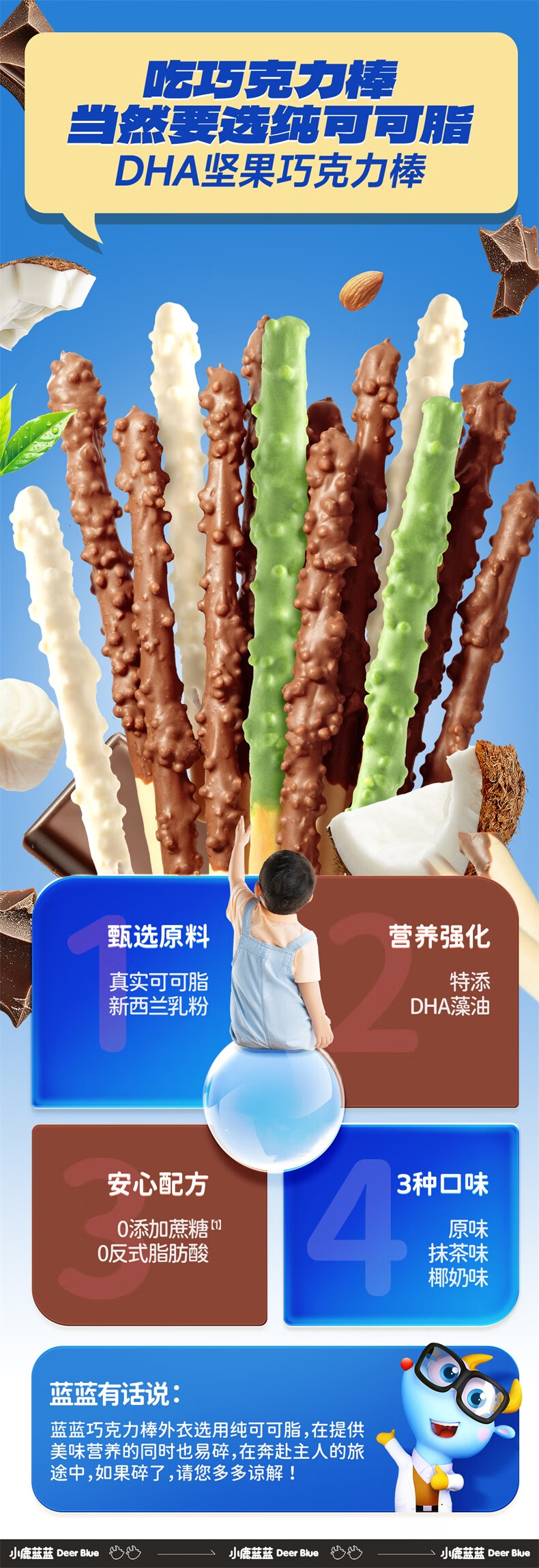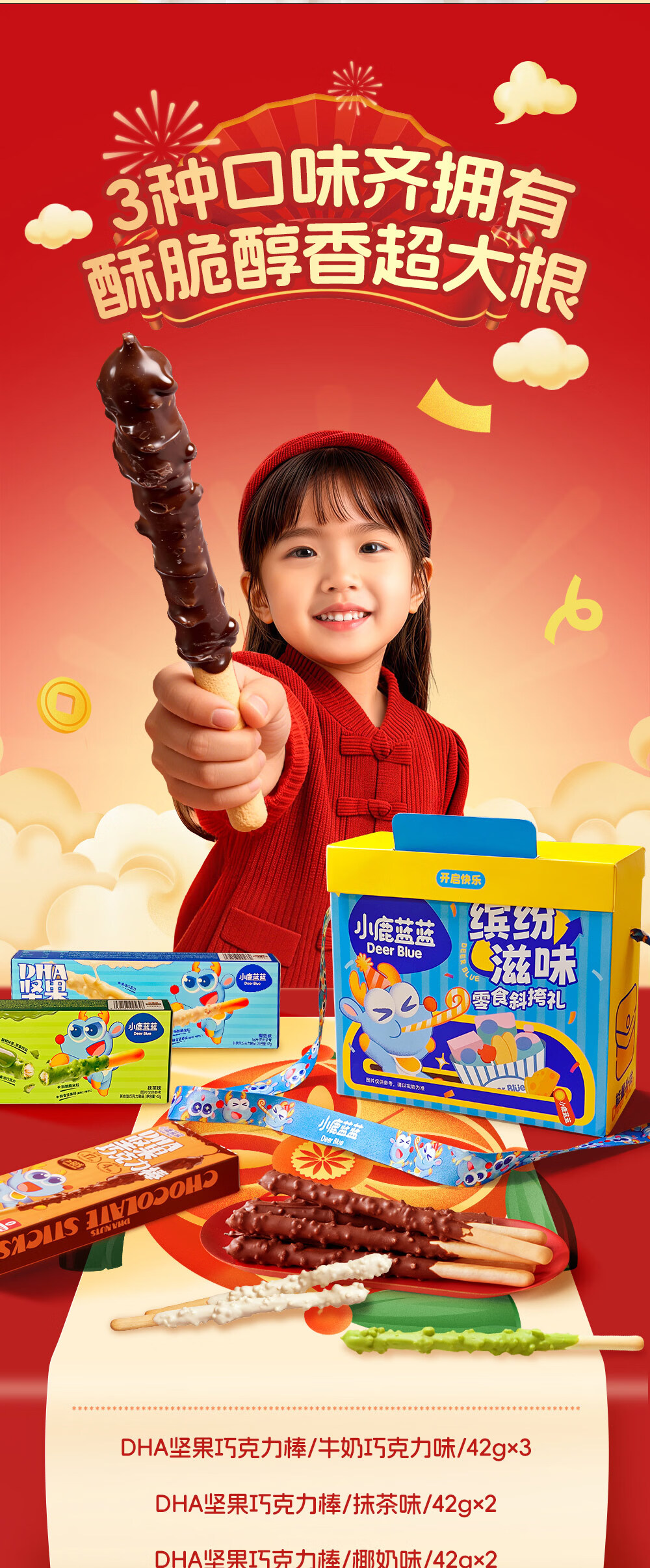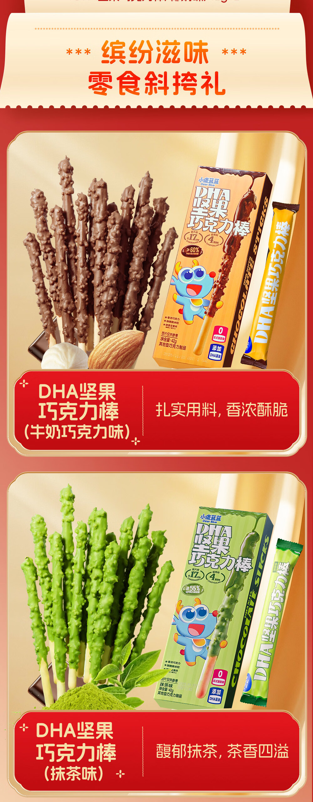 小鹿蓝蓝DHA坚果巧克力棒纯可可脂饼干磨牙棒宝宝零食礼盒混合口味42g*7盒