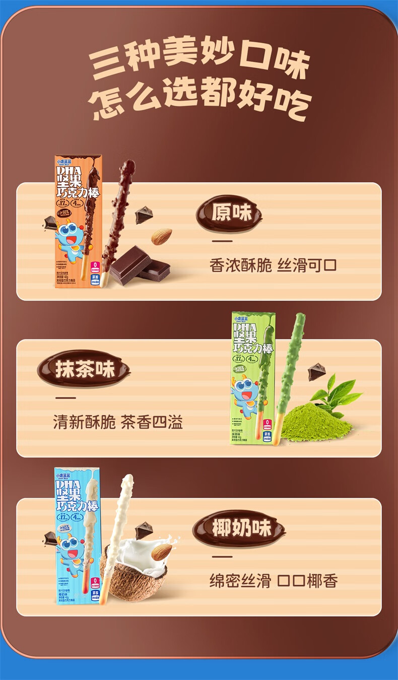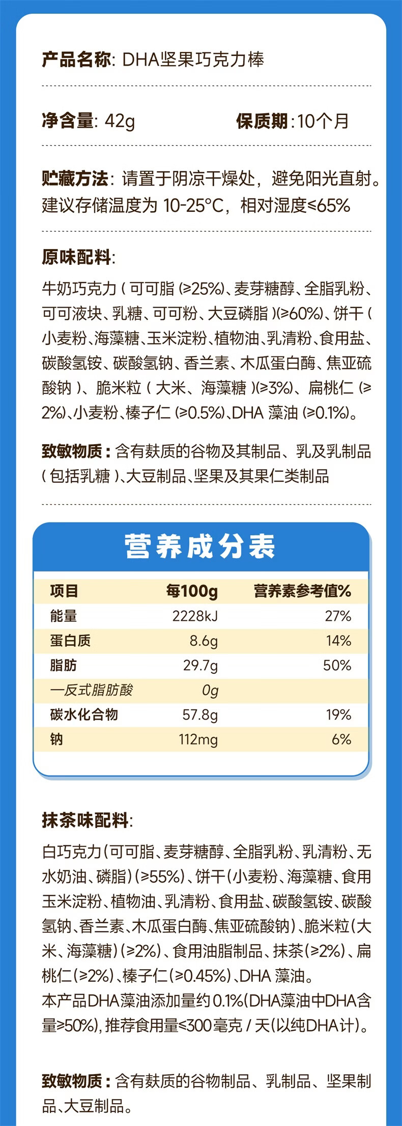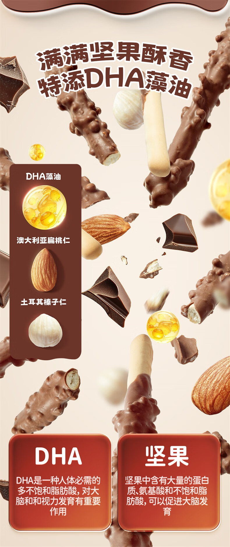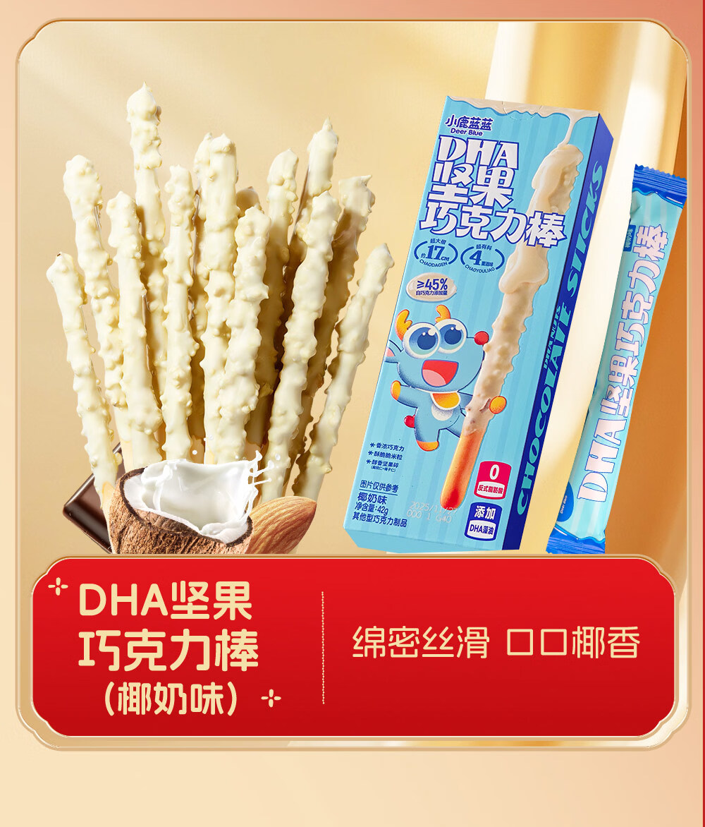 小鹿蓝蓝DHA坚果巧克力棒纯可可脂饼干磨牙棒宝宝零食礼盒混合口味42g*7盒