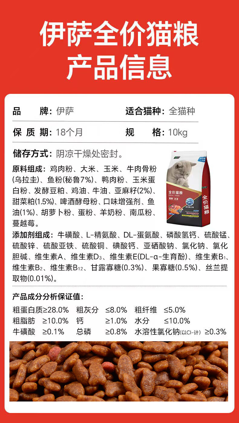 伊萨全价猫粮成猫幼猫海洋鱼味 鱼肉味10kg