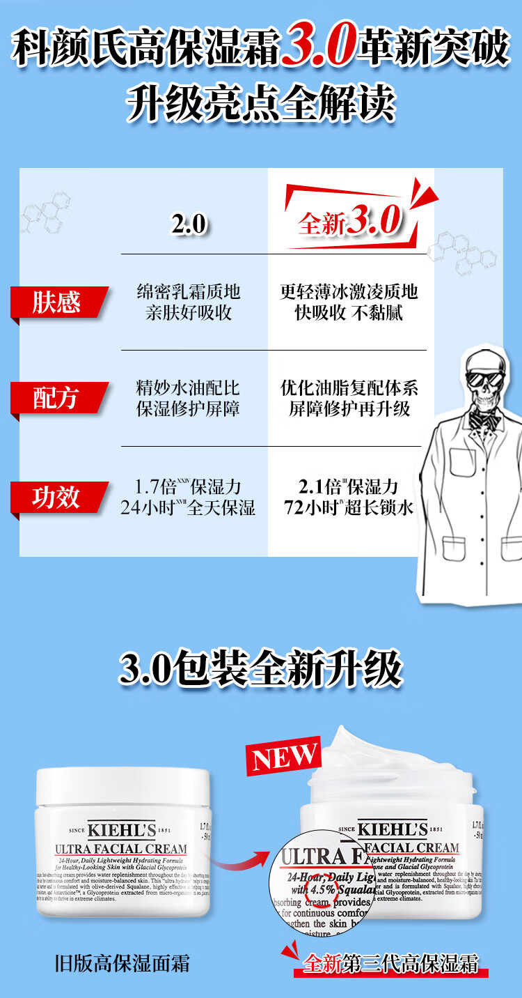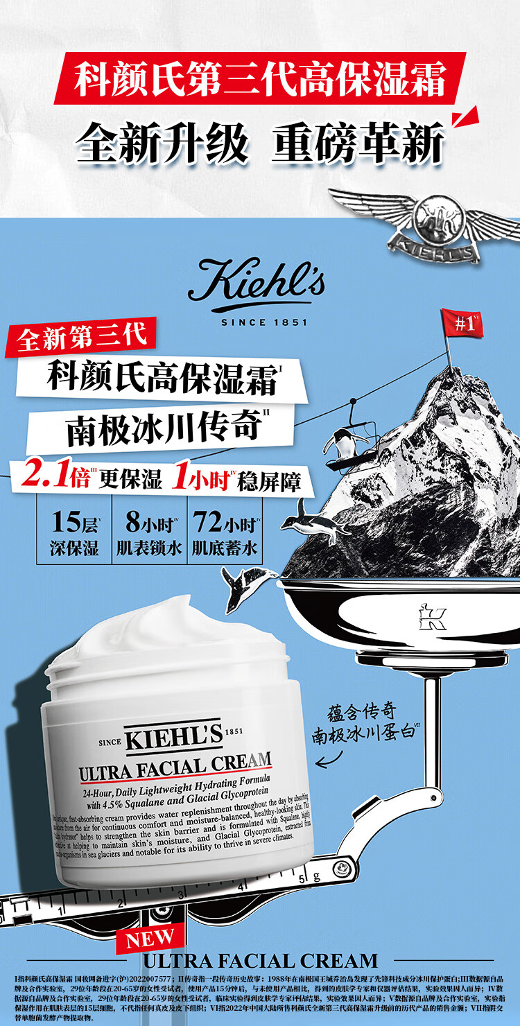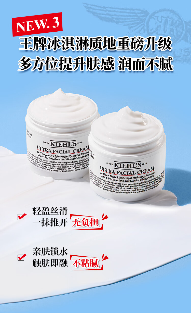 科颜氏(Kiehl's)全新第三代高保湿面霜50ml保湿乳液护肤品礼盒 生日礼物