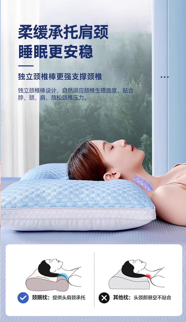 名创优品(MINISO)乳胶枕头护颈枕 橡胶枕学生枕成人枕护颈椎枕芯助眠枕 单只 【成人中枕】护颈助眠款-60x40cm 6-10cm