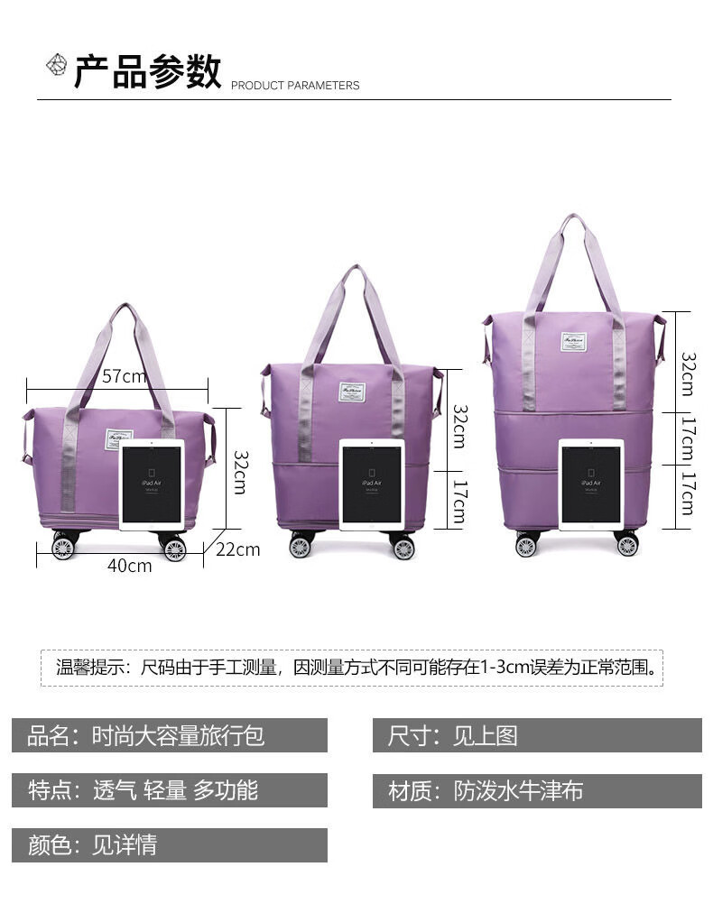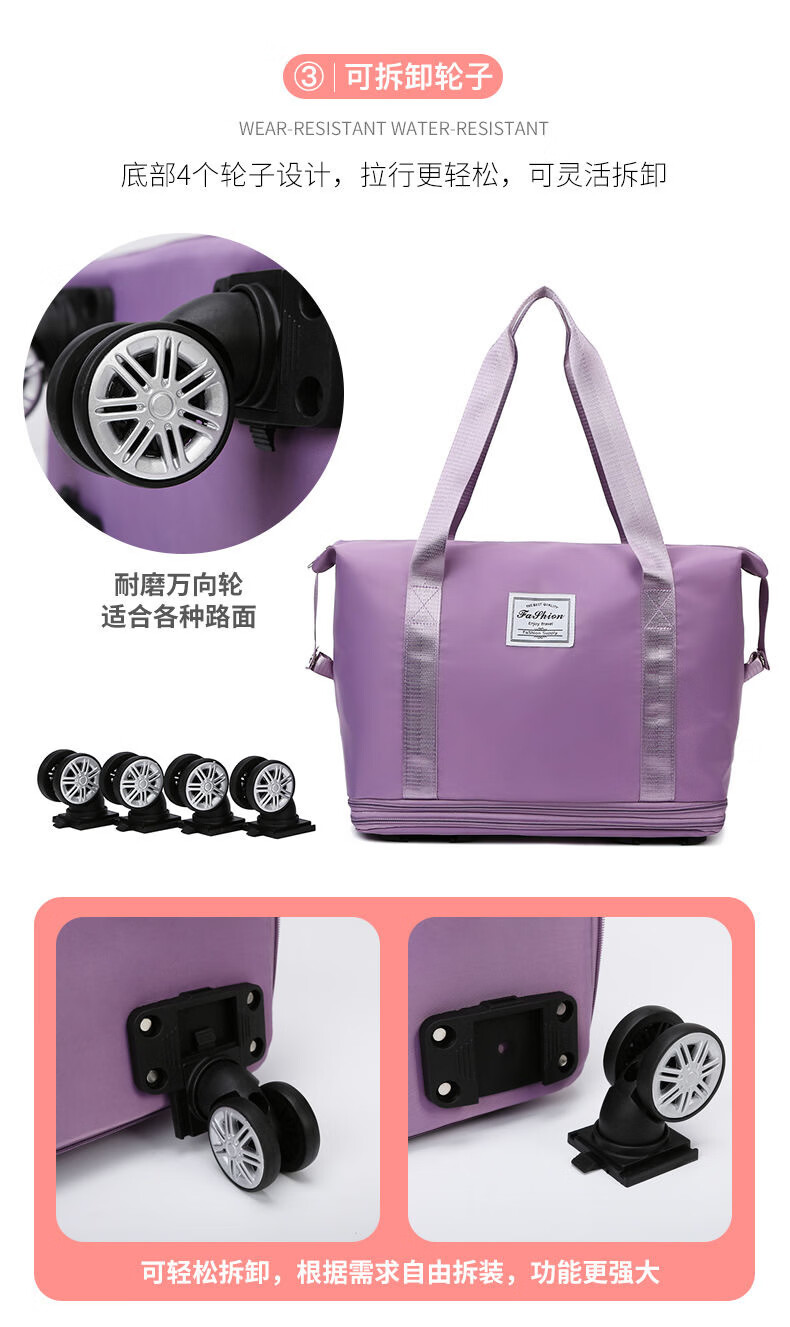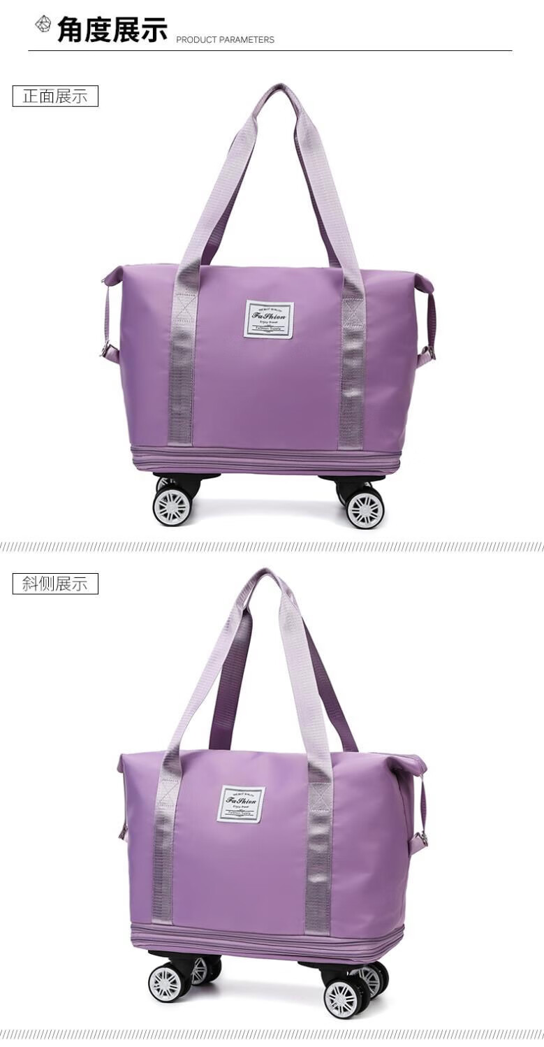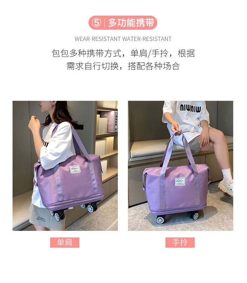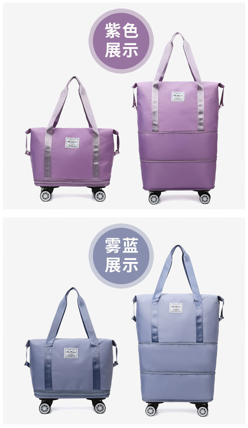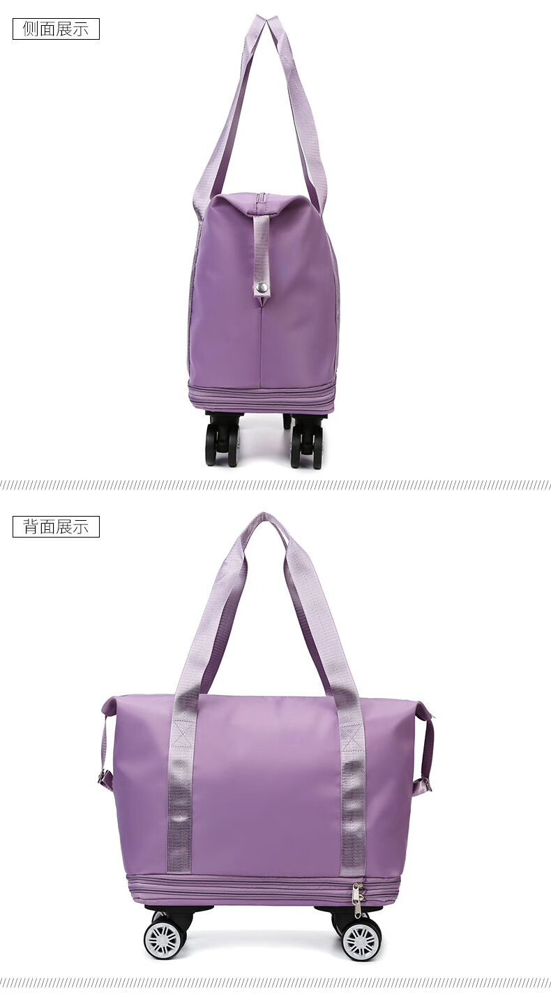 常为者旅行袋超大容量手提包便携滑轮防水行李袋衣物收纳短途出差健身包 香芋紫(三层可扩展+拆卸轮4个)