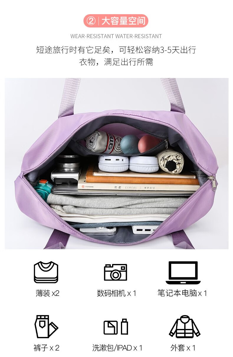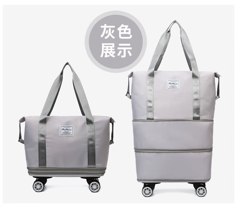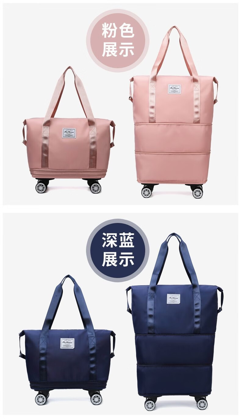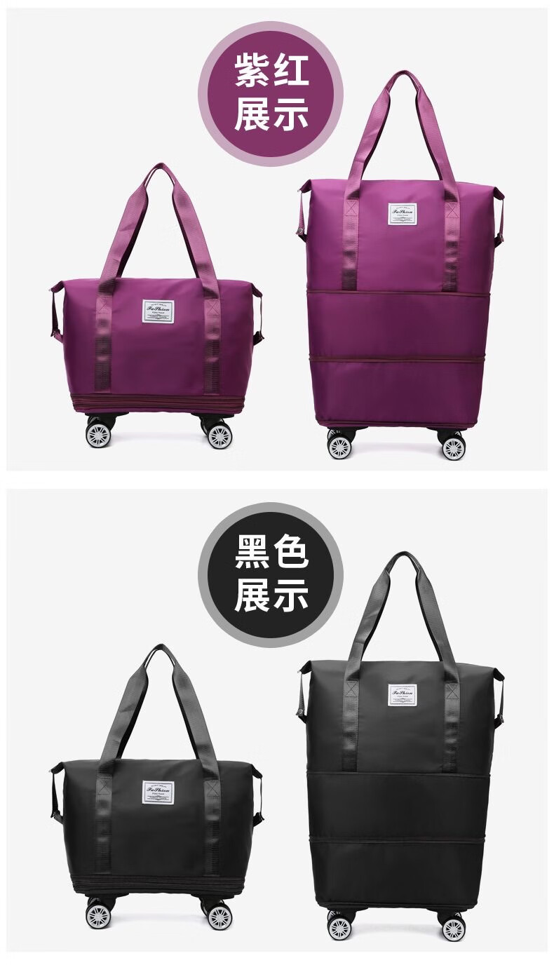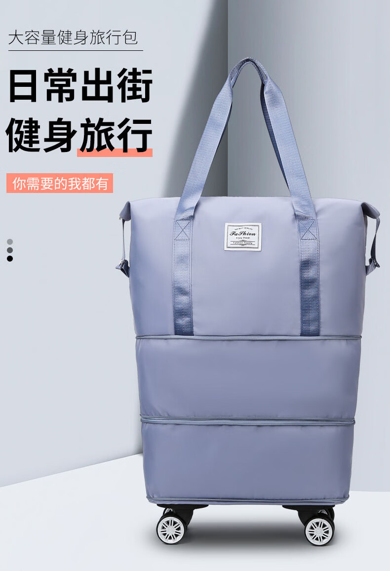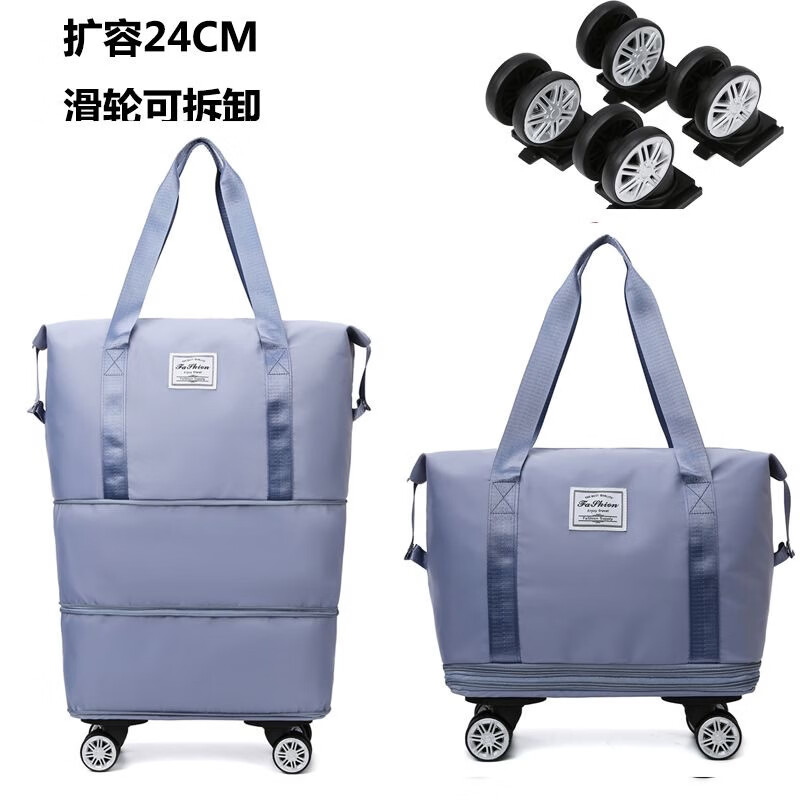 常为者旅行袋超大容量手提包便携滑轮防水行李袋衣物收纳短途出差健身包 香芋紫(三层可扩展+拆卸轮4个)