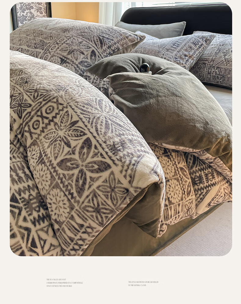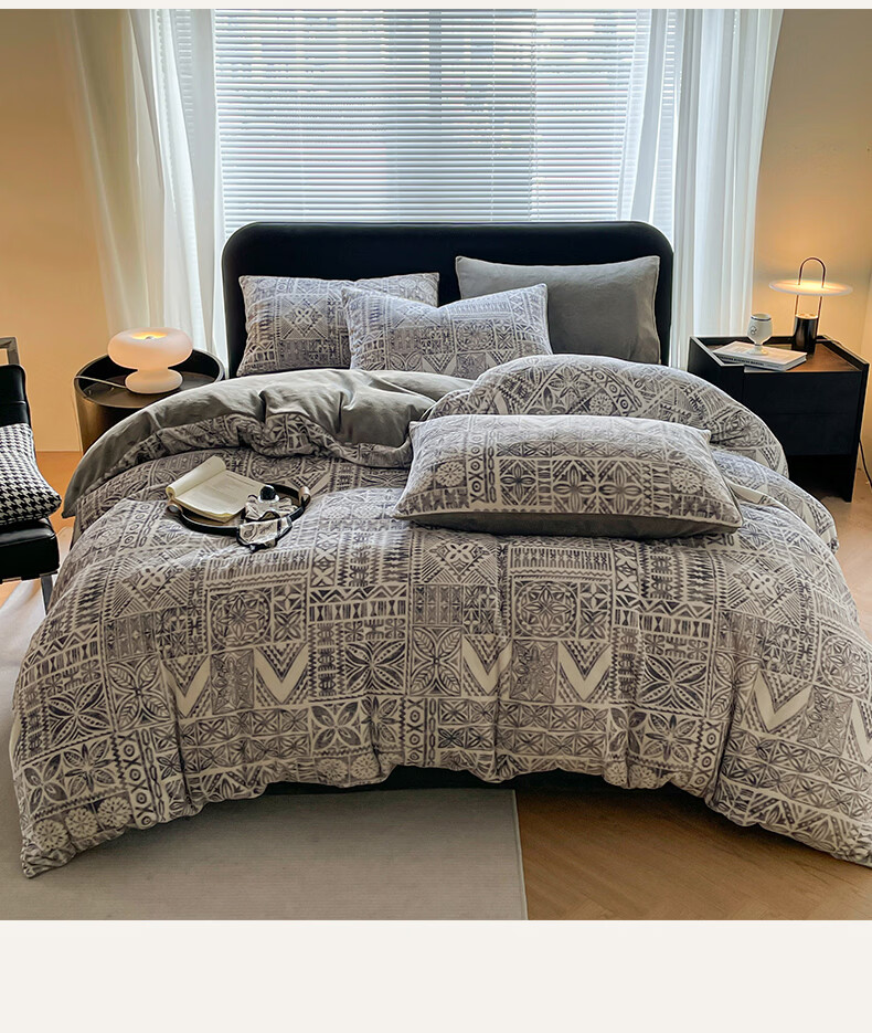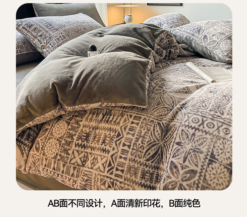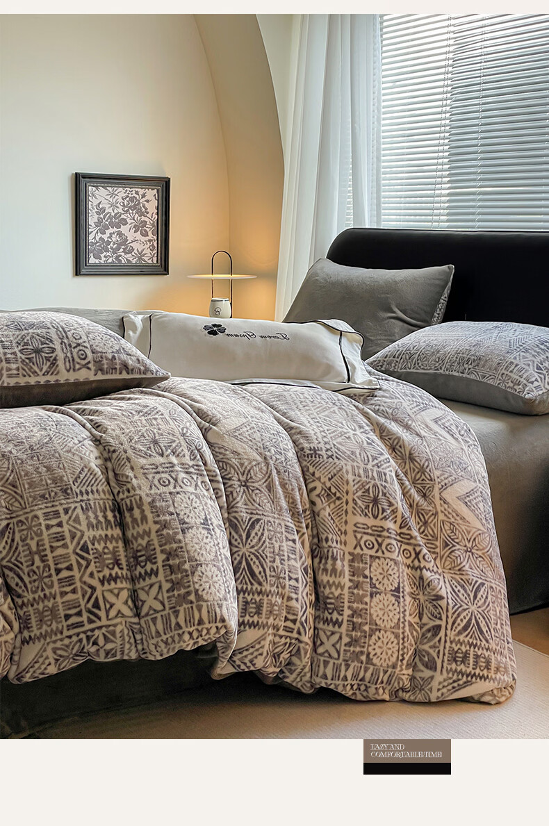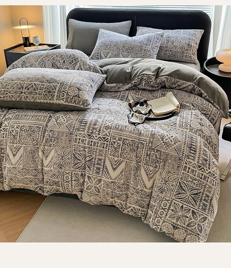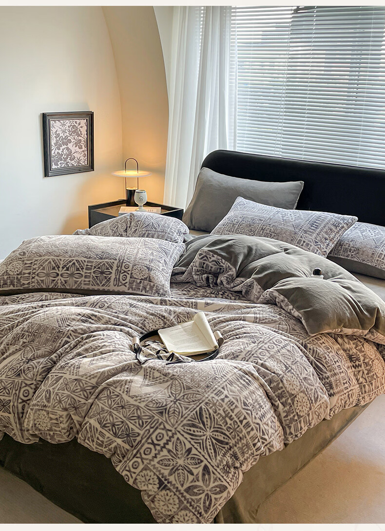 VJE小清新牛奶绒床上四件套冬季加绒抗静电床单被套珊瑚绒学生三件套 布洛格-中灰 三件套1.2m 床单款 (被套150*200cm)