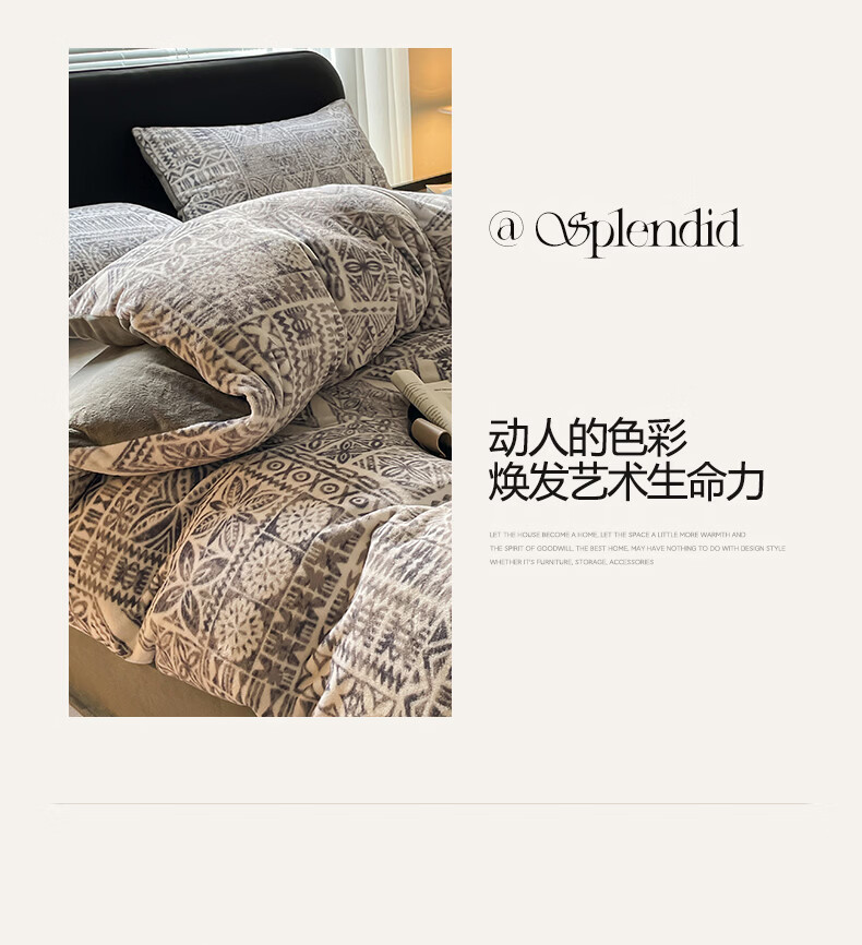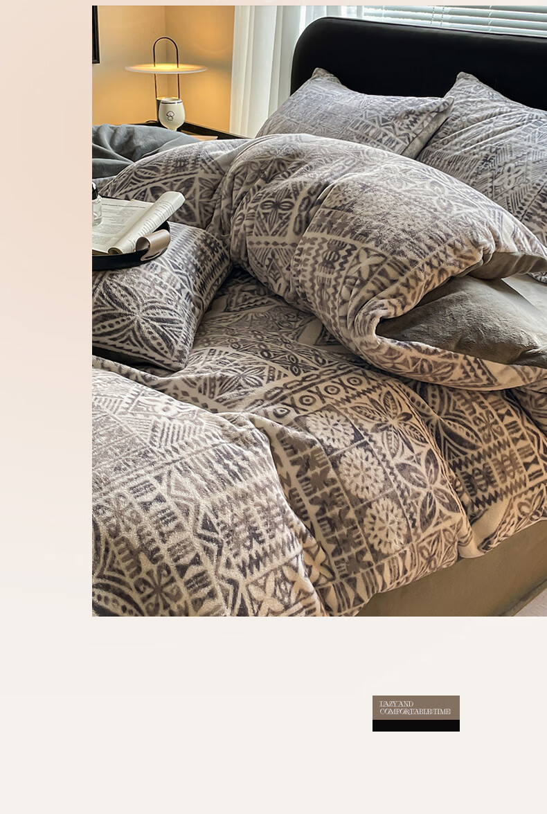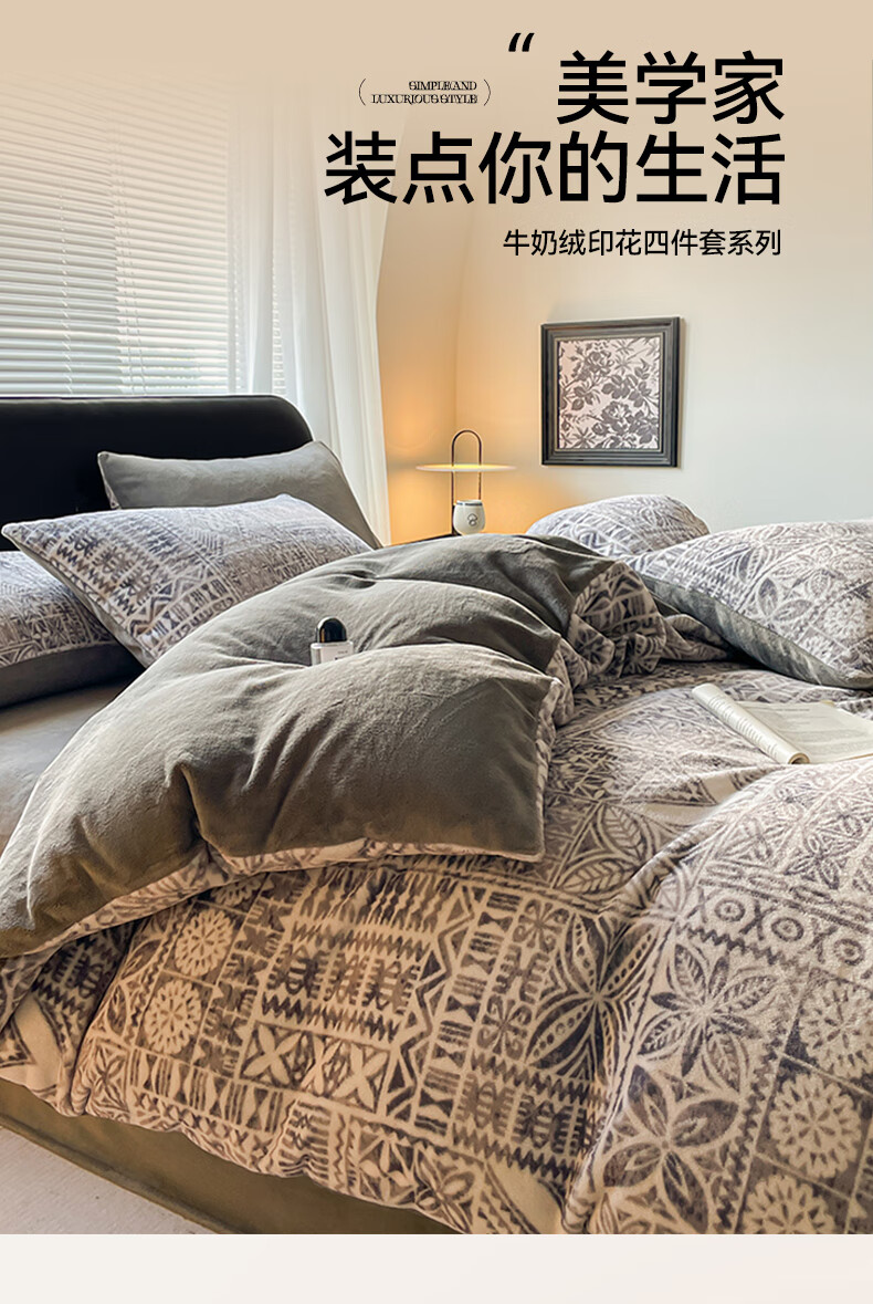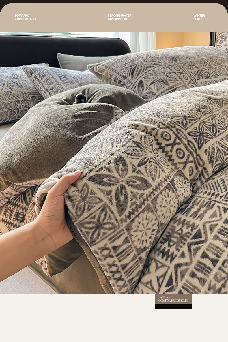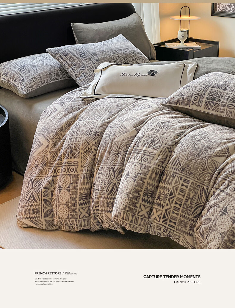 VJE小清新牛奶绒床上四件套冬季加绒抗静电床单被套珊瑚绒学生三件套 布洛格-中灰 三件套1.2m 床单款 (被套150*200cm)