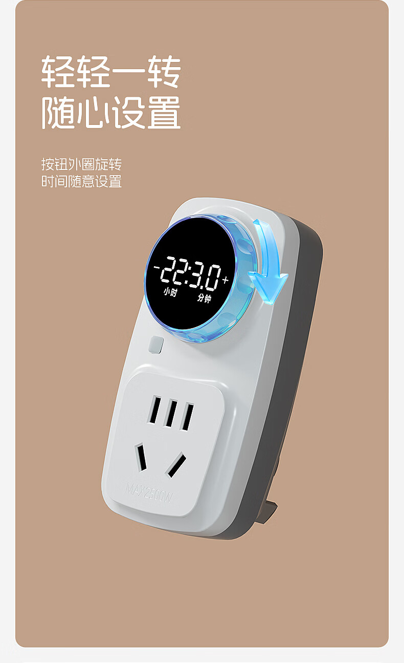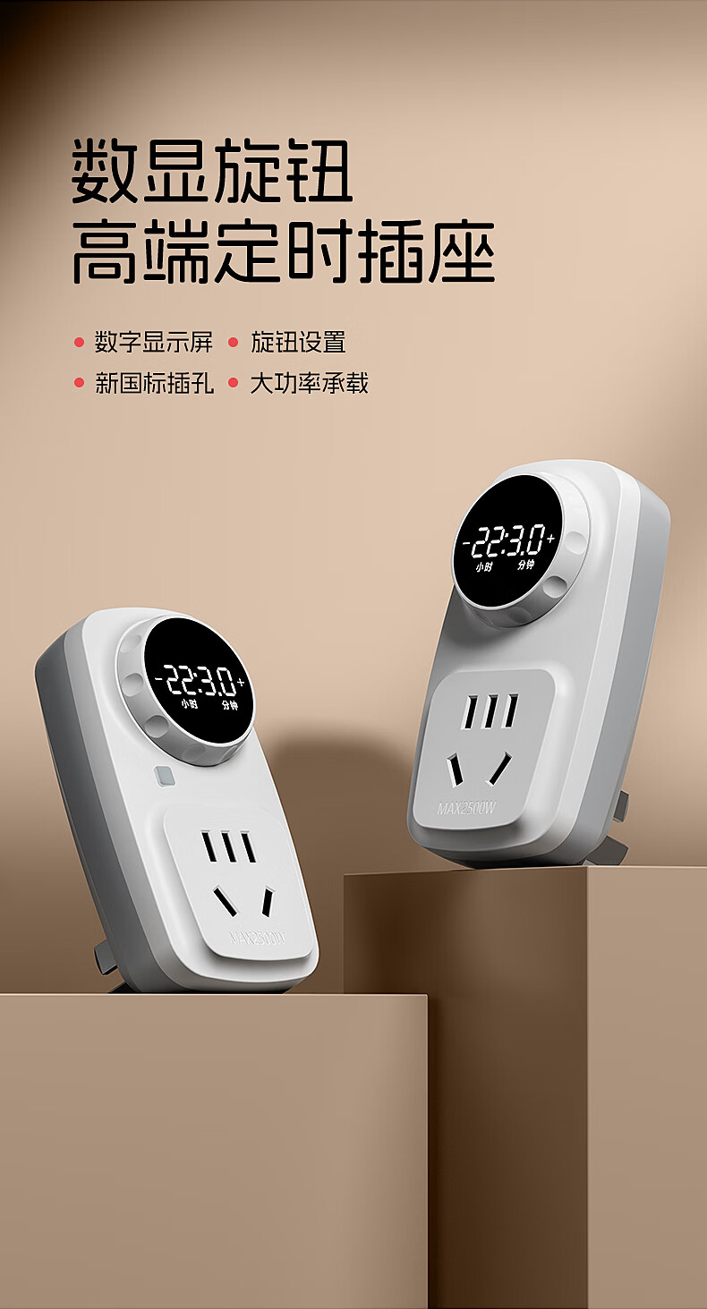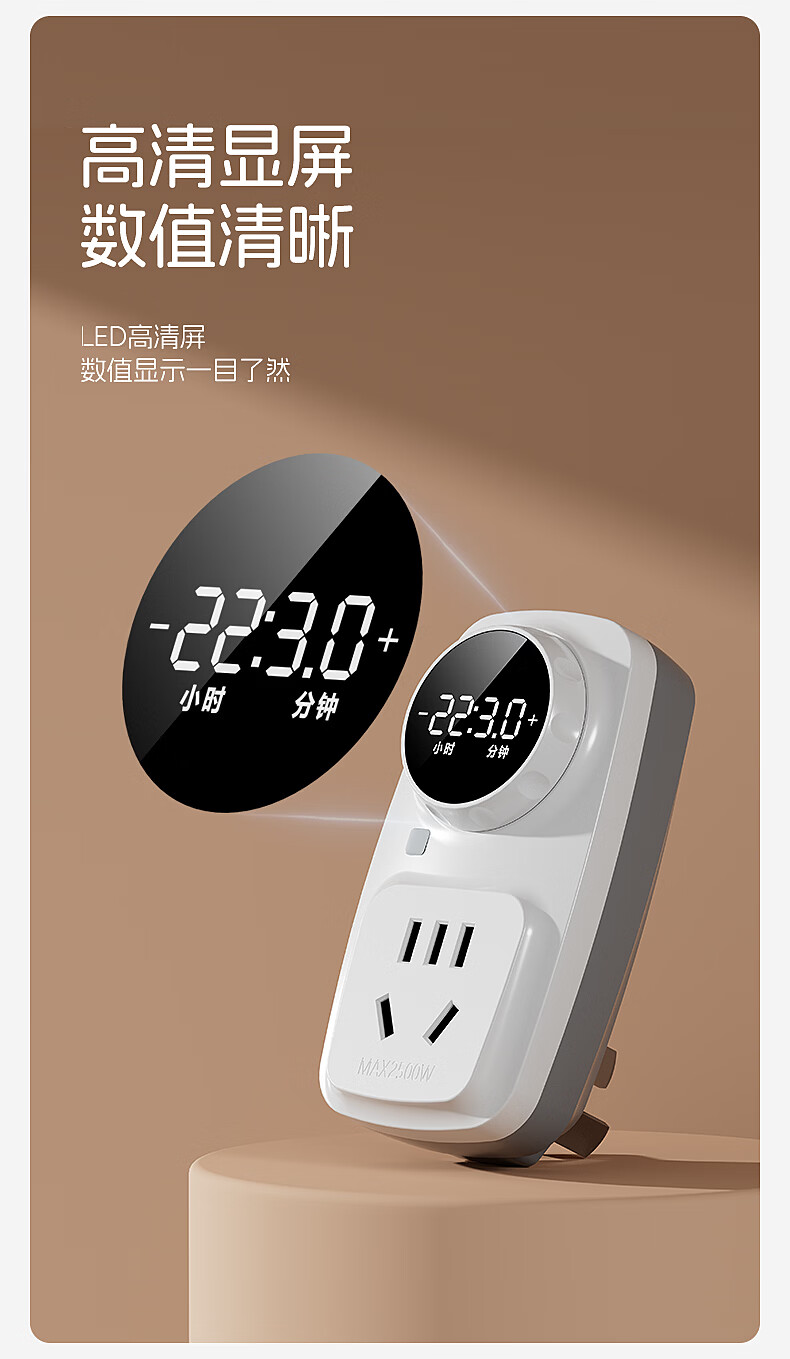 国际电工家用高清显示屏旋钮定时插座免布线精准定时循环自动通断电防过充 10A定时插座【不带按键】