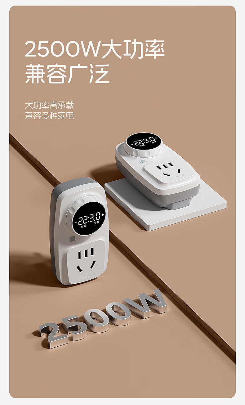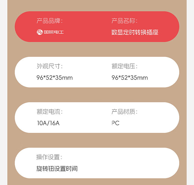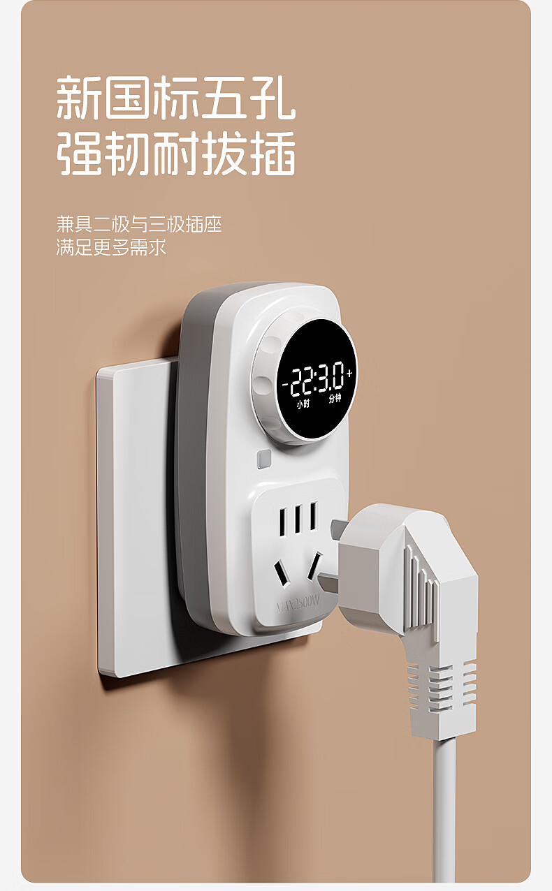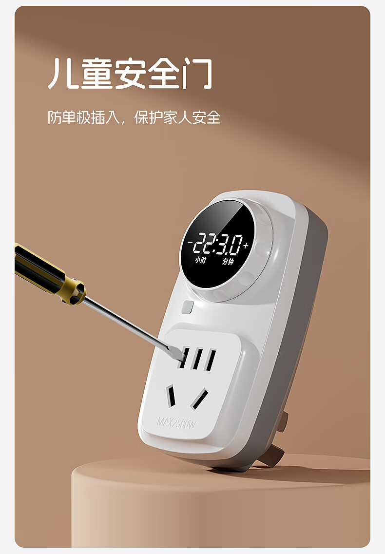 国际电工家用高清显示屏旋钮定时插座免布线精准定时循环自动通断电防过充 10A定时插座【不带按键】