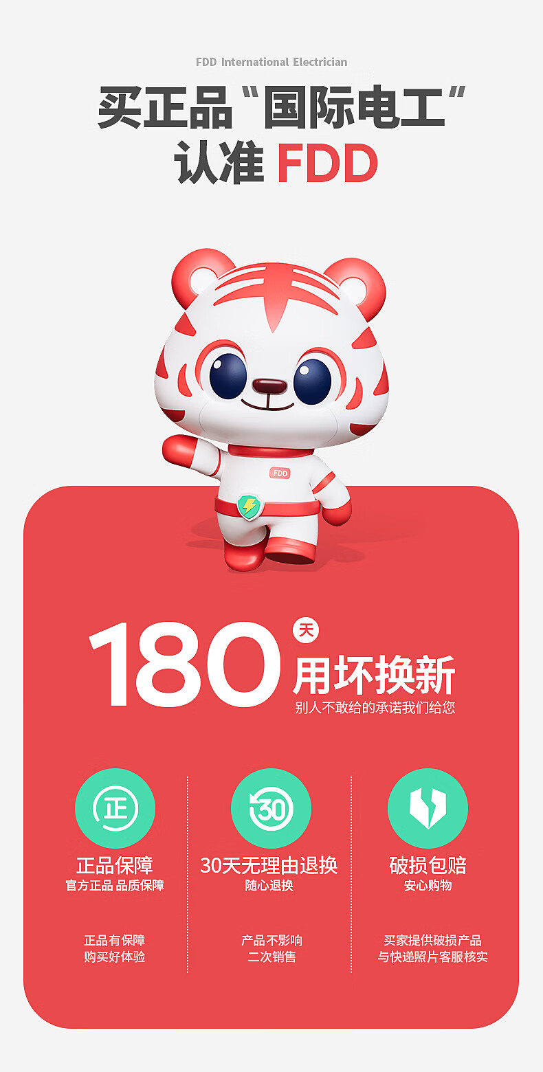 国际电工(FDD)86型暗装开关插座全屋套装白色无框面板墙壁家用一开五孔电源插座 错位五孔-10只装(优先发货)