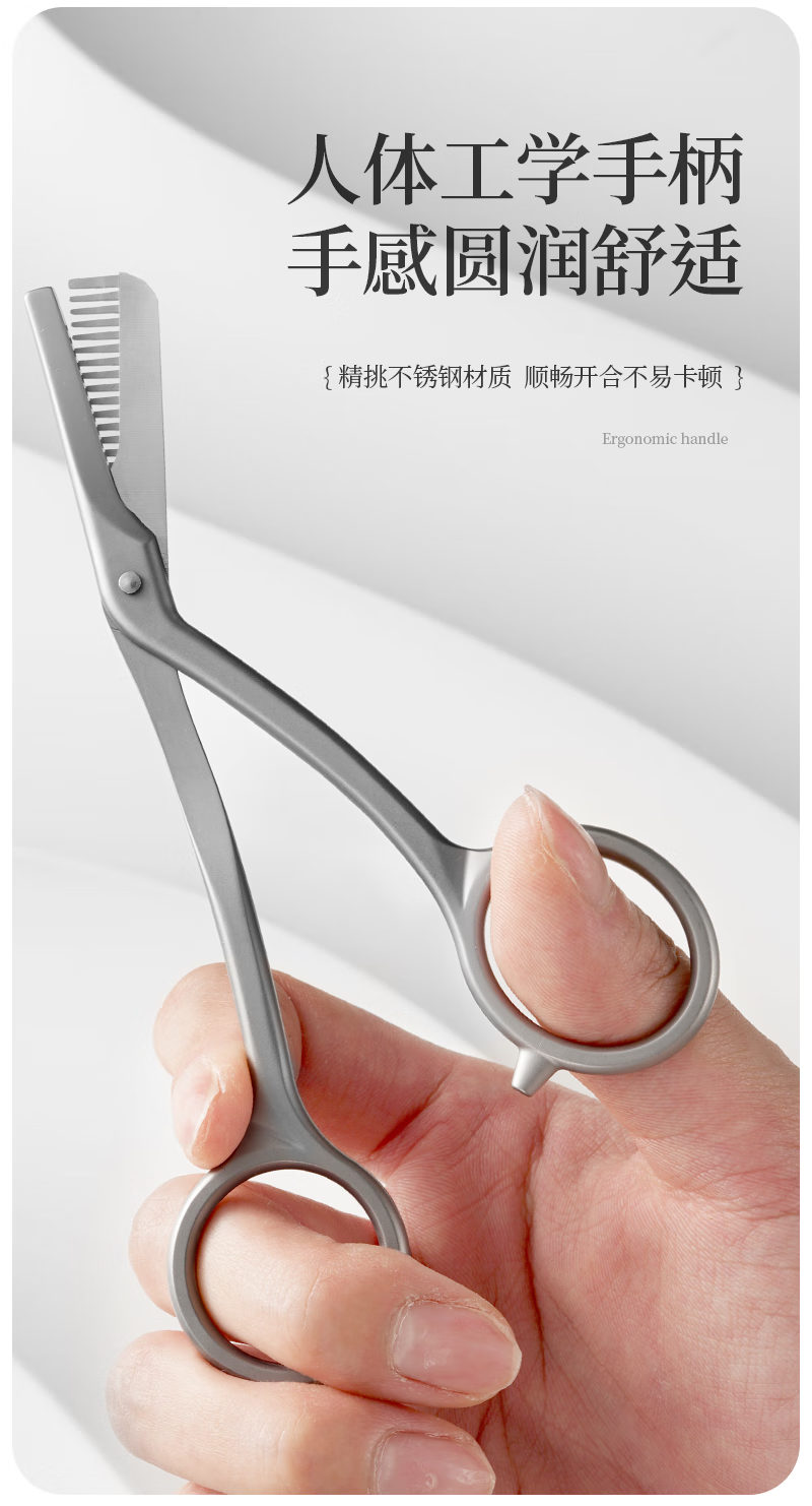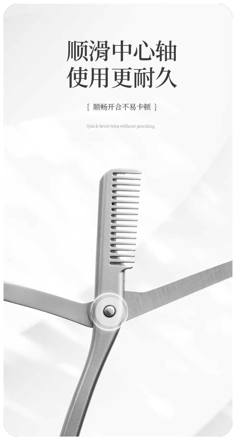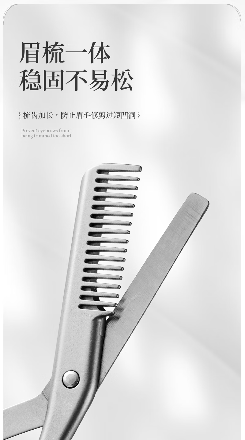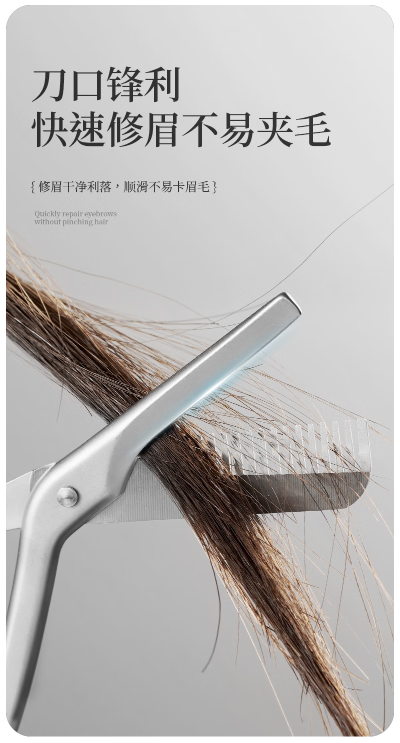 美道带梳修眉剪刀子鼻毛剪男女专用修眉刀全不锈钢剪子燕尾化妆剪 美道金属一体带梳眉剪 1把